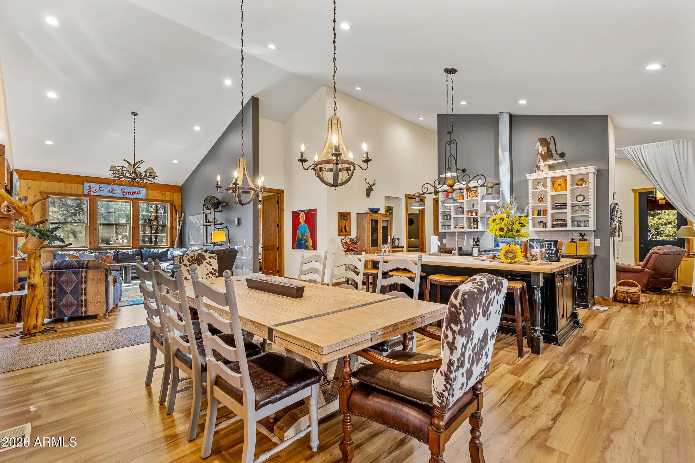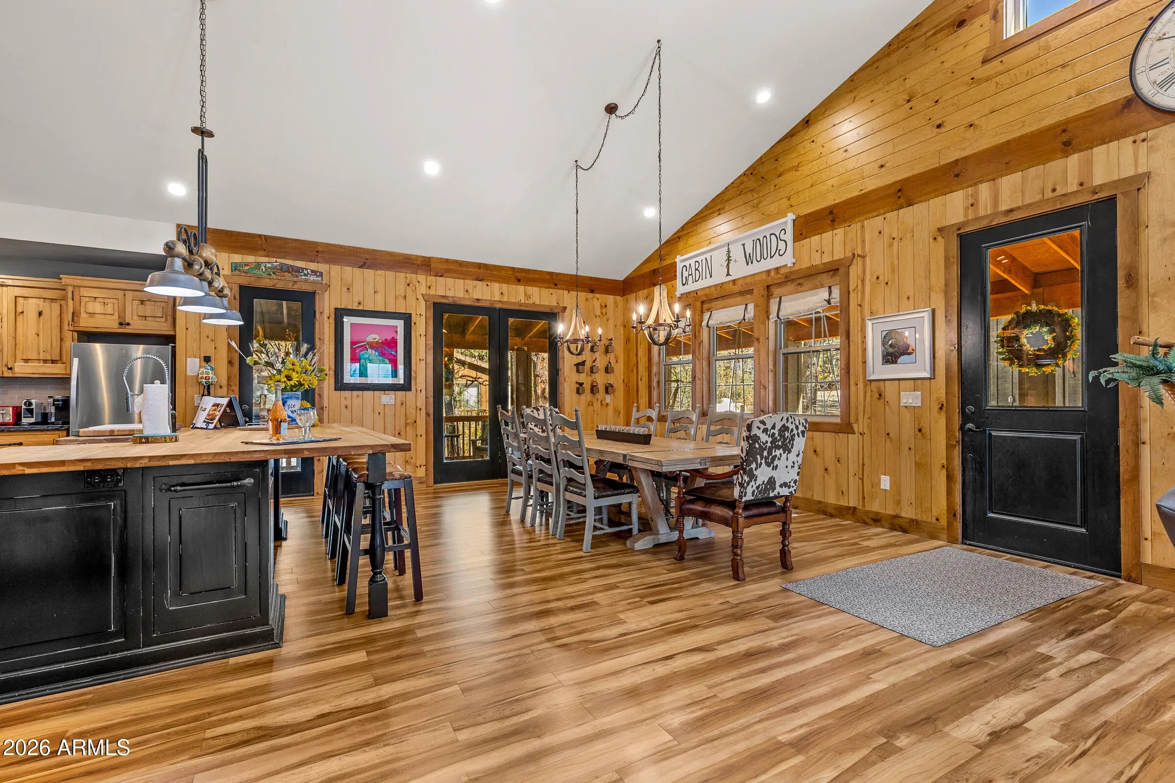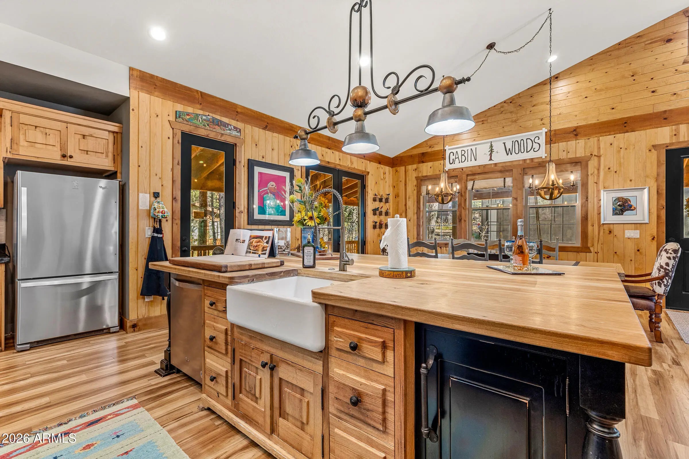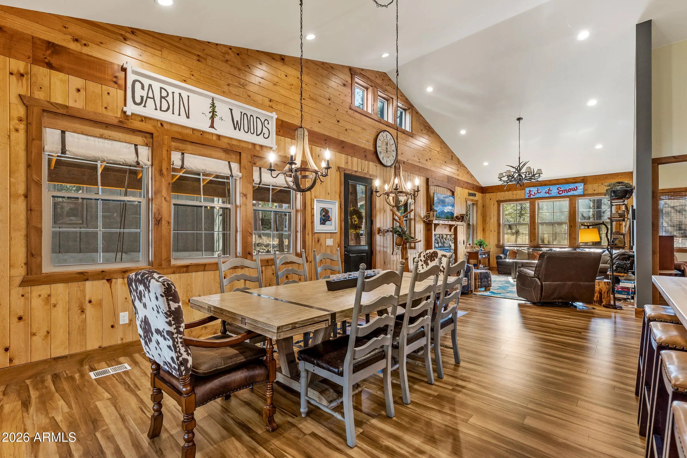 Nestled at the end of a quiet cul-de-sac on Animal Hill, this beautifully crafted custom cabin offers privacy, comfort, and exceptional attention to detail. The home features two bedrooms (plus a versatile bonus room/third bedroom), and quality construction evident throughout. Vaulted ceilings welcome you inside, creating a bright, open living space that feels both spacious and inviting. At the heart of the home is a gourmet kitchen designed for gathering, complete with professional-grade appliances, handcrafted vintage knotty chestnut cabinetry, and a generous island topped with hickory. The adjacent dining area comfortably seats twelve, making it ideal for entertaining. Warm, floor-to-ceiling wood accents add timeless cabin character, while picture windows, a stone-faced gas fireplace and custom artwork enhance the cozy, welcoming atmosphere. Both bedrooms offer en-suite baths, and the additional flex/bonus room includes a Murphy bed to easily accommodate extra guests. Outdoor living truly shines with a covered wraparound deck and expansive covered patio overlooking a quiet, secluded backyardperfect for relaxing or hosting friends. The (mostly) fenced yard, detached garage, and storage beneath the home provide plenty of room for vehicles, gear, and outdoor toys. Gently used and lovingly maintained, this cabin is offered fully furnished. Absolutely everything you see is included!