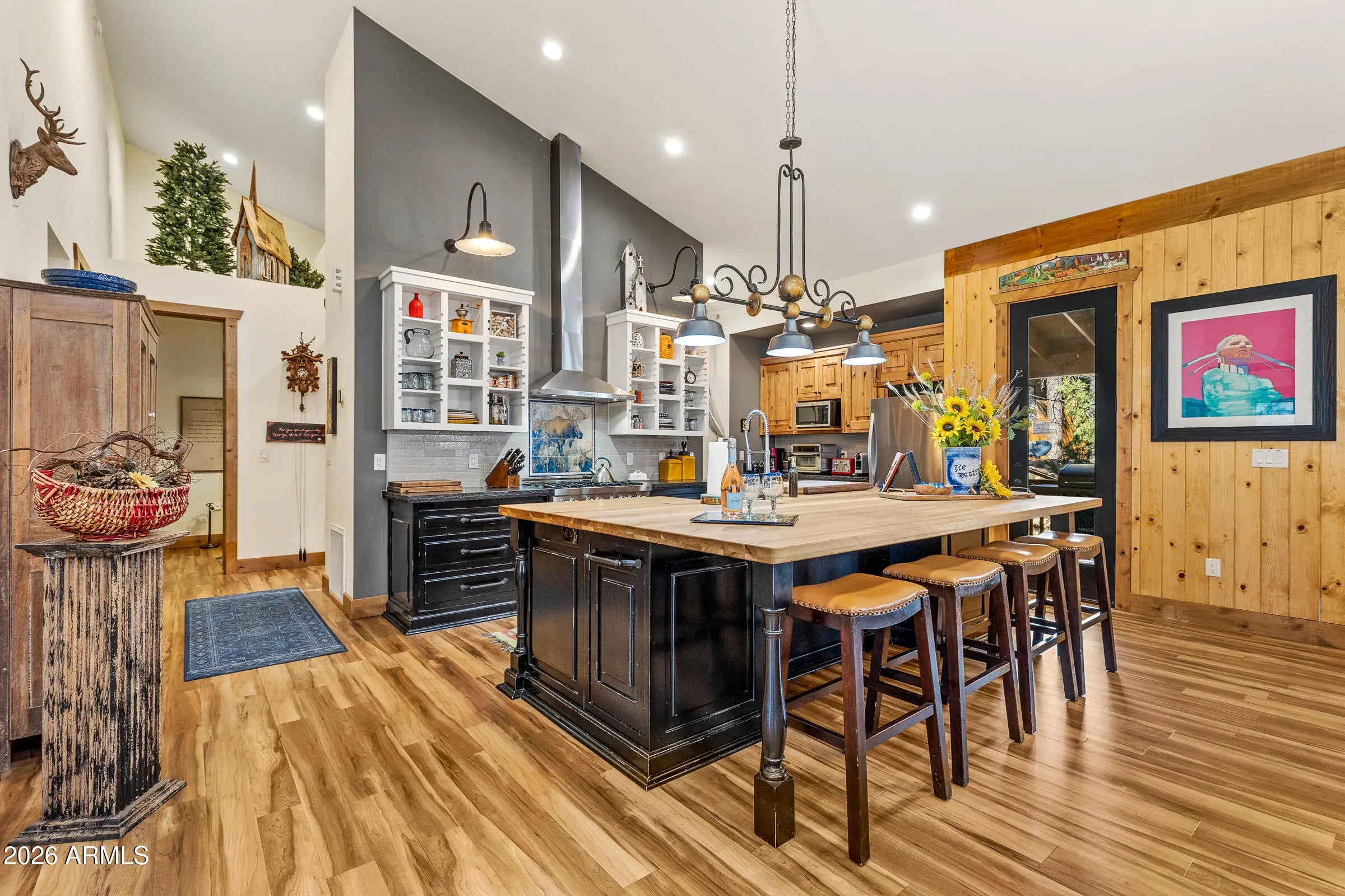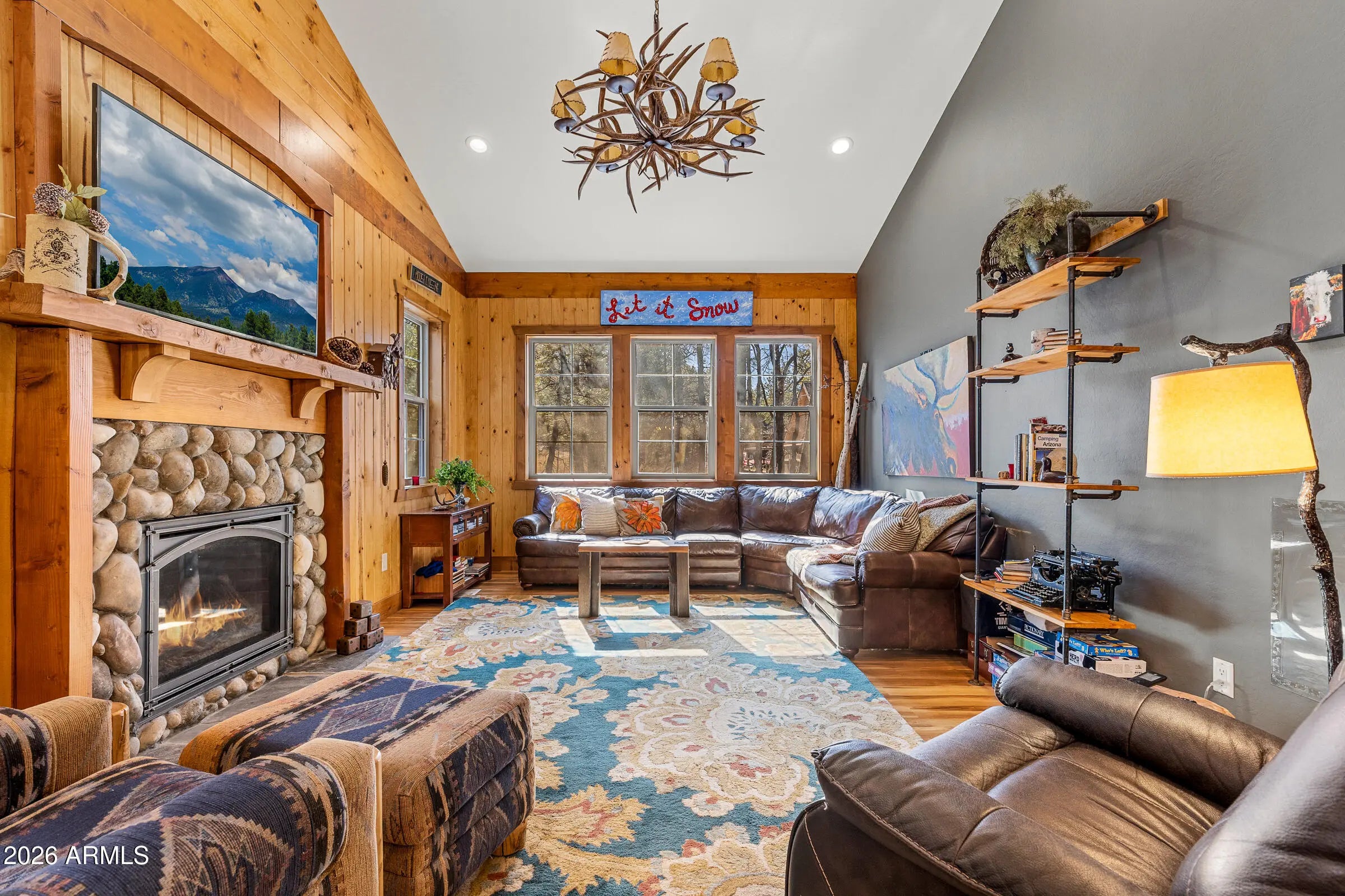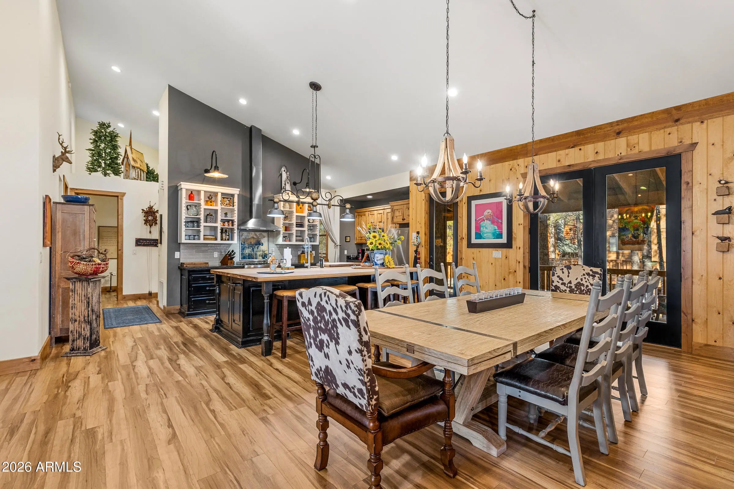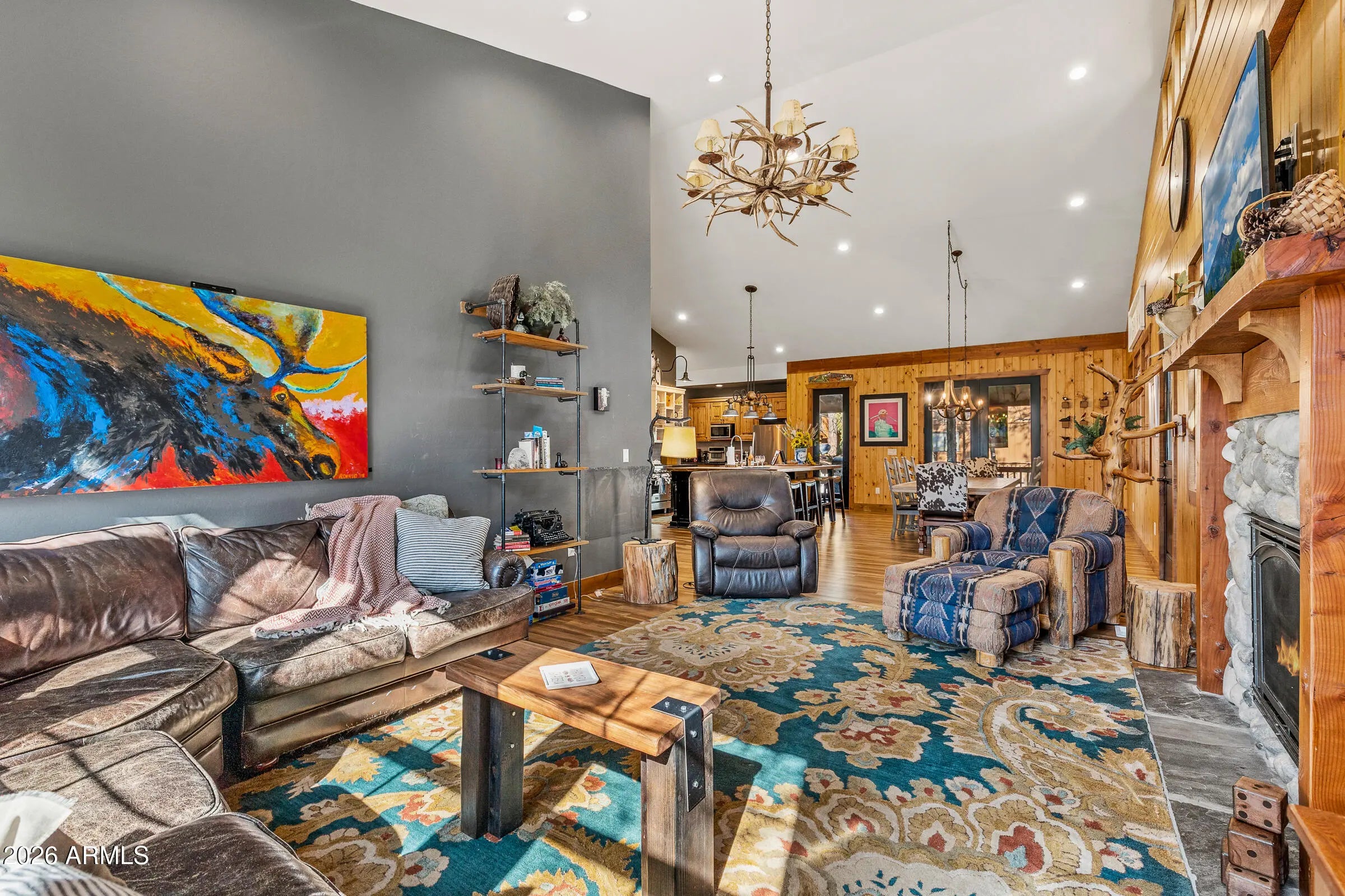 Nestled at the end of a quiet cul-de-sac on Animal Hill, this beautifully crafted custom cabin offers privacy, comfort, and exceptional attention to detail. The home features two bedrooms (plus a versatile bonus room/third bedroom), and quality construction evident throughout. Vaulted ceilings welcome you inside, creating a bright, open living space that feels both spacious and inviting. At the heart of the home is a gourmet kitchen designed for gathering, complete with professional-grade appliances, handcrafted vintage knotty chestnut cabinetry, and a generous island topped with hickory. The adjacent dining area comfortably seats twelve, making it ideal for entertaining. Warm, floor-to-ceiling wood accents add timeless cabin character, while picture windows, a stone-faced gas fireplace and custom artwork enhance the cozy, welcoming atmosphere. Both bedrooms offer en-suite baths, and the additional flex/bonus room includes a Murphy bed to easily accommodate extra guests. Outdoor living truly shines with a covered wraparound deck and expansive covered patio overlooking a quiet, secluded backyardperfect for relaxing or hosting friends. The (mostly) fenced yard, detached garage, and storage beneath the home provide plenty of room for vehicles, gear, and outdoor toys. Gently used and lovingly maintained, this cabin is offered fully furnished. Absolutely everything you see is included!