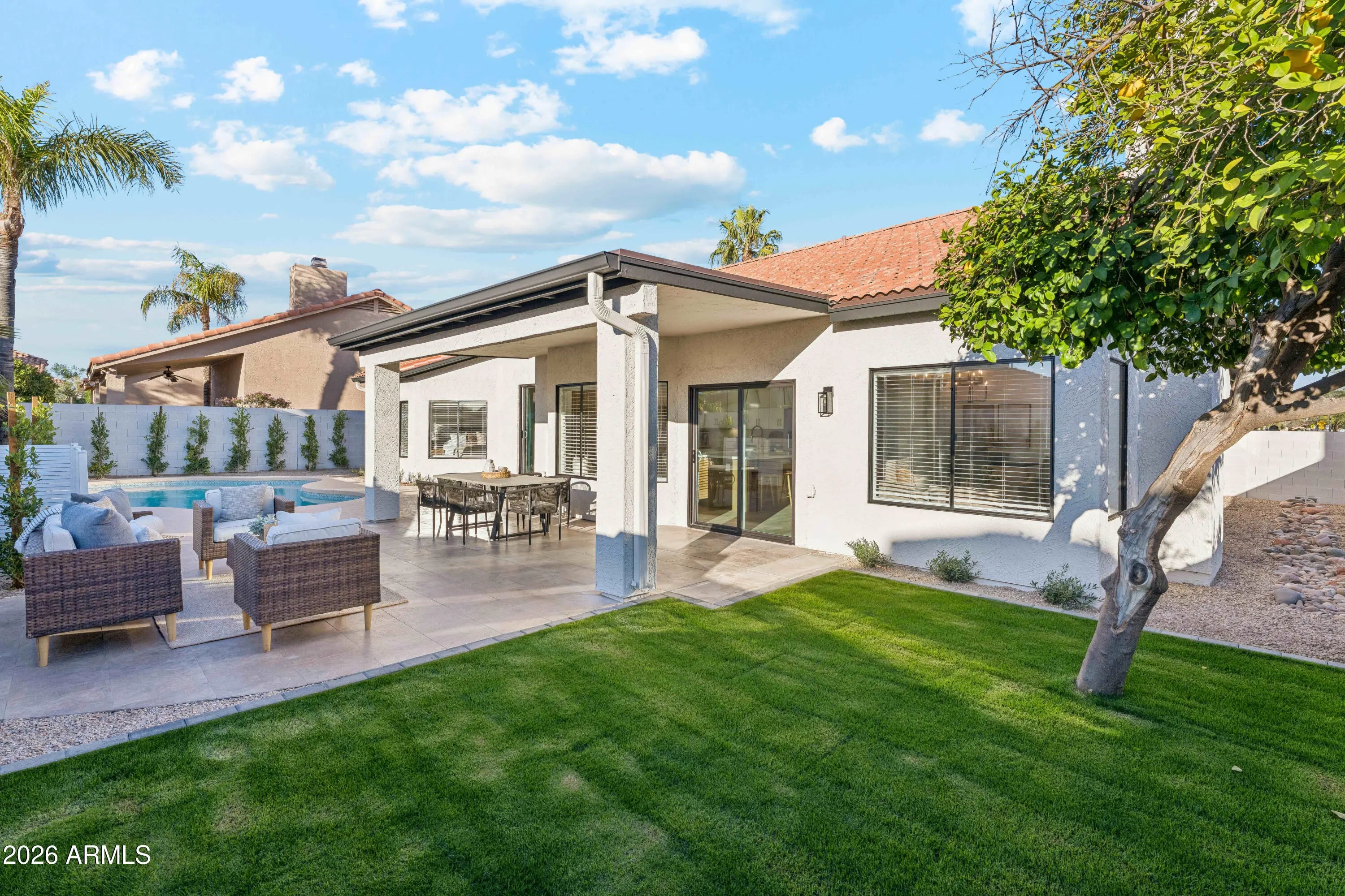 Stunning Fully Remodeled Home in the Heart of Scottsdale. Welcome to this beautifully renovated home offering a sophisticated living space. Located in the highly sought-after Scottsdale area, this 4-bedroom, 2.5-bathroom home is the perfect blend of modern luxury and timeless design. The kitchen is a true masterpiece, featuring a large 36'' range, custom hood, brand-new appliances, and sleek cabinetry. A spacious 12'' slider leads to the beautifully redesigned backyard, making it easy to entertain and enjoy Arizona's outdoor lifestyle. Every detail has been carefully considered, with fully remodeled flooring, lighting, doors, and bathrooms throughout the home. The roof, windows, and water heater have all been replaced to provide peace of mind and and modern efficiency. The front and backyard have undergone an impressive transformation, with stunning landscaping and a completely resurfaced pool that invites you to relax and unwind. This home is a rare find in Scottsdale and is sure to sell fast. Don't miss out on the opportunity to make it yours!