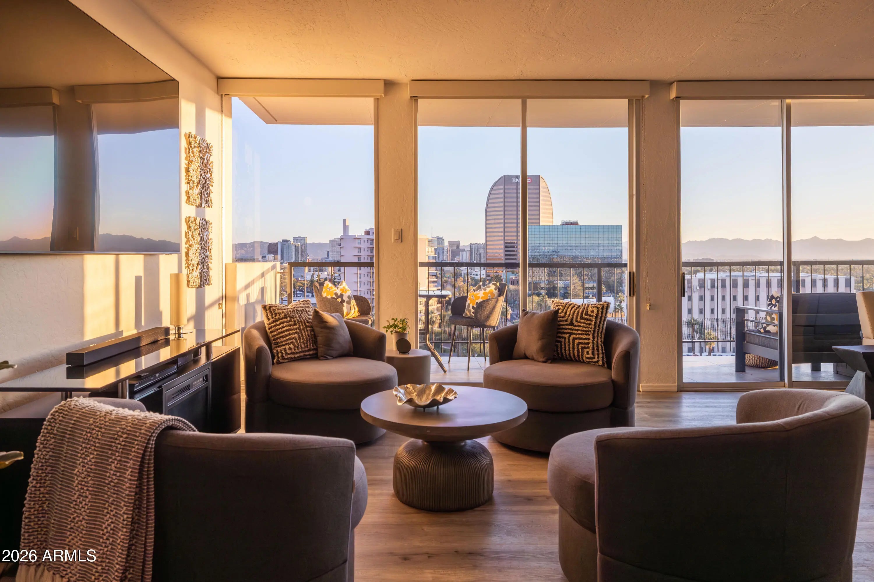 WELCOME HOME to the Regency on Central! This historic Mid-Century building has become iconic to the Phoenix skyline! Inside #1103 you'll discover a ONE OF A KIND unit that has been beautifully reimagined with Quartz counters, custom cabinets, stainless steel appliances & premium designer details that have been installed throughout. This highly desired floor plan offers a wonderful open concept layout with floor to ceiling windows & doors highlighting the breathtaking views of the Downtown Skyline and mountains. A large private balcony overlooks the Heard Museum below & blends indoor/outdoor living perfectly. So many building upgrades with excellent amenities - HOA includes utilities, underground parking, 24/7 concierge & so much more! Walking distance to everything in Midtown!