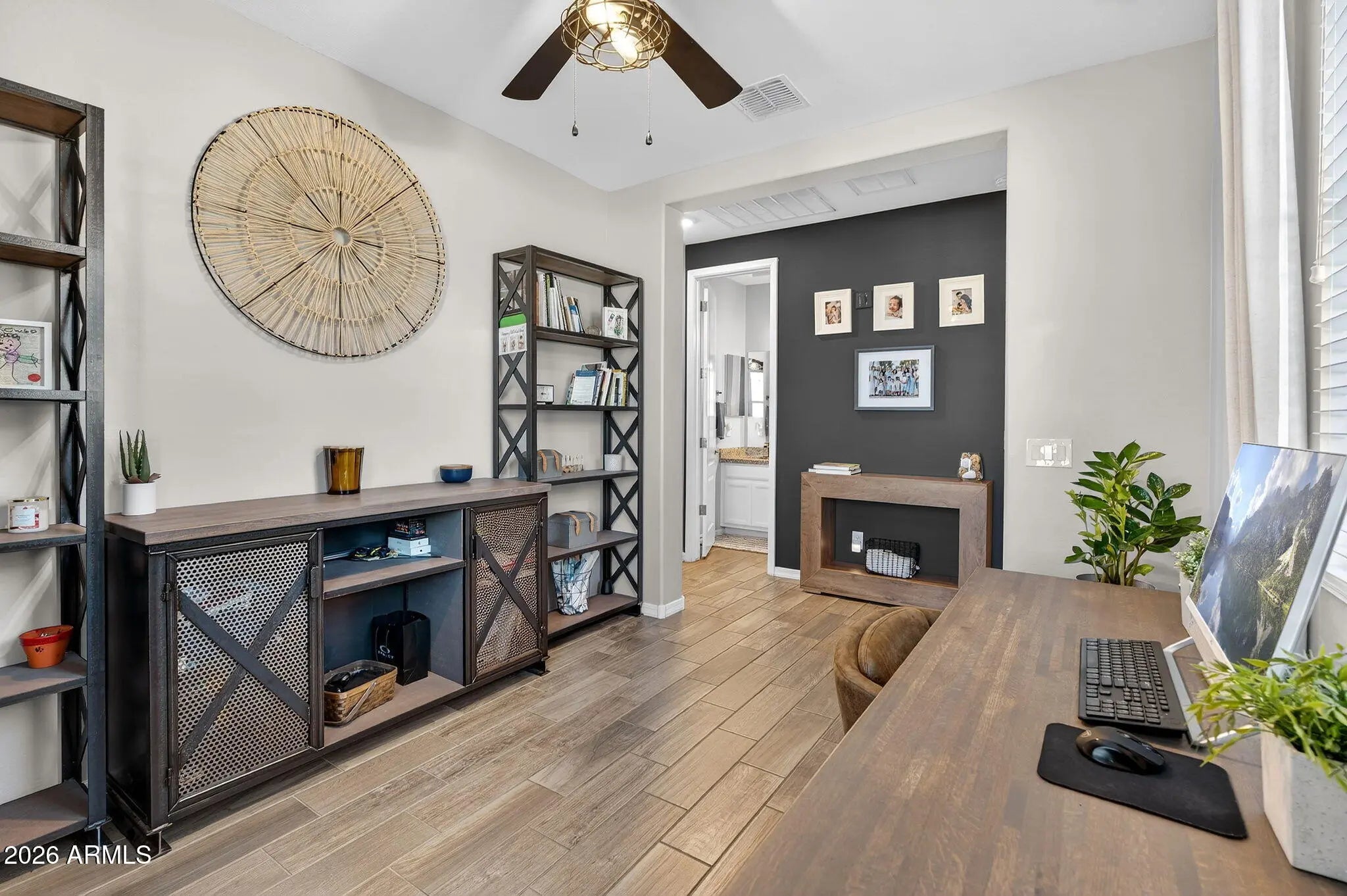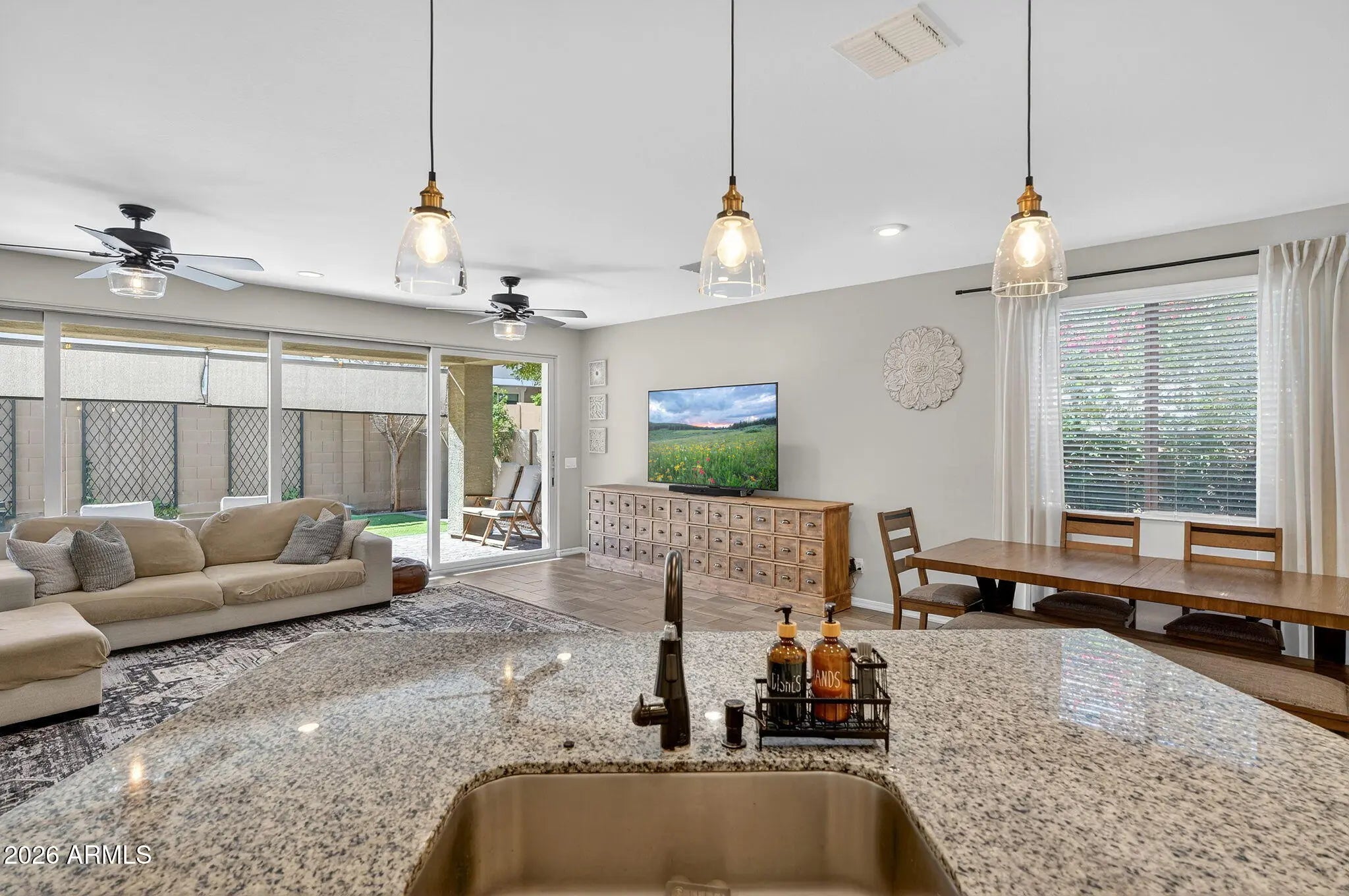 This meticulously maintained South Mountain stunner sits on a premium lot and offers a seamless blend of style, comfort, and indoor-outdoor connection that anyone yearns for in the beautiful Arizona desert with 20ft sliding glass doors. Sunlit living spaces and three bedrooms plus an office flow effortlessly, creating an inviting setting for entertaining or unwinding at home. The kitchen anchors the layout with a spacious island and ample storage, accompanied by a beautiful dining area. Outdoors, the low-maintenance yard and shaded patio extend the living space and provide year-round usability. Set in a quiet yet central neighborhood with convenient access to shopping, dining, Legacy Golf Resort, Raven Golf Club and much more, this home is the perfect oasis in the middle of the city.