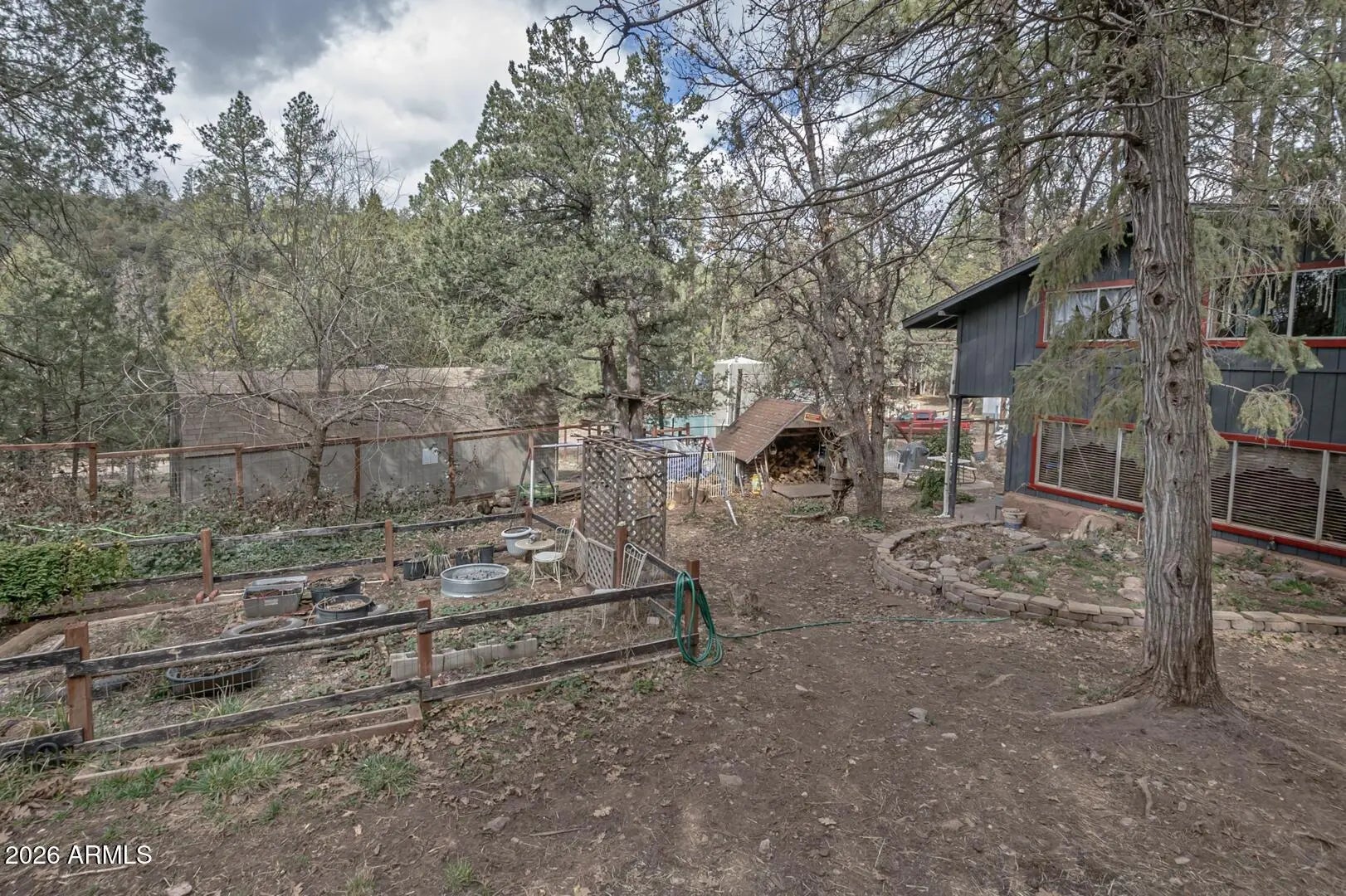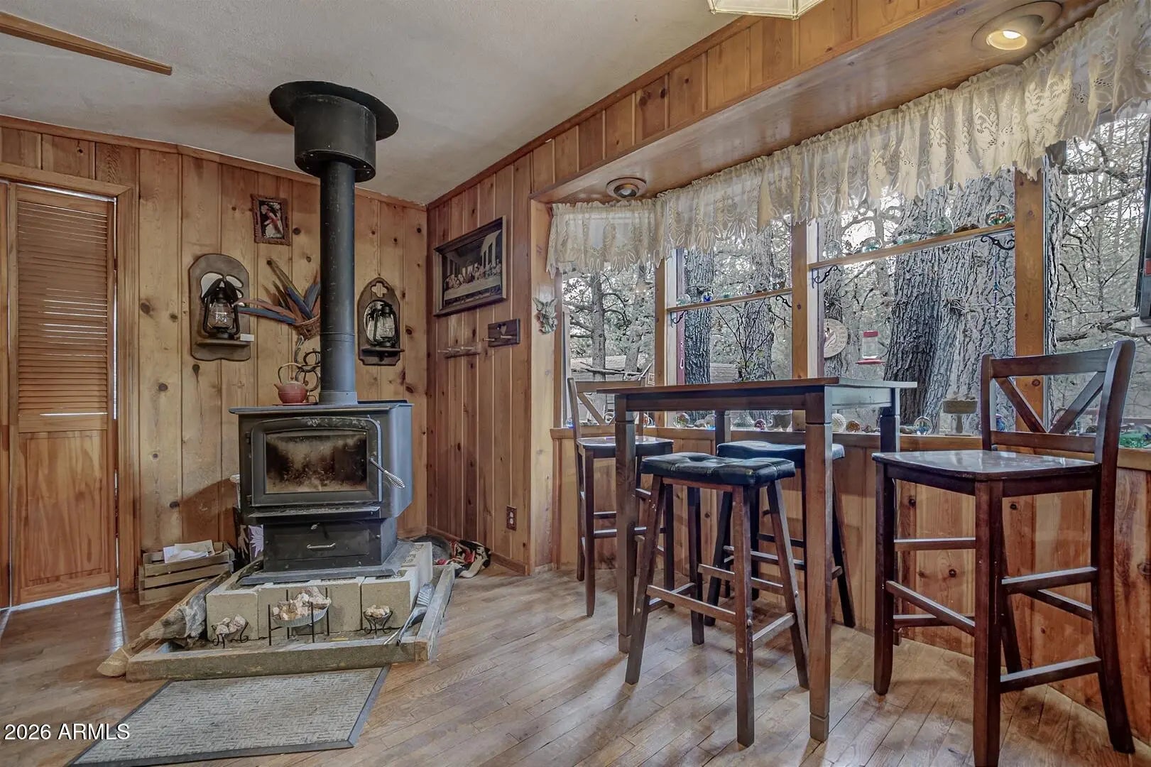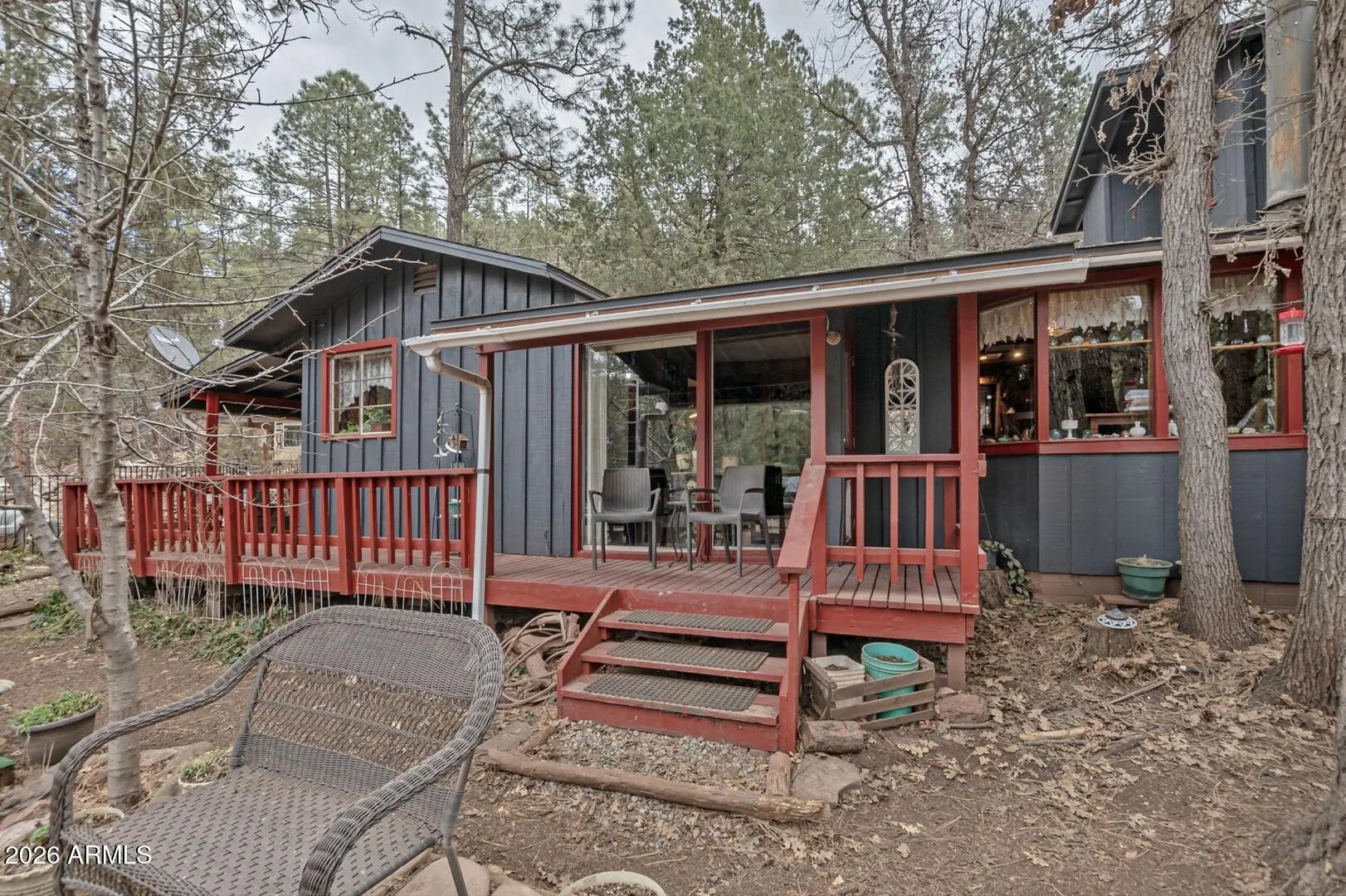 Welcome to this beautiful home in the desirable Geronimo Estates of Payson, AZ. Featuring 3 bedrooms and 2 bathrooms, this home offers a spacious interior with beautiful hardwood floors and an abundance of natural light, enhanced by five skylights throughout. Cozy up on cool evenings by the woodstove, or enjoy your day by the charming bay window. Recent upgrades include new exterior paint, a durable metal roof, and a newly installed septic system (2023), providing peace of mind for years to come. The fully fenced yard offers privacy and functionality, complete with raised planters—perfect for cultivating your own green oasis. This home blends comfort, character, and thoughtful improvements in a serene mountain setting.