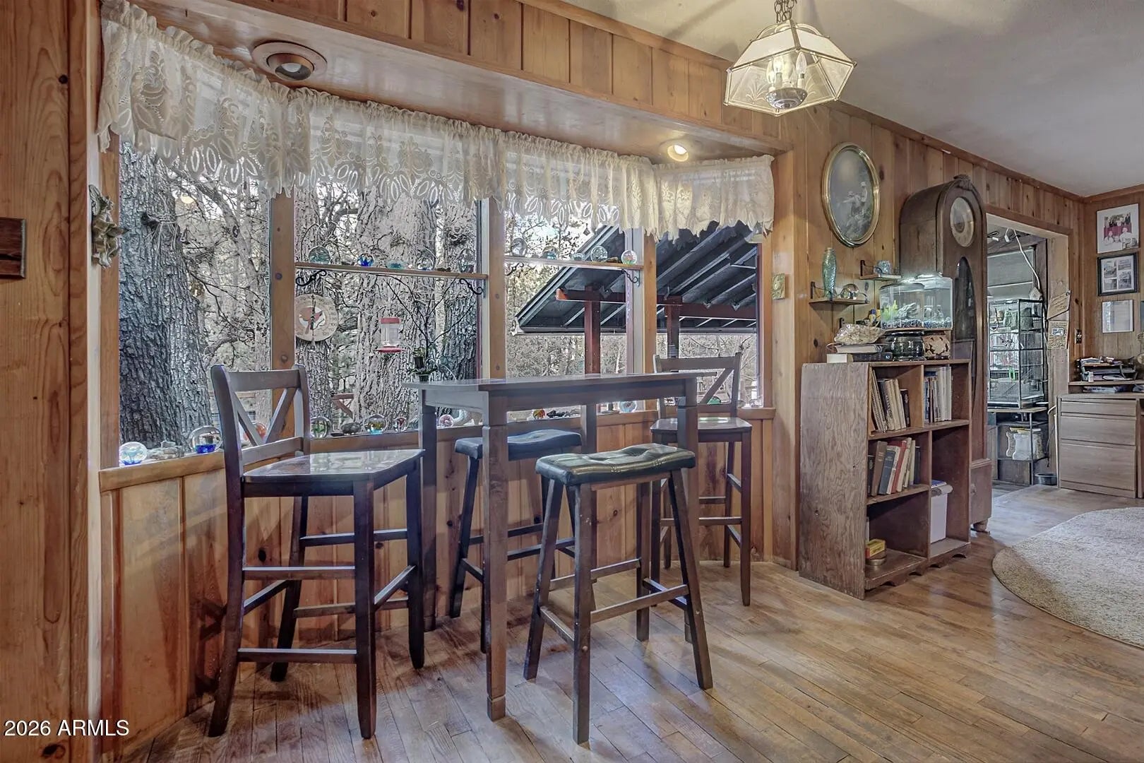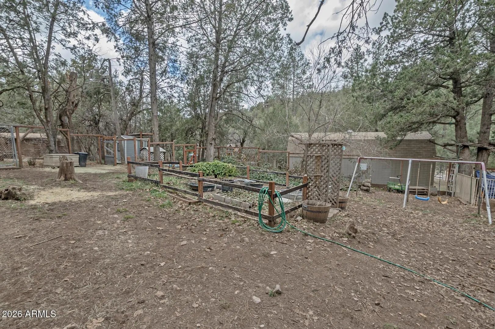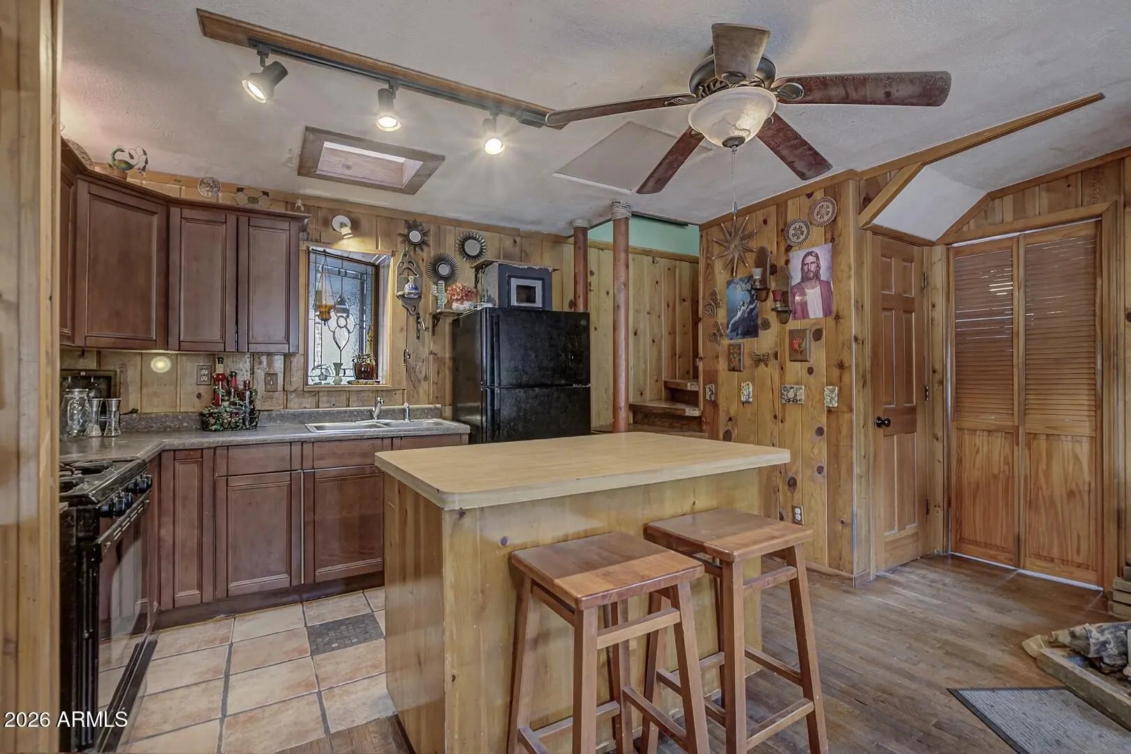Welcome to this beautiful home in the desirable Geronimo Estates of Payson, AZ. Featuring 3 bedrooms and 2 bathrooms, this home offers a spacious interior with beautiful hardwood floors and an abundance of natural light, enhanced by five skylights throughout. Cozy up on cool evenings by the woodstove, or enjoy your day by the charming bay window. Recent upgrades include new exterior paint, a durable metal roof, and a newly installed septic system (2023), providing peace of mind for years to come. The fully fenced yard offers privacy and functionality, complete with raised planters—perfect for cultivating your own green oasis. This home blends comfort, character, and thoughtful improvements in a serene mountain setting.