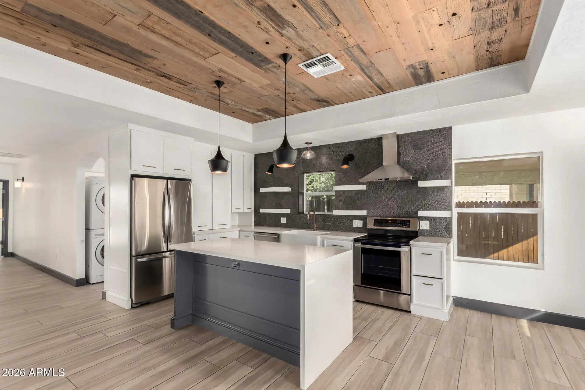 Stacked Washer/Dryer, Dryer, Washer, Refrigerator, Dishwasher, Disposal, Electric Range