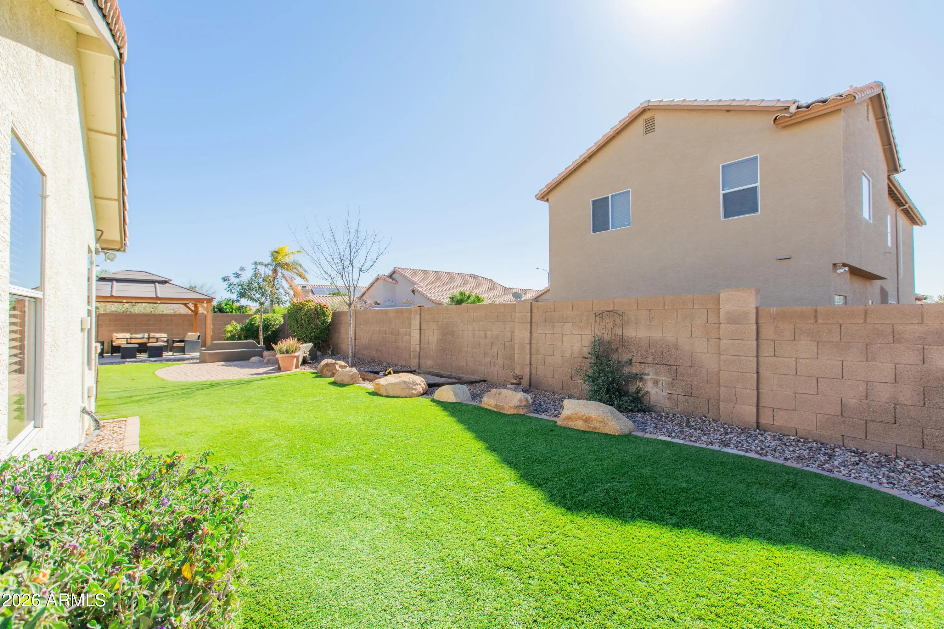 North/South Exposure, Sprinklers In Rear, Sprinklers In Front, Corner Lot, Desert Front, Gravel/Stone Back, Synthetic Grass Back, Auto Timer H2O Front, Auto Timer H2O Back