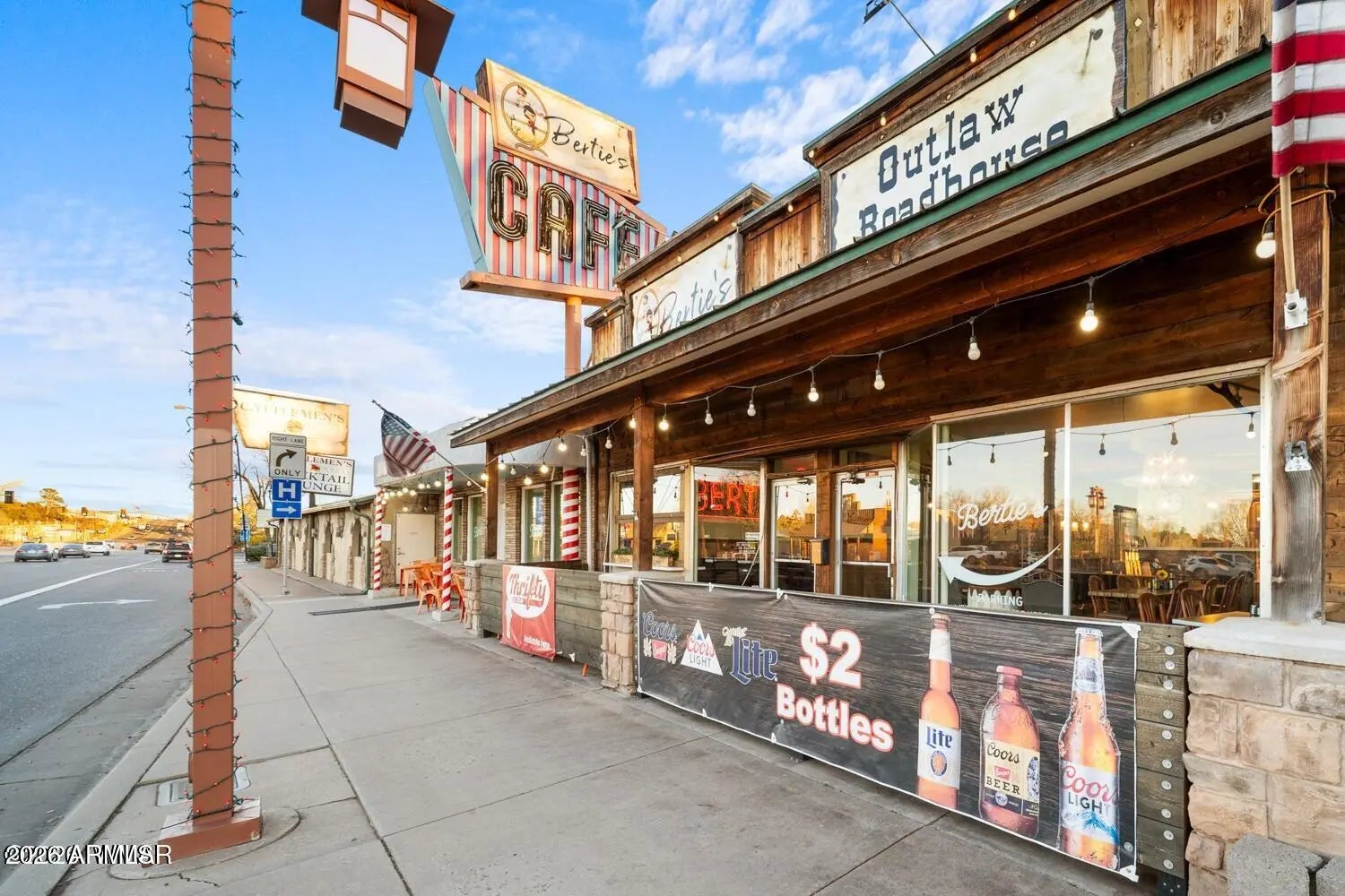 Historic commercial building with prime highway frontage in downtown Show Low. This high-visibility property offers a rare investment opportunity in a central, high-traffic location. The buildings are accessible to one another and have been tastefully remodeled, providing a well-maintained asset that blends historic character with modern updates. The purchase includes three operating businesses currently located on the property, along with all associated fixtures, equipment, and improvements for those businesses. The Arizona Meat Market business is not included in the sale, and all fixtures, equipment, and personal property associated with the Arizona Meat Market are expressly excluded. Bertie's Restaurant and Donut Shop is a well-established local favorite, featuring two large dining rooms, a spacious commercial kitchen, and a bar operating under a Series 12 liquor license, offering strong income and operational potential. The remaining included businesses contribute to steady foot traffic and visibility, further enhancing the investment appeal. Parking is located behind the businesses, with the parking lot included in the purchase and convenient access from Cooley Street. This offering consists of four parcels: 210-14-018A, 210-14-018B, 210-14-060, and 210-14-020B. Building and land only are also available for purchase at $1,100,000. Please see MLS #259383 for details.