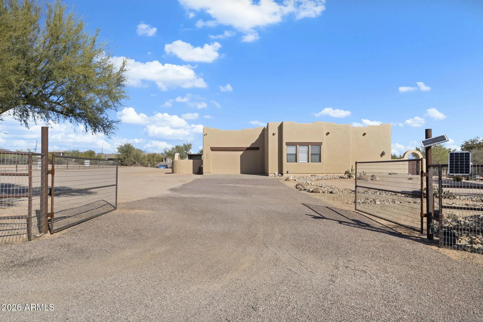 HORSE ENTHUSIAST'S RANCH - A DREAM WINTER RETREAT! Rare chance to own one of few ranches in Rio Verde Foothills w/easy paved access,abundant well water,amazing horse facilities,and a resort style home and pool!Thoughtfully designed w/the horse lover in mind!Custom 8 stall barn,designed for optimum airflow,2 wash racks,tack/ storage rms,misters,paver alleyway,hot water,LED,30/50 amp RV svc.,2 paddocks, covered hay storage,112'x224' arena w/sprinklers and 5-rail fencing,4-rail List of Upgrades & Fine Features under the doc. tab of listing. Here they are as well: 14410 & 14422 E. Monument Dr., Scottsdale, AZ 85262 APN #219-39-188 L & M - (2.3 ACRES) HOME FEATURES * Remodeled less than 2 years ago * 2900+/- s.f. * 3 bedrooms, 3 bathrooms, split floorplan * Spacious family room/great room with cozy fireplace and niches for your western art * Huge Office/den, bonus room with window bay seating off kitchen * Superior lighting and ceiling fans throughout * 8' Alderwood front doors * French doors throughout * 3 private courtyards * Covered patios front and back * Energy efficient- 2" x 6" exterior walls, dual pane windows * Window shutters throughout * 2-car garage- Extended length, 8' tall doors (Fits tall vehicles) * Well appointed kitchen: * Quartz counter tops * White, subway, backsplash * Breakfast bar and separate island * 2 refrigerators * Electric cook top and wall oven * Built-in microwave * Alderwood cabinets and pantry * Large master suite & bath: * Freshly painted * Walk-in shower * Jacuzzi tub * 2 sinks * Spacious walk-in closet * Plank tile floors * Rear patio access * 2nd bedroom: Accommodates kingsize bed, large walk-in closet * 3rd bedroom: Spacious with on-suite bathroom. Great for guests or in-laws * Hall bathroom with tub/shower * Security cameras throughout, 50 amp service for RV's * Nnewer exterior paint * Energy efficient- 2 heat pumps for heating & cooling. 1 replaced 3 to 4 years ago FRONT COURTYARD * Gated front courtyard- Paved stone walkway & lounge area, kiva fireplace, built-in seating * Custom security screen doors throughout * Covered front patios BACKYARD * Swimming pool- Pebble-tec finish, granite, boulder, waterfall feature, newer pool filter * Privacy block wall * Spiral staircase leading to view deck capturing panoramic mountain views * Low maintenance, professional landscaping. Paver, outdoor, seating/dining, area * Covered rear patio HORSE FACILITIES / PROPERTY HIGHLIGHTS * BARN- Custom built for optimal functionality and air flow, Overall dimensions- 36' x 72' Paver alley/breezeway (8) 12' x 12' stalls, 3 in 1 feeders, wire mesh stall fronts (2) 12' x 12', matted, wash racks 12' x 12' tack room on slab 12' x 12' storage room on slab Misters, hot water, power, led lights, 30 amp service for RV hook-ups * 12' x 14' covered hay storage on slab. Holds up to 100 bails * (2) 40' x 50' turnouts/paddocks * Arena: 112' x 224' with 5 rail pipe fencing. Graded for optimal drainage. * Room for holding pen, cattle run, and more * Perimeter, 4 rail pipe, fencing * Solar powered, double RV gate, entrance * Gated, privacy, RV parking area with 30 & 50 amp service ADDITIONAL HIGHLIGHTS * 2.3 ACRES- (2) parcels, APN #219-39-188 L & M. Each parcel comes with water from a shared well * Well located on property with abundant water supply. Pressure tank, booster pump, replaced 1 year ago * Paved access all the way to property * Spectacular mountain views * Low property taxes. No HOA! * Easy access to the 3.5 million acre Tonto National Forest and the Scottsdale McDowell Sonoran Preserve, offering endless trail riding, hiking, mountain bike riding, and off-road adventures Located among world-class horse training ranches and equine properties * Minutes from Westworld, golf, shopping, restaurants, and much more