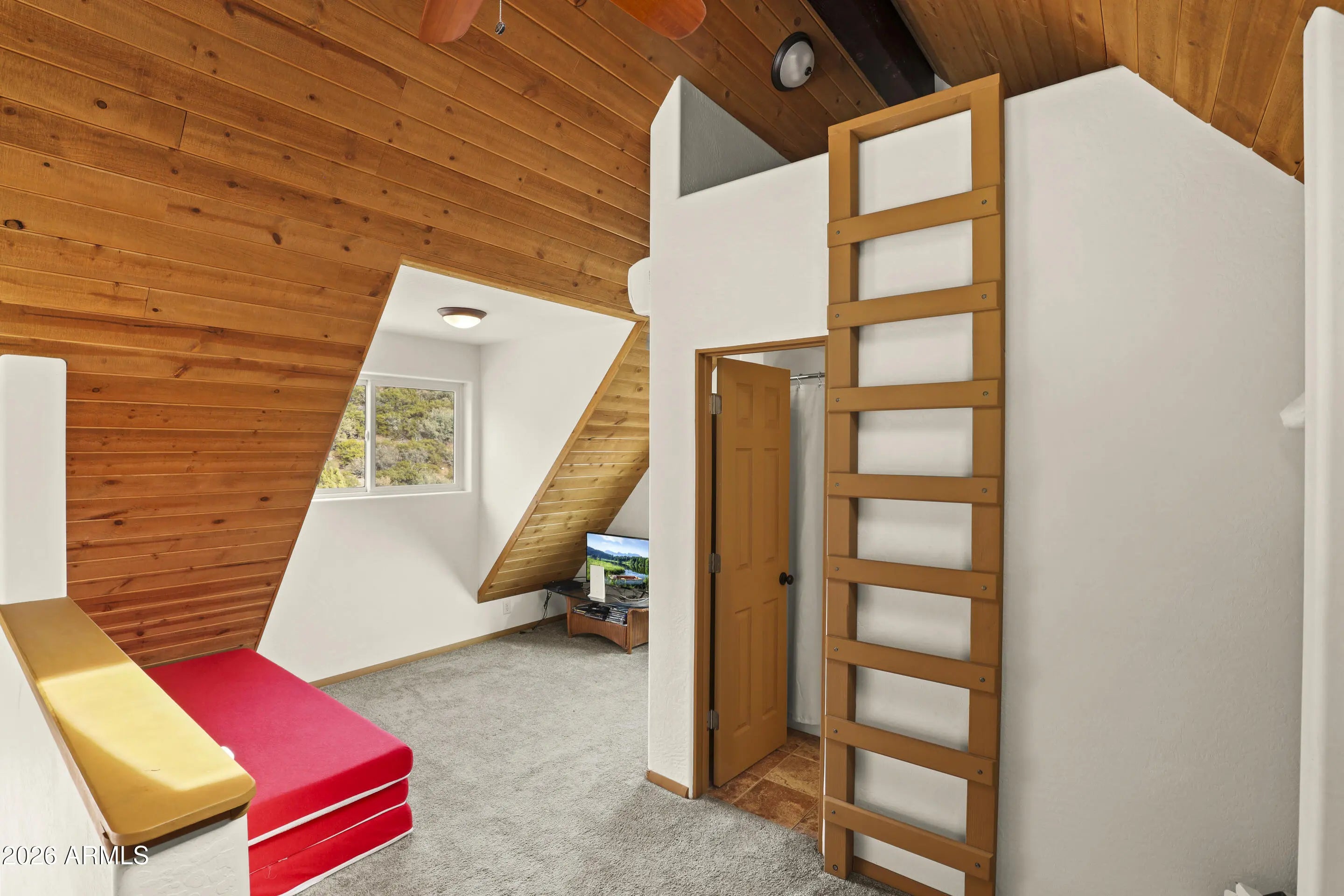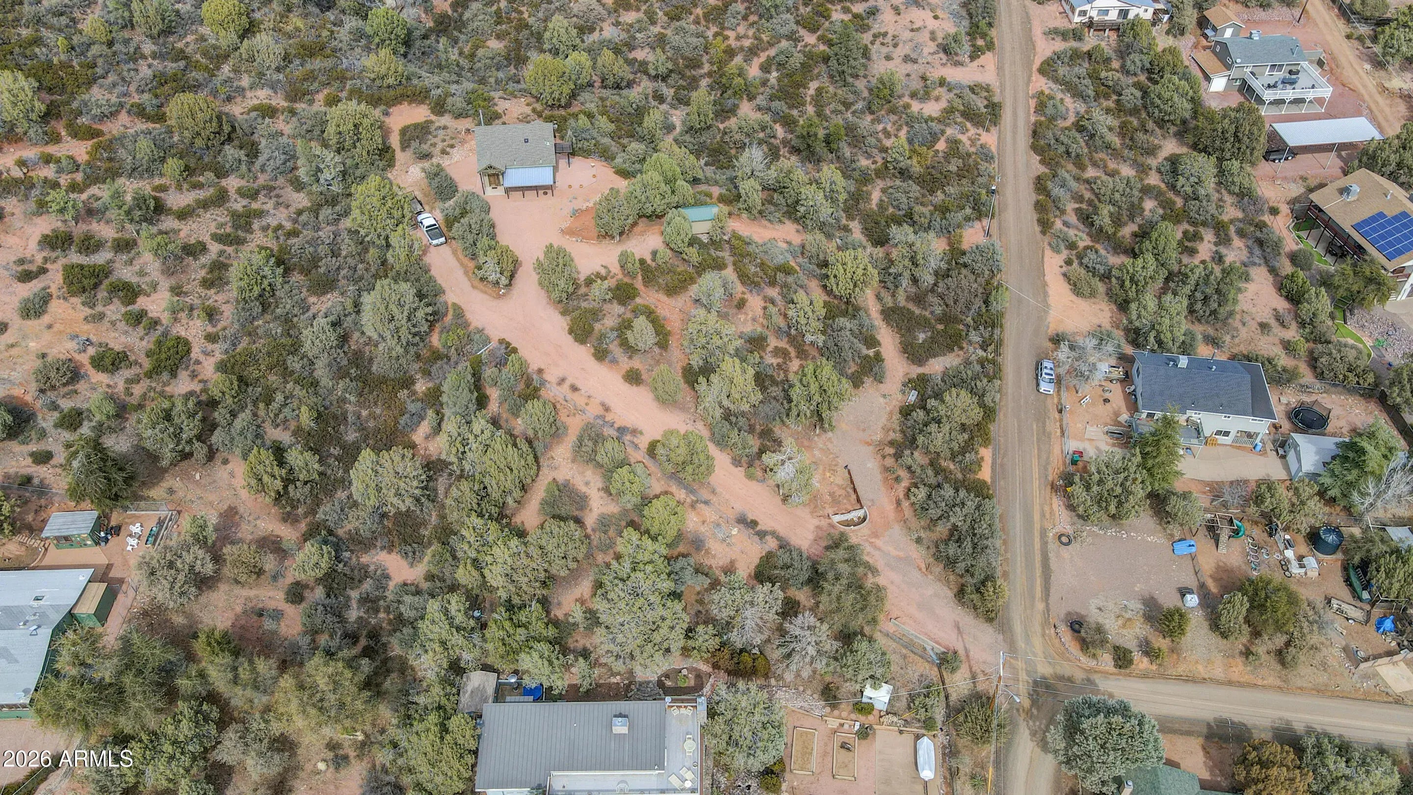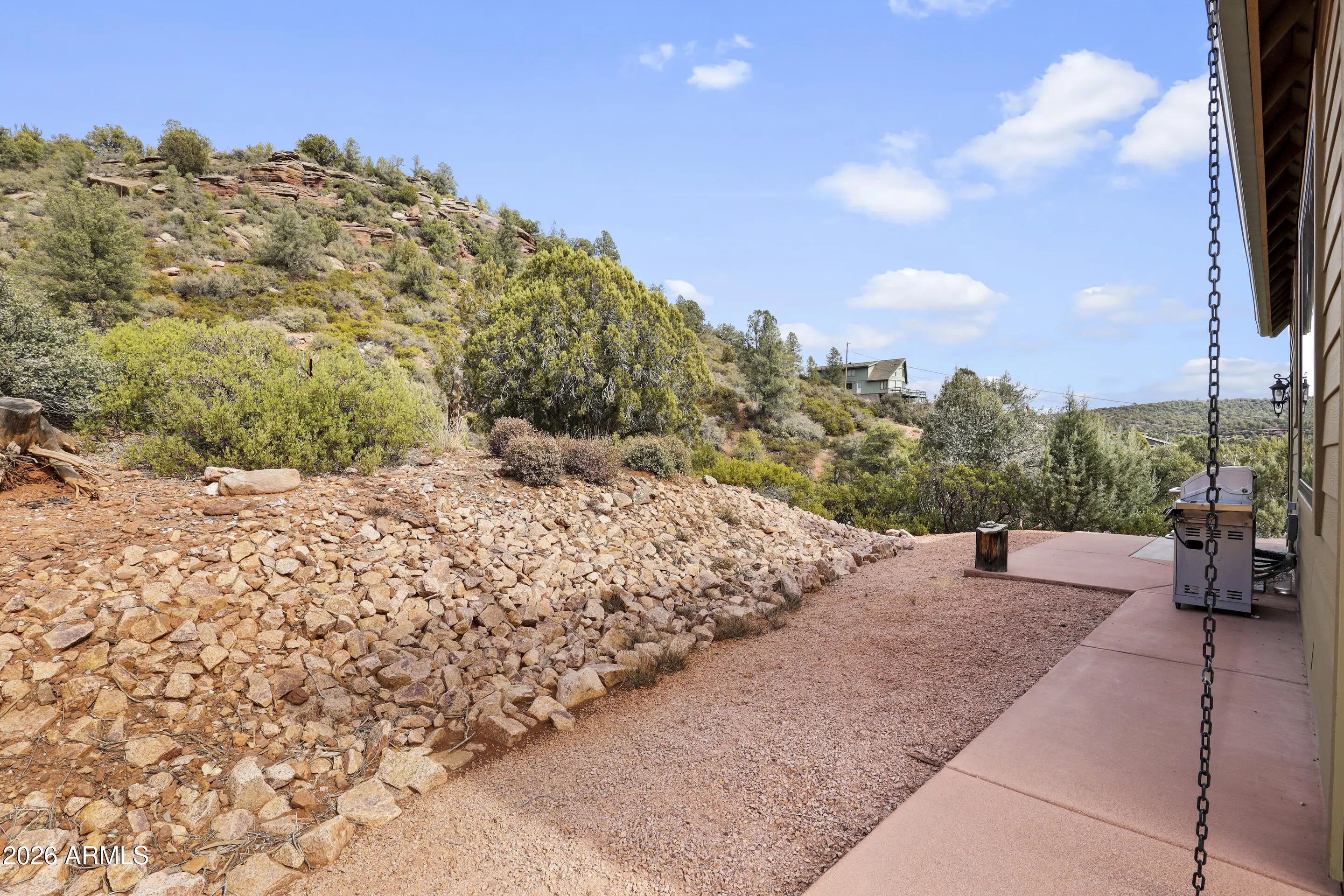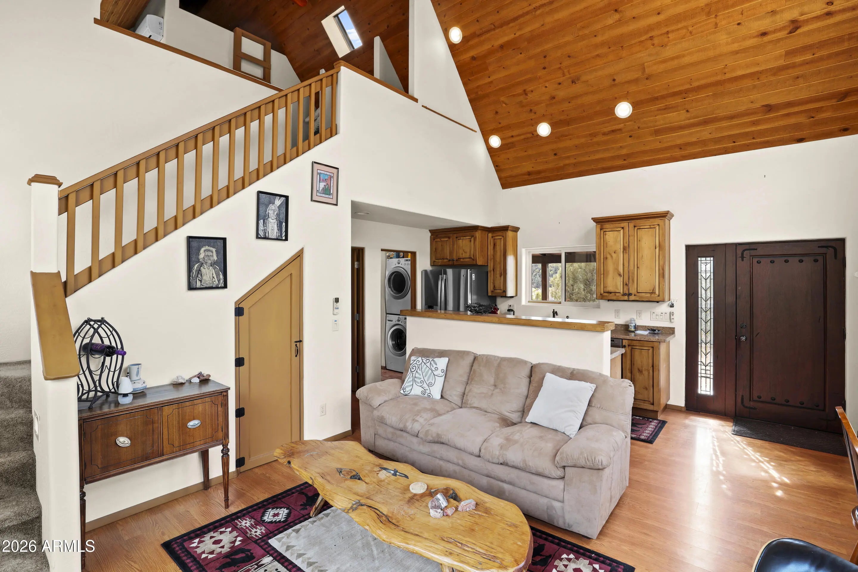 Rare opportunity to own a chalet styled home bordering National Forest! Enjoy unobstructed views, total privacy, and walking distance to the East Verde River. Your ultimate mountain lifestyle awaits. Remarkable privacy on 1.64 acres with the Tonto National Forest in your backyard. Main bedroom is on lower level with access to back patio and tranquil view of the forest. Walk-in shower, single vanity sink, stacked washer and dryer are in attached bathroom..Kitchen has an electric oven, refrigerator, microwave, real wood cabinets and a built-on dining table that folds against the breakfast bar. Wood stove in Great Room and windows galore for tons of natural light! Sleeping loft has access to a spacious deck to view stars and wildlife. Full bathroom upstairs as well as small built in desk area. Large concrete, wrap around patio for outdoor entertaining and a covered patio in front of the house. There is a small shed, extra parking and RV parking at the base of driveway. Home is being sold turn-key, with exception of a few personal items.