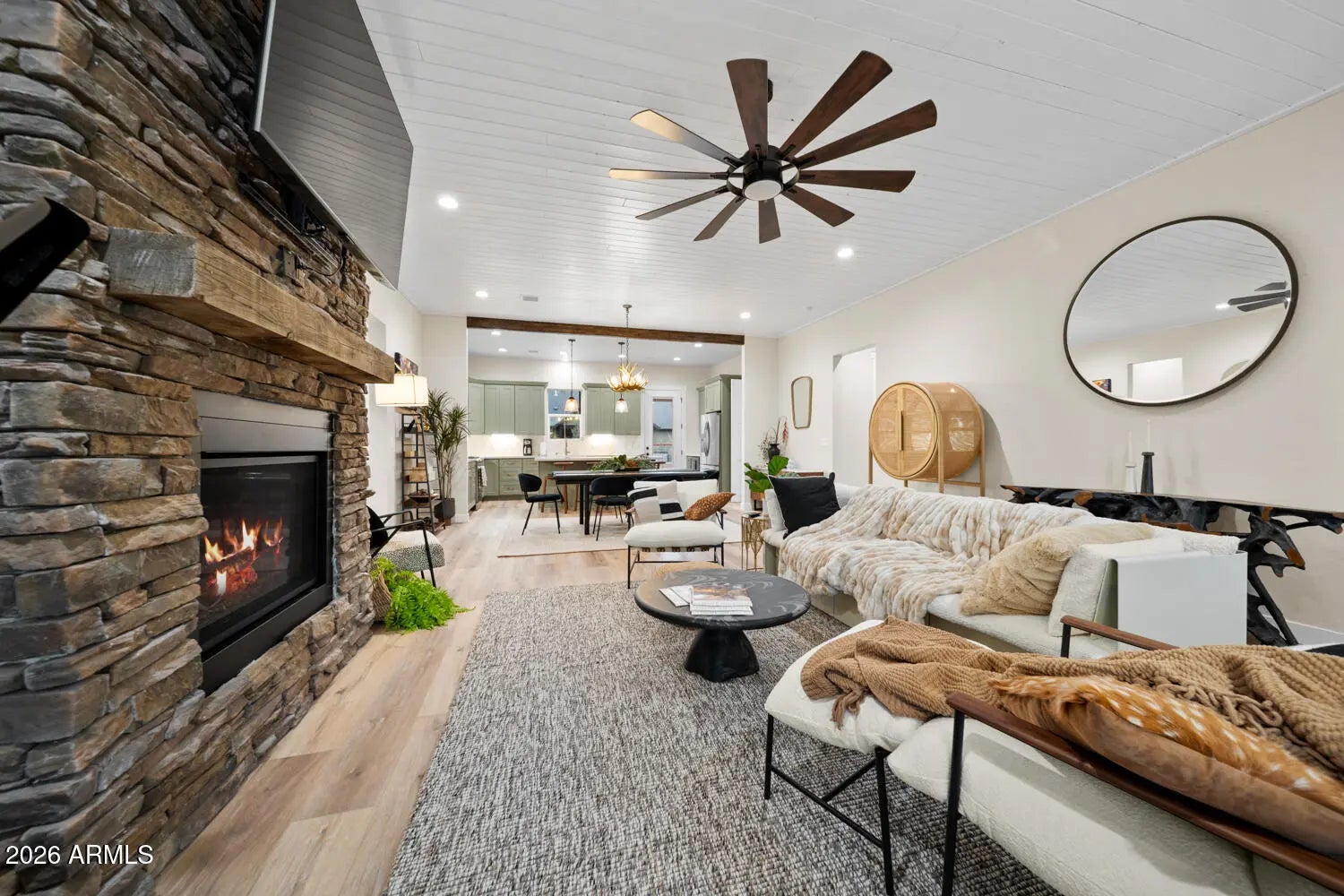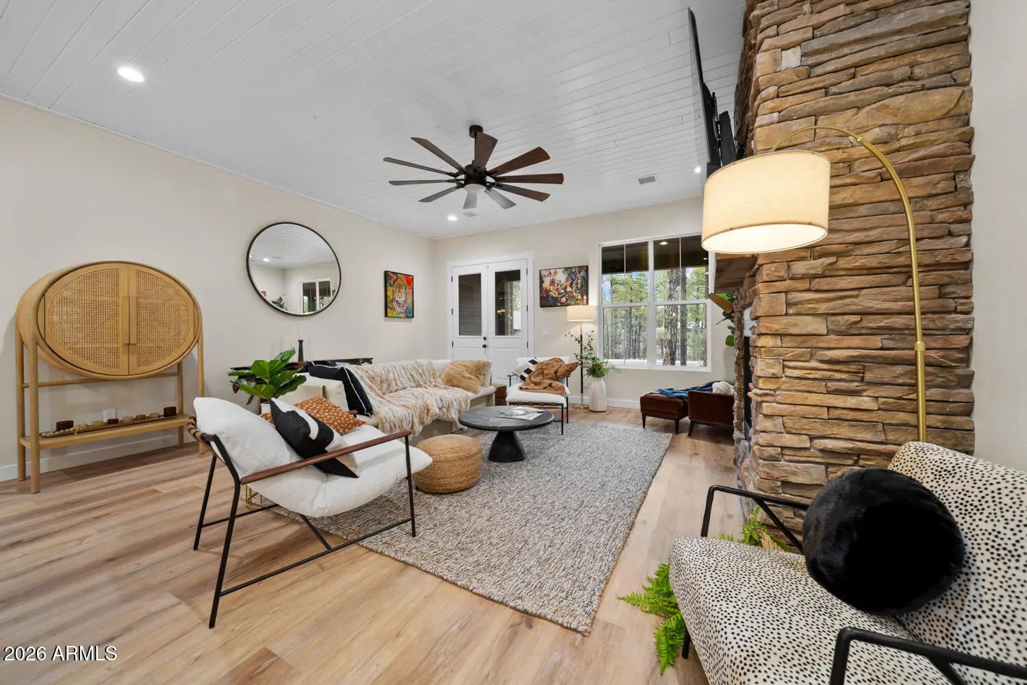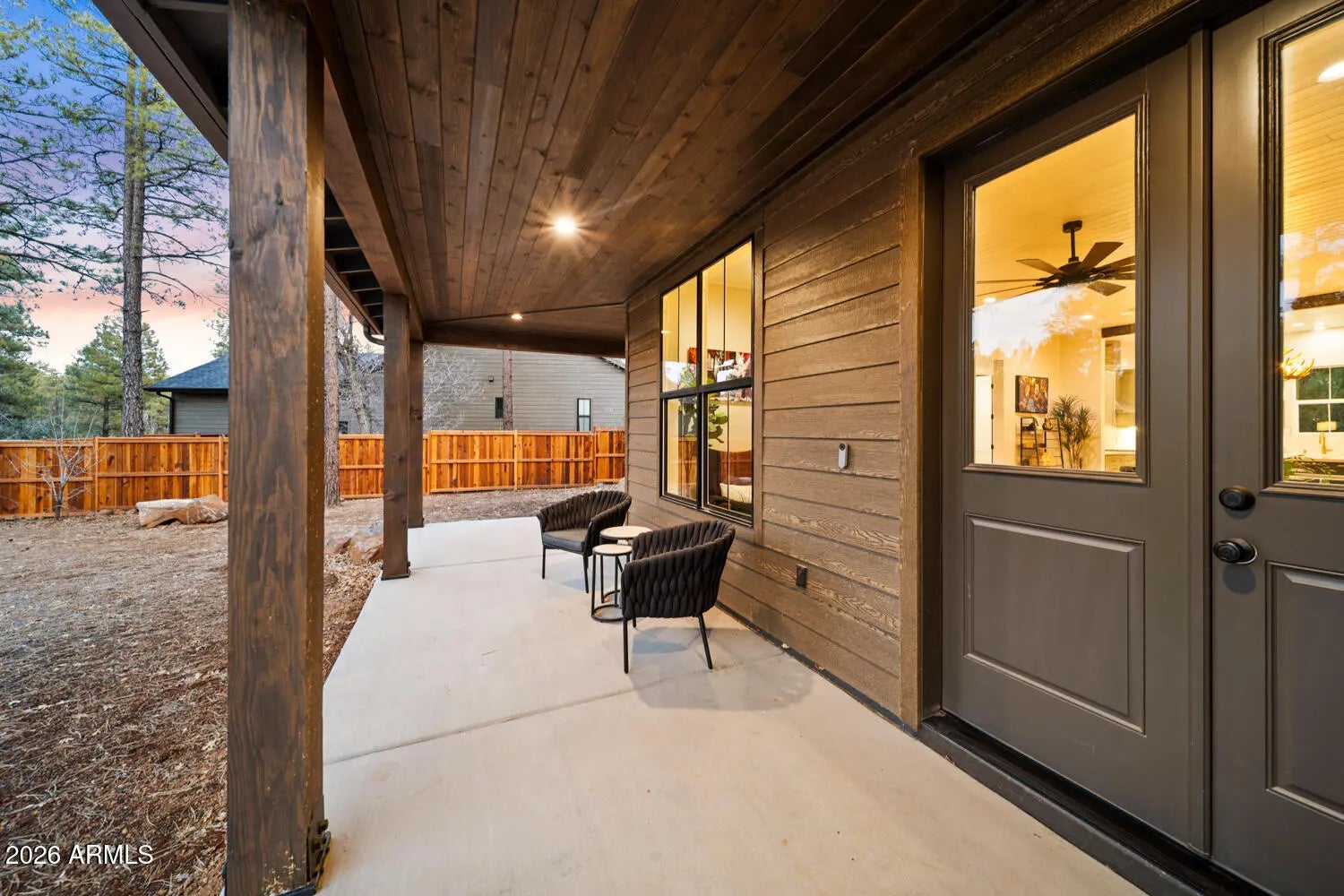 Experience refined mountain living in the White Mountains with this modern cabin, located in the private gated community of The Retreat at Walnut Creek. Thoughtfully built with high-end finishes throughout, the home offers quartz countertops, waterproof flooring, spray-foam insulation, hand-laid stone and tile, and custom cabinetry in today's popular colors. The EV-ready garage accommodates two electric vehicles, features an epoxy floor, and offers the convenience of only one step into the home. Enjoy a fully fenced backyard, perfect for pets or relaxing outdoors. Surrounded by year-round recreation including skiing, hiking, biking, golf, and nearby lakes. The Big Springs Trail system with access to Woodland Lake is just a few hundred yards away. Furnishings may be available