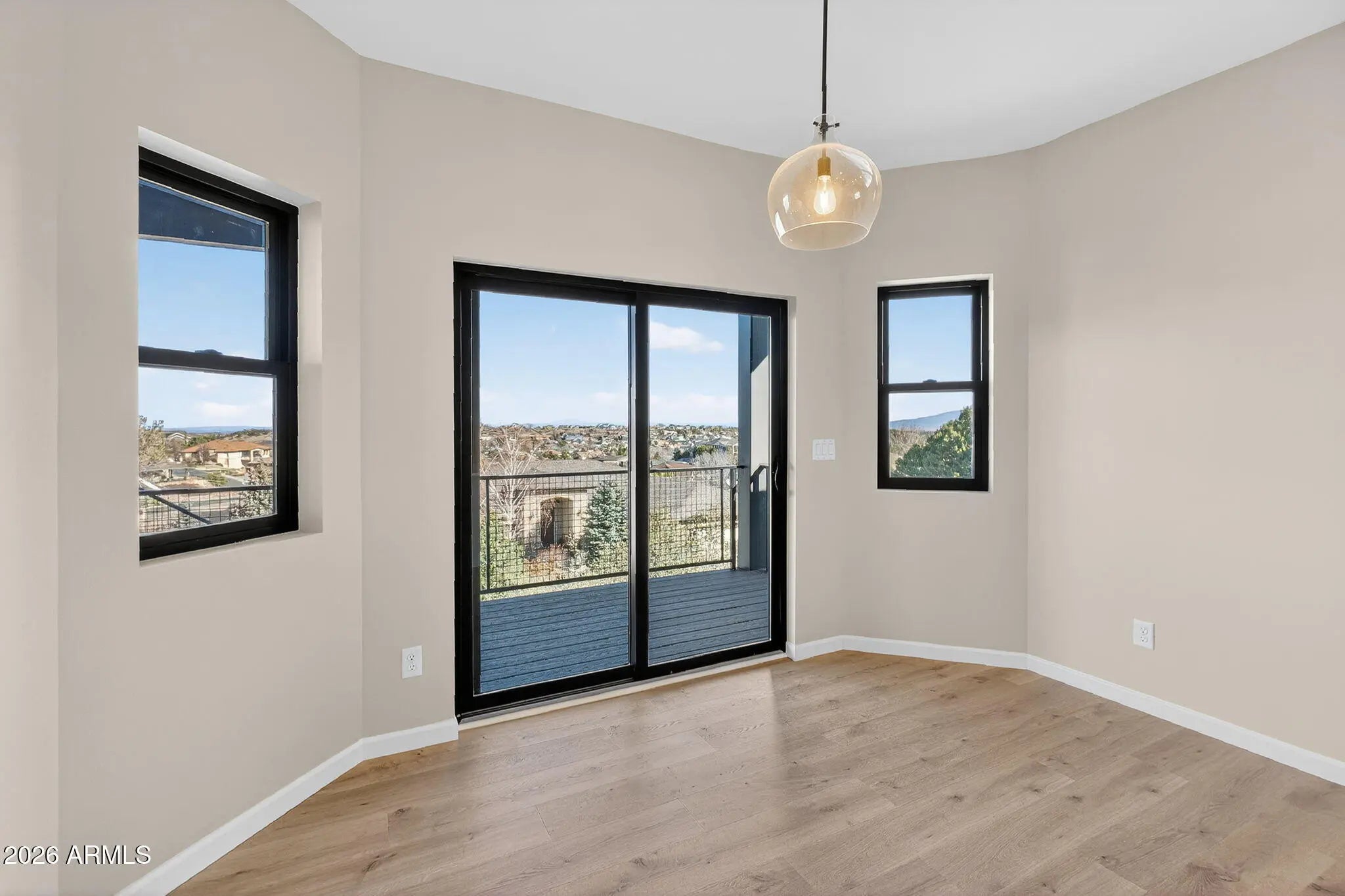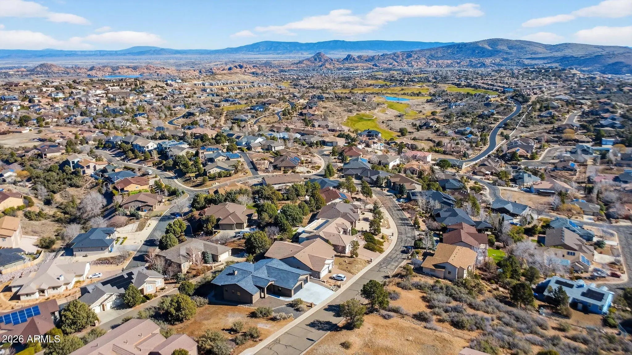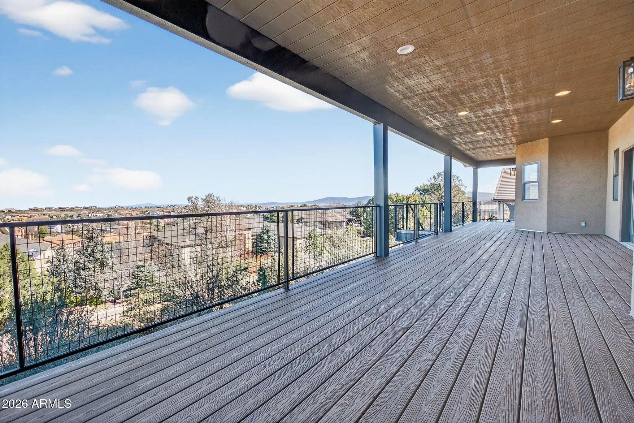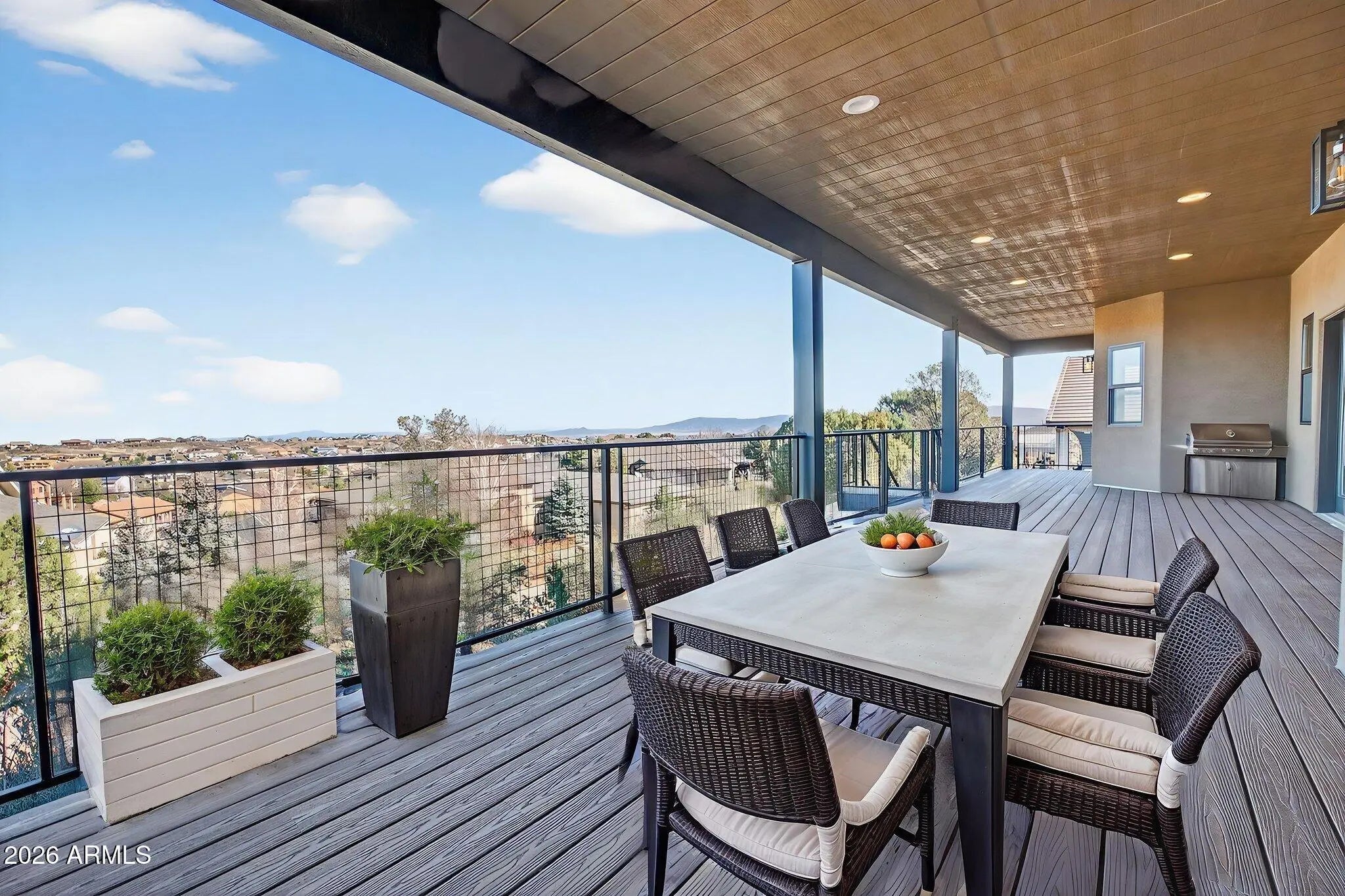 Welcome to this stunning brand-new 2026 custom home in Prescott, thoughtfully crafted for modern living and breathtaking mountain views. Set on a quarter-acre hilltop lot, this 3-bedroom, 2-bath residence offers comfort, elegance, and exceptional indoor-outdoor enjoyment. The light-filled open-concept layout features vaulted ceilings, recessed lighting, designer fixtures, and a striking corner stone fireplace. The eat-in kitchen showcases quartz countertops and backsplash, a stainless appliance package, and functional space and pantry for everyday living. Soak in the panoramic view, relax or entertain from the expansive full-length deck overlooking Granite Mountain, the San Francisco Peaks, tips of the Sedona Red Rocks, and iconic Granite Dells— the deck can be accessed separately from the primary suite, living room, and kitchen. The split floor plan offers a luxurious primary retreat with free-standing garden tub, tiled walk-in shower, dual quartz vanities, and large walk-in closet. Two spacious guest bedrooms and shared full bath reside on the opposite side for comfort and privacy. Additional highlights include a formal dining room (could be used as an office, den or flex room), 3-car attached garage, ample storage, and wood-style flooring. The generously planned laundry room boasts additional quartz, upper/lower cabinets, deep sink, and hanging closet. Low-maintenance rock landscaping and natural bushes provide a clean and natural canvas for future outdoor design. This exceptional home seamlessly combines high-end finishes, breathtaking scenery, and a thoughtfully designed layout. Come view this brand new masterpiece and envision your future, capturing the best of Prescott living!