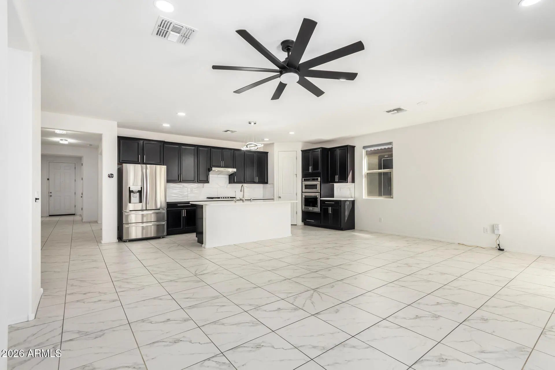 Move-in-ready 4-bedroom rental property designed for comfort and easy living! This inviting home offers a 2-car garage and a bright, open interior with a spacious great room ideal for entertaining. Tile flooring in all the right places pairs beautifully with recessed lighting for a clean, modern feel. The kitchen is a standout, featuring stainless steel appliances, wall ovens, white cabinetry, granite counters, a stylish tile backsplash, a walk-in pantry, high end luxury light fixtures and a center island with a breakfast bar. Relax in the primary bedroom with a private bathroom showcasing dual sinks and a walk-in closet. Outside, enjoy a serene backyard with a covered patio and ample space for barbecues or resting under the starry night skies. Come and experience this wonderful gem!