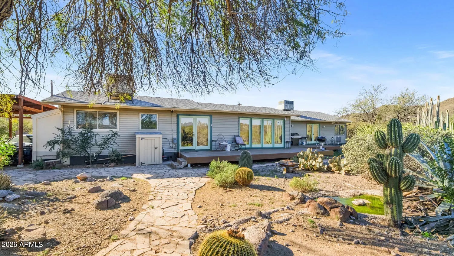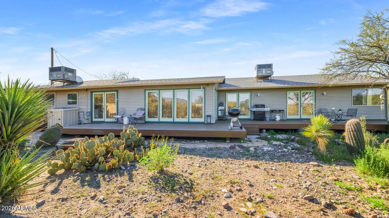 Wake up to a little slice of paradise and the quiet beauty of country living on 1.5 acres in New River. This inviting 3 bedroom, 2 bath home offers space, privacy, and a lifestyle that feels a world away yet still within reach of modern conveniences. Step outside to a spacious outdoor deck, perfectly positioned to take in the surrounding Sonoran Desert, mountain backdrops, and endless blue skies. Whether you're sipping coffee at sunrise, entertaining under the stars, or simply enjoying the peaceful stillness, this outdoor space is where the property truly shines. The land offers room to roam, garden, or add corrals for your horses! Ideal for those craving freedom, fresh air, and a connection to nature. With natural desert landscaping and unobstructed views.