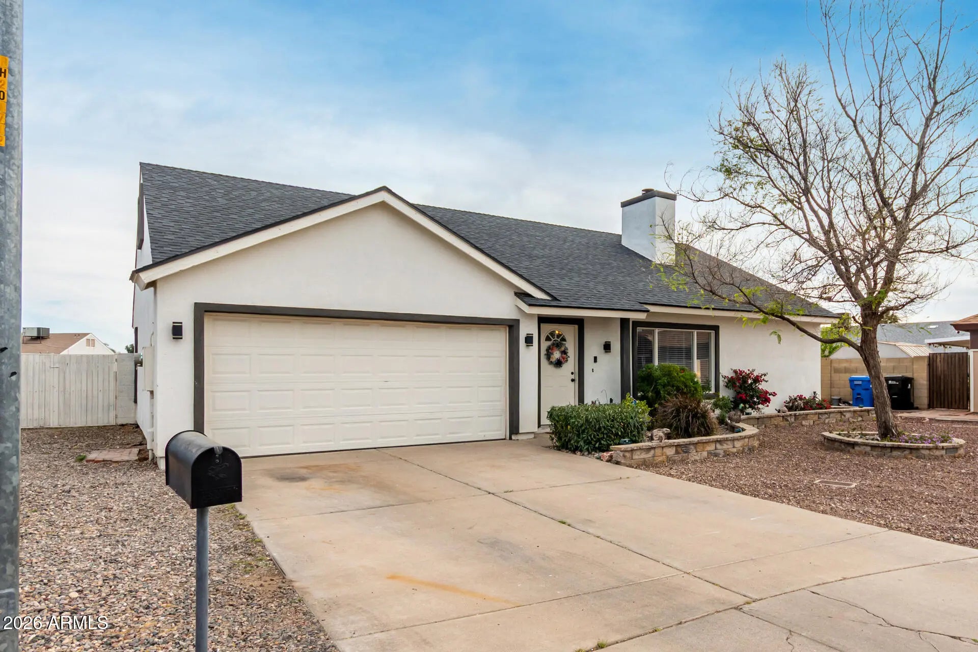 Take pride in owning this charming 3-bedroom home perfectly situated on a premium cul-de-sac lot! The well-maintained interior showcases an inviting open floor plan enhanced by wood-look flooring, abundant natural light, neutral palette, and a floor-to-ceiling stone fireplace that anchors the living space. The impeccable kitchen is designed to impress, featuring stainless steel appliances, tile backsplash, ample cabinetry, granite counters, and a waterfall island with a breakfast bar, ideal for both everyday living and entertaining. The airy primary bedroom serves as a private retreat, complete with a bathroom with dual sinks. Continue onto the spacious backyard, where a covered patio provides the perfect spot to relax and enjoy Arizona's endless blue skies. This gem won't last long!