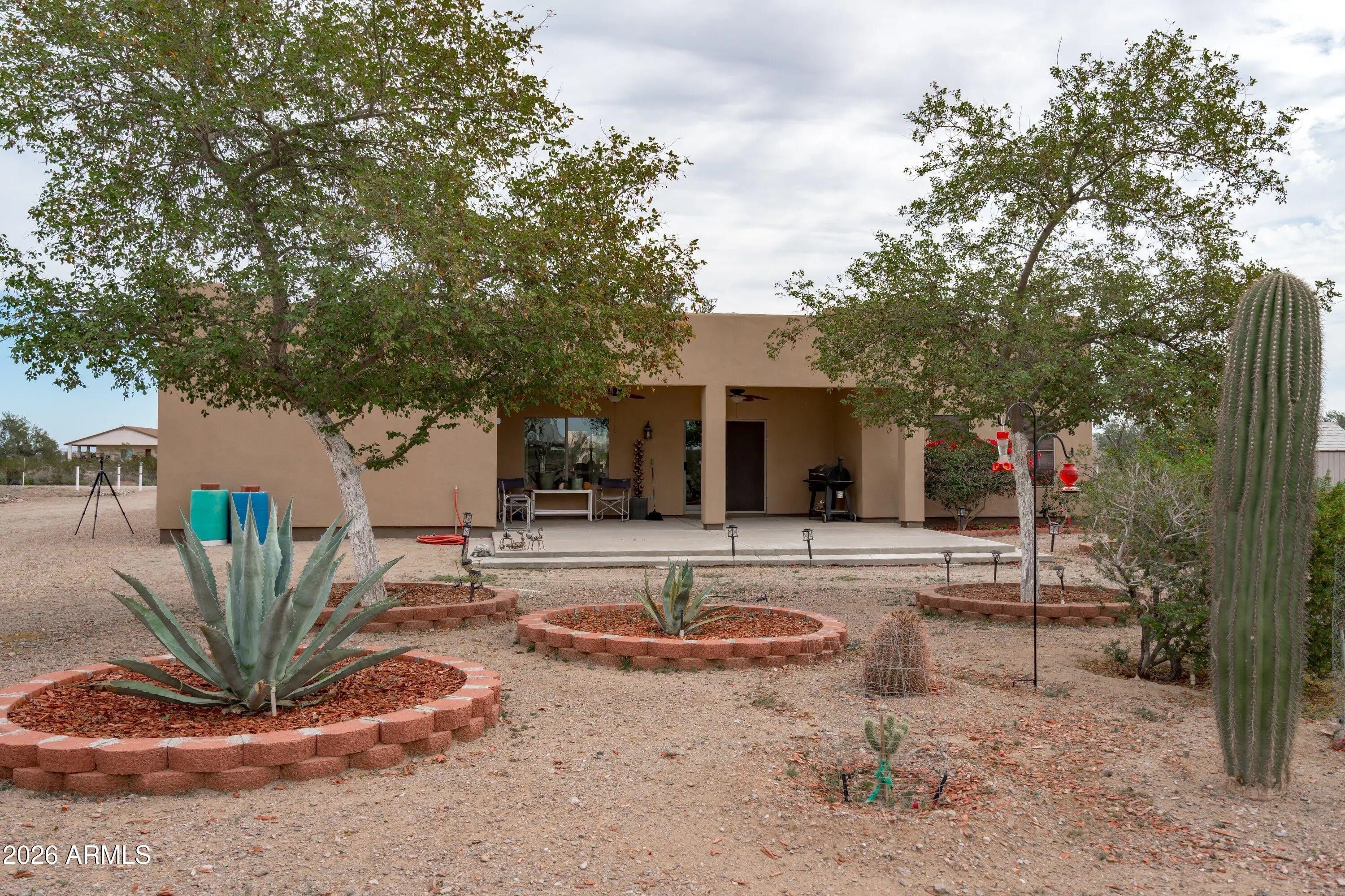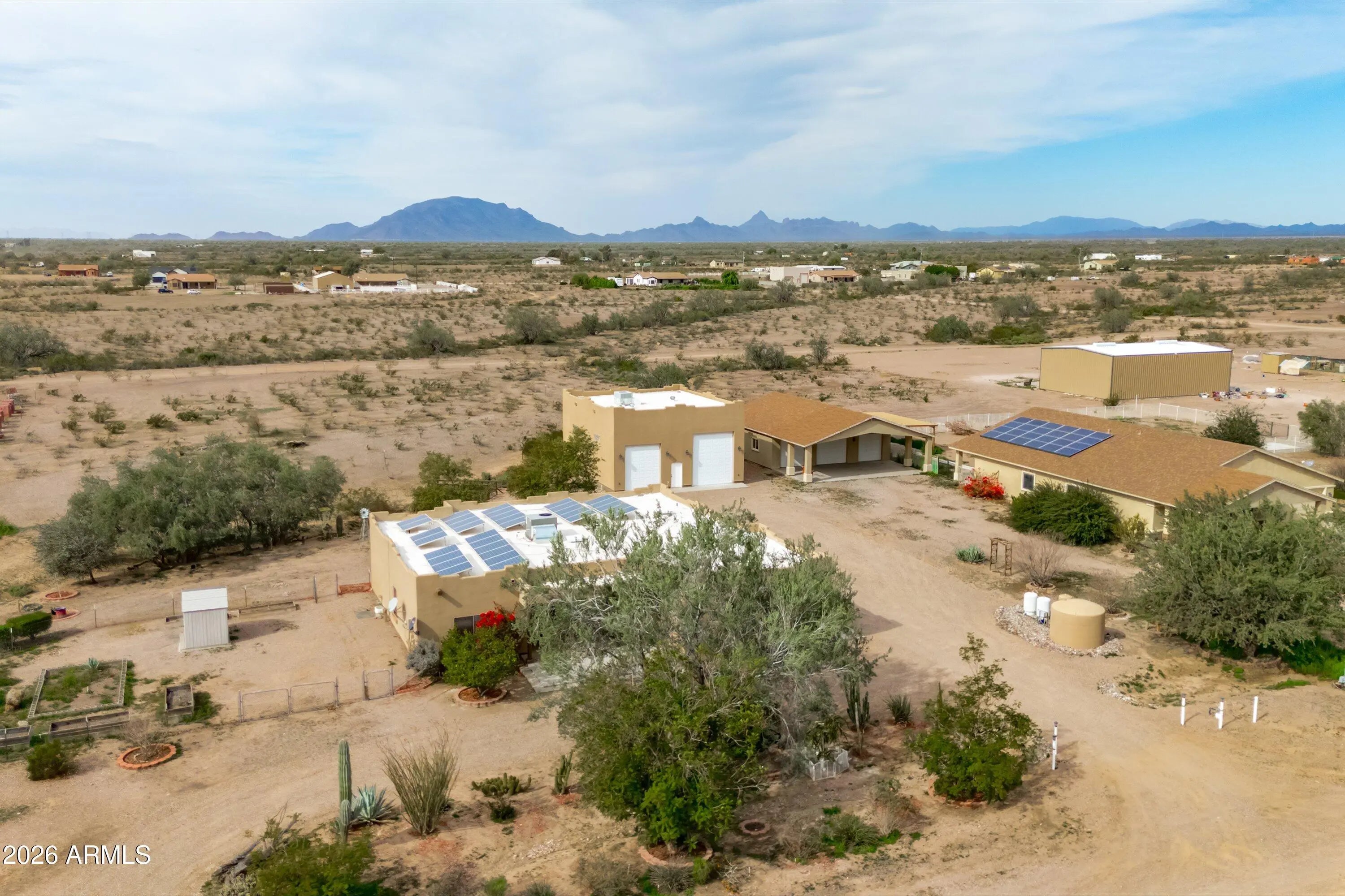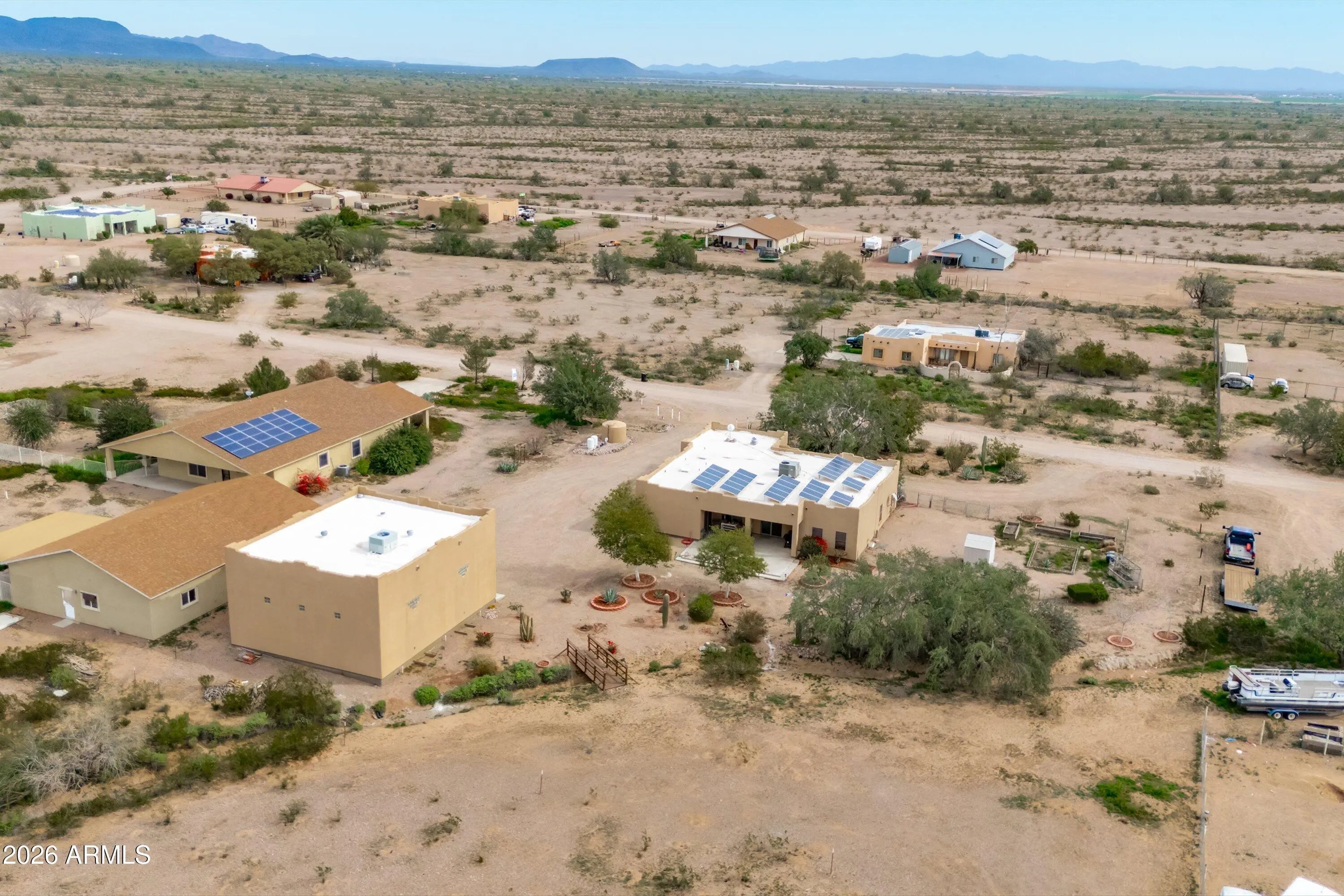 Welcome to wide-open living on 2 acres! This beautifully maintained 4-bedroom, 2,164 sq ft home offers the perfect blend of rural space and modern upgrades. A standout 36x42 RV garage with A/C provides incredible flexibility for RVs, toys, workshop use, or extra storage. Enjoy major energy savings with an owned 7.5 kW solar system. The property features a private well plus a 3,500-gallon water storage tank for added reliability. Inside, you'll find upgraded flooring throughout, new granite countertops in the kitchen, a reverse osmosis system, and a water softener for everyday comfort. Plenty of room for horses, animals, gardening, or future expansion—no HOA and endless possibilities. Ideal for those seeking privacy, functionality, and room to live life your way.
