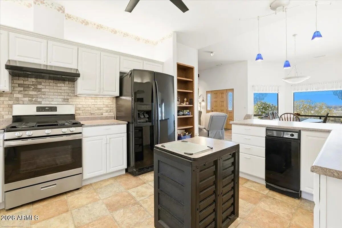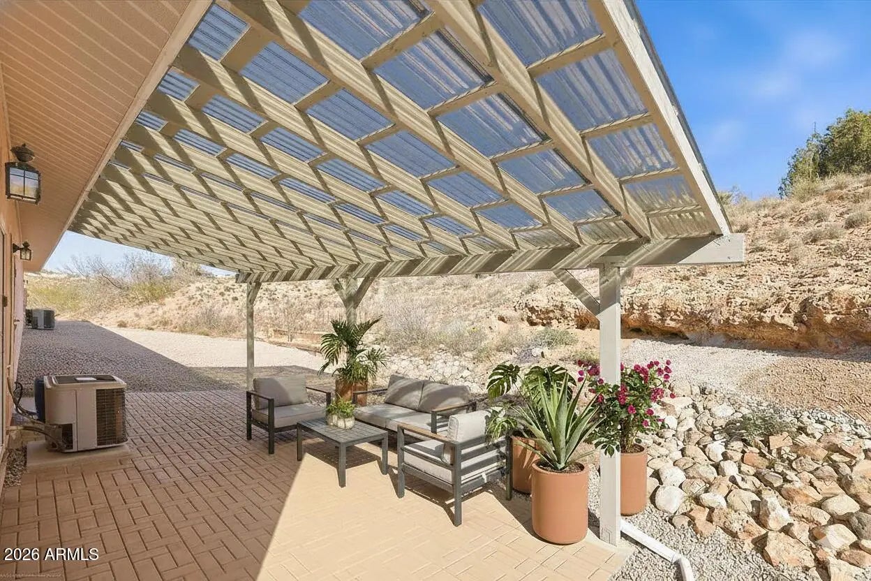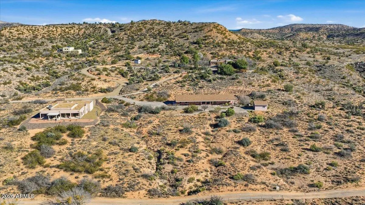 Set at the tranquil end of Koch Ranch Road and backing directly to National Forest land with trail access, this thoughtfully designed custom ranch offers an exceptional blend of privacy, panoramic beauty, and enduring quality. Positioned on over 2.6 acres, the property captures sweeping west-facing views of Mingus Mountain, the twinkling hillside of Jerome, and unforgettable high-desert sunsets that paint the sky each evening. Built and lovingly maintained by the original owners, this home reflects years of meticulous care and intentional design. Wide doorways, a purposeful layout, and abundant storage throughout speak to both comfort and functionality. Expansive windows line the western side of the home, framing the surrounding landscape and filling the interior with natural light, while multiple rooms provide direct access to the outdoorsinviting a seamless connection to nature. The kitchen is both tasteful and efficient, featuring abundant cabinetry, under-cabinet lighting, a tile backsplash, breakfast bar, and a new gas range. The space flows into an exceptionally well-appointed laundry and utility area designed for organization and convenience. The primary suite is generously sized, offering a substantial walk-in closet with custom shelving, a sitting area with beautiful mountain views, and a well-designed bathroom with a separate tub and a wheelchair accessible shower. The second bedroom features an impressive walk-in closet with custom shelving rarely found outside of primary suites. Storage is a standout feature throughout the home, thoughtfully integrated at every turn. Each bedroom has its own access to the outdoors for added functionality. A flexible bonus space,currently used as an office,offers endless possibilities for a library, studio, fitness room, or additional bedroom, complete with a hidden bookshelf entry that adds a touch of character and charm. An oversized attached garage with a full bath is ideal for those who need space to work on projects or rinse off before tracking dirt into the house. The garage is insulated and outfitted with extensive built-ins. In addition, a detached approximately 400-square-foot workshop/garage is finished to match the home's rustic style. With a half bath, permitted electrical, plumbing, and heating already in place, the outbuilding offers outstanding potential for creative or functional expansion. Additional amenities include 36" doorways, a reverse osmosis water filtration system, two hidden storage spaces in the living room, raised planting beds, a new hot water heater, and plumbing in place for a future gas fireplace in the living room. The front porch offers existing electrical for a hot tub, along with a privacy wall - ideal for effortless reinstallation. Surrounded by tranquility, trail access and open space,yet just a short drive to Sedona and Cottonwood,this property offers a rare opportunity to enjoy the serenity of the high desert without sacrificing convenience. Carefully built, meticulously kept, beautifully sited, and clearly cherished, this is a home designed to stand the test of time. Virtual staging has been used in the living room and workshop photos to showcase the possibilities of how the space may be upgraded by the next owner.