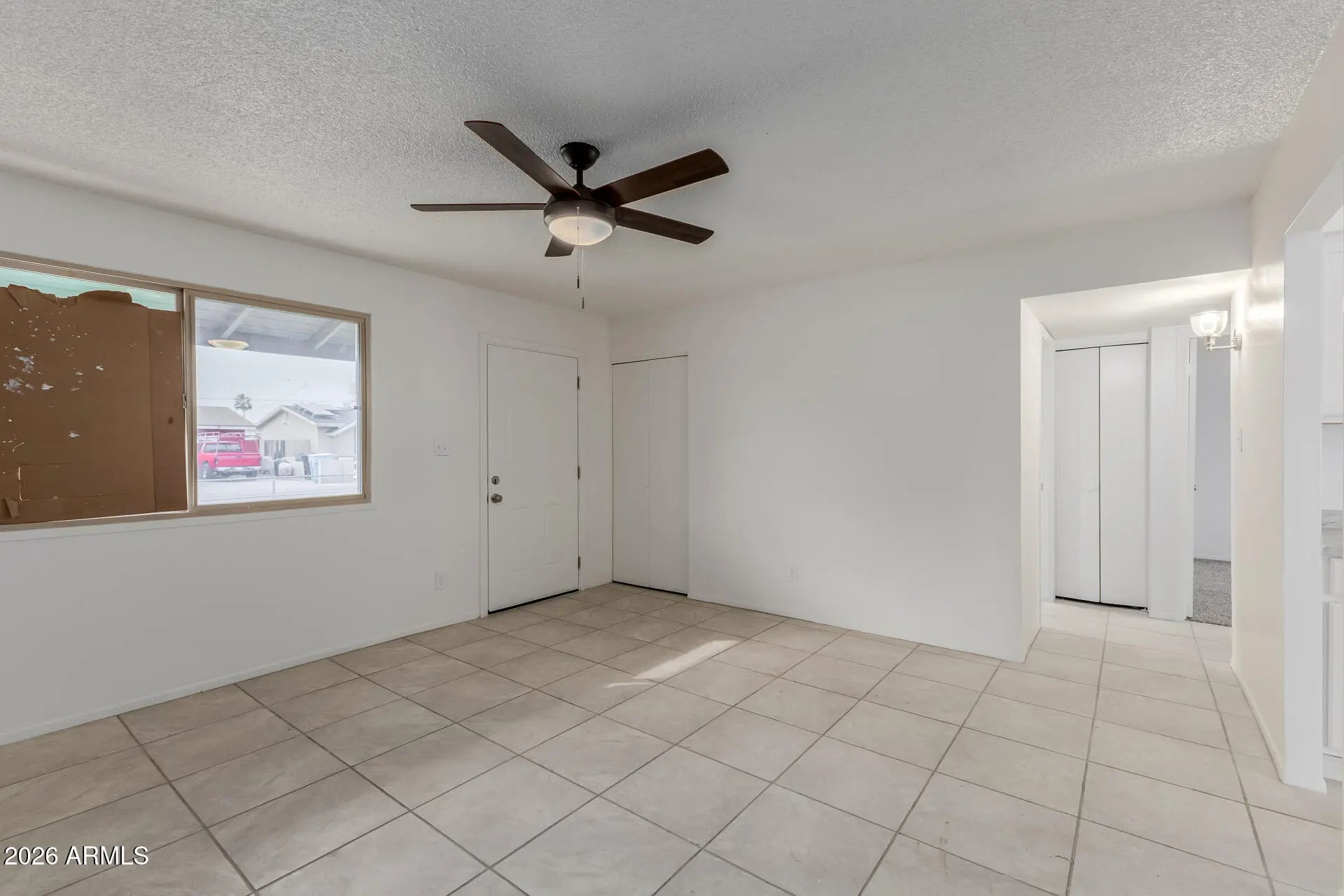 This lovely 2-bedroom, 1-bathroom home is the one for you! Inside, you'll find a spacious living room full of natural light, showcasing tile floors and neutral paint that works great with any decor style. Whip up your signature dishes in the well-appointed kitchen, equipped with ample cabinetry, spacious counters, and an area for the laundry, for added convenience. You'll love the sizable bedrooms, both with closets with mirrored doors. Out back, you have a blank canvas ready for your choice of landscaping and plenty of space for entertainment, including a covered patio! Add your personal touch and create your perfect oasis! This home is a must-see!