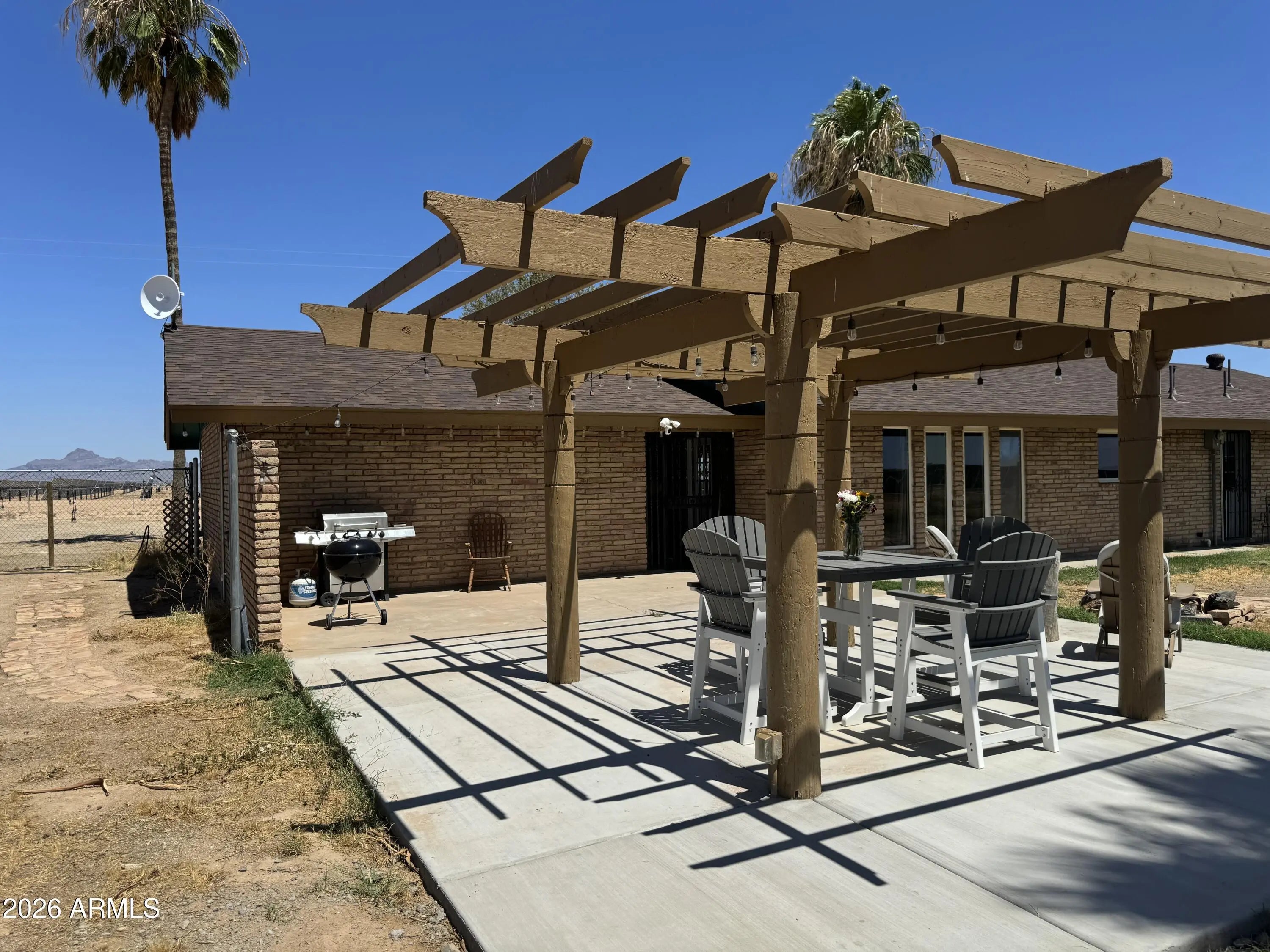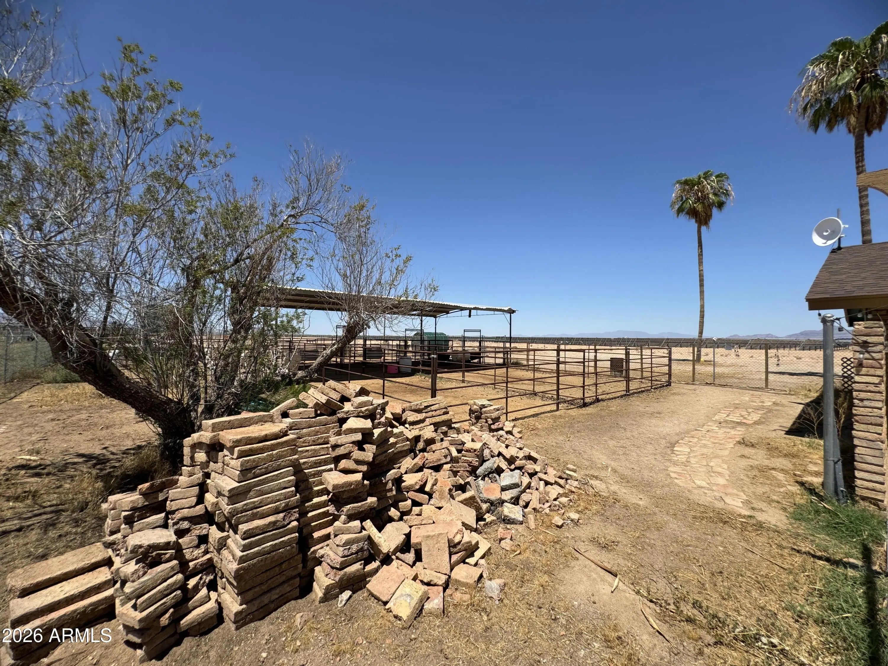 Beautiful updated 3B 2B home on an acre in the quite Harquahala Valley. The most gorgeous mountain views. A horse lovers paradise complete with horse pens and shade. 30 amp RV hookup for guest. 220V hot tub hook up. You can ride out for miles. The home has a unique two way fireplace between the living room and the dining room. The kitchen boast a breakfast bar, wood sealed countertops, newer appliances, reverse osmosis and a pantry. New flooring throughout home. Updated bathrooms with a glass/tile shower. Big laundry room with exit door. Three good sized bedrooms with walk in closets. Private well with 3,000 gallon strorage tank. Newer roof/AC. Bacteria guard salt free three stage filtration system. If you want to live out of town this is a must see home that is priced to sell quick.