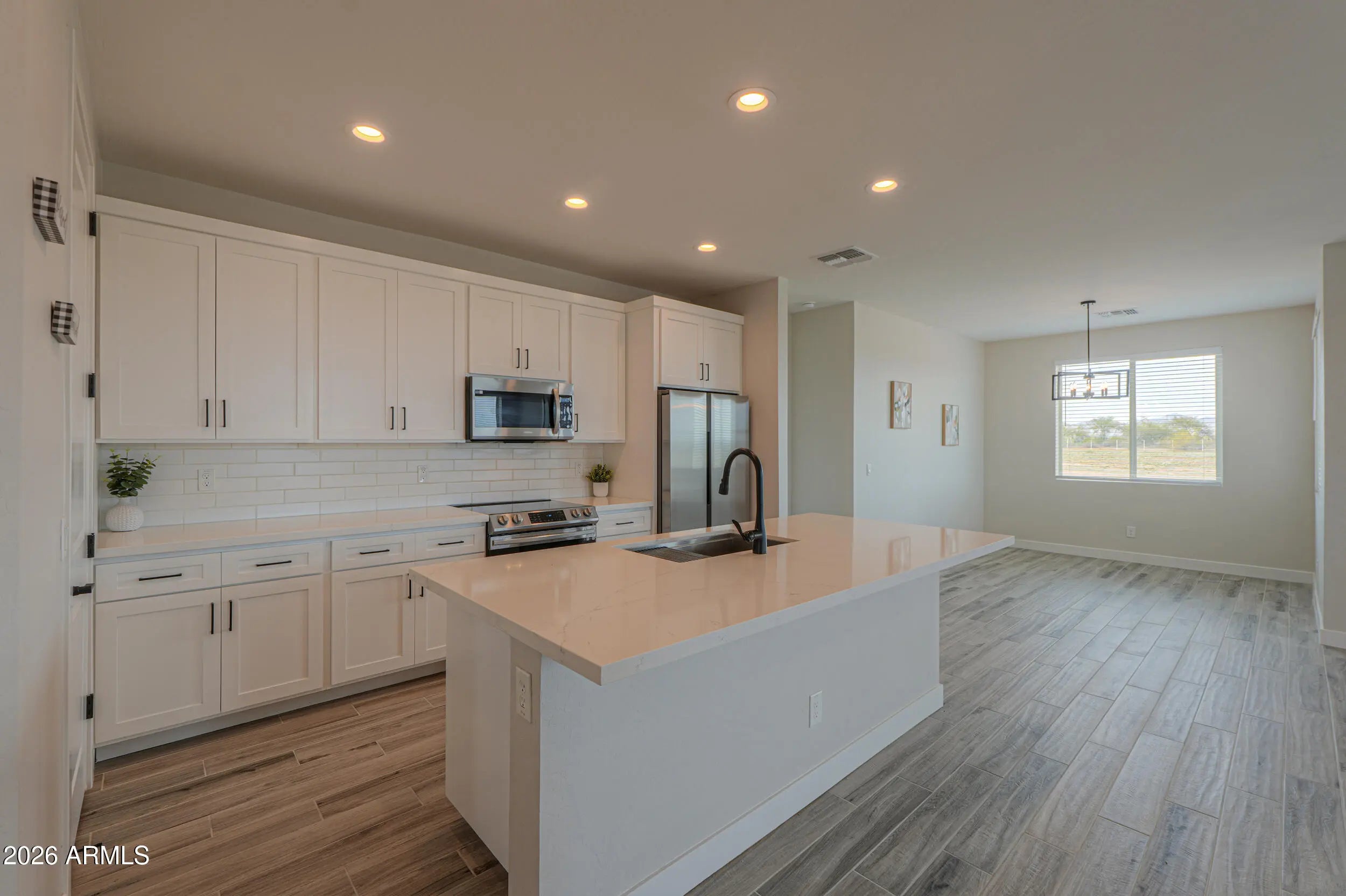 This 2022 built stunning home radiates true pride of ownership & features nearly 1900 sq ft with 4 spacious bedrooms & 2 full baths! Upgrades include entertainer's kitchen with white cabinetry, Quartz countertops, SS appliances & island overlooking the great room, gorgeous wood plank tile flooring throughout, modern fixtures, open concept floor plan, 9 foot ceilings, 8 foot doors, 2x6 construction, spray foam insulation, fully sheathed exterior & more! Palatial master bedroom features walk-in closet & ensuite with dual sinks & large walk-in shower! Enjoy the Arizona sunsets on your 3.3 acre lot in Hidden Valley with low maintenance landscaping & 2 car garage! Stunning level lot with perimeter no climb fencing, no HOA & just off paved roads with STUNNING MOUNTAIN VIEWS! USDA Financeable!