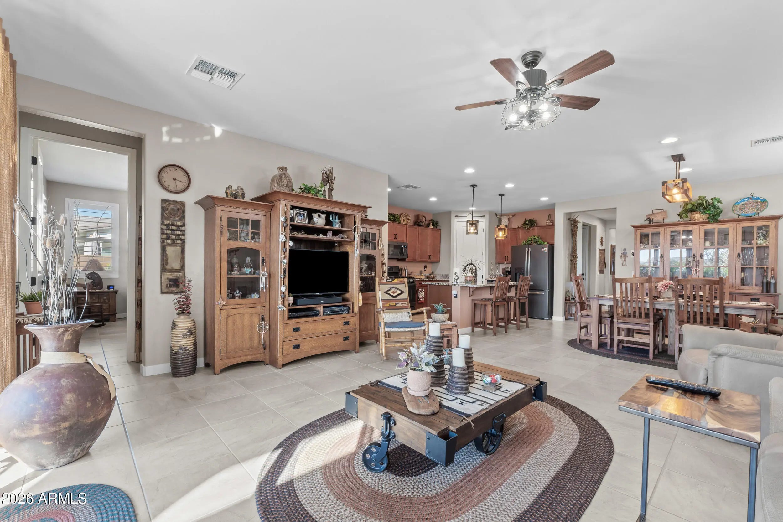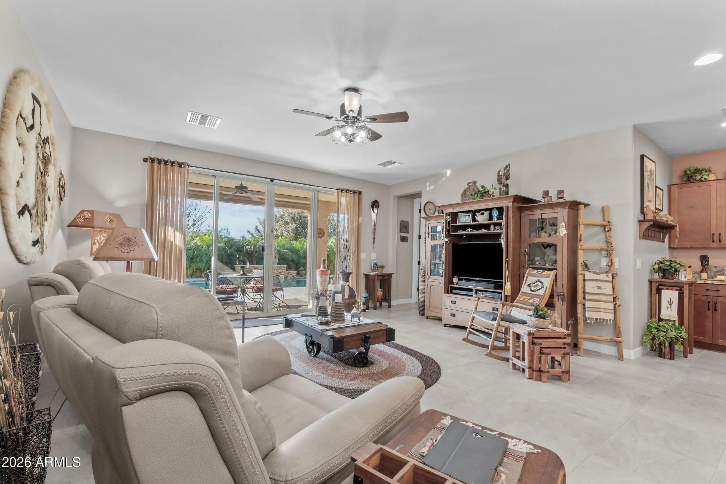 This is one of those homes buyers wait for. From the street, it's clean, well-kept, and inviting. But what truly sets this property apart is the oversized RV garage, a rare and highly sought after feature that instantly opens up possibilities. Whether you have toys, trailers, a workshop, or simply want space most homes can't offer, this is the kind of garage that's almost impossible to find. Inside, the layout is open and functional throughout and a seamless flow from the living area into the kitchen — perfect for everyday living and easy entertaining. The finishes are warm and timeless, creating a space that feels comfortable and move-in ready without trying too hard. Step outside and the home really delivers. The backyard is private, spacious, and thoughtfully designed highlighted by a beautiful pool, covered patio, and plenty of room to relax or entertain. It feels like a true extension of the home, ideal for quiet mornings, weekend gatherings, and Arizona evenings spent outdoors. Homes with RV garages, usable layouts, and resort-style backyards don't come along often especially in this condition. This one needs to be seen in person to fully appreciate it.