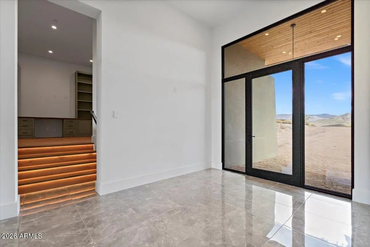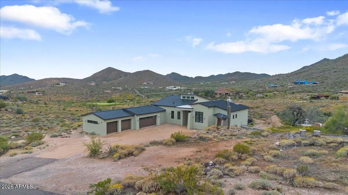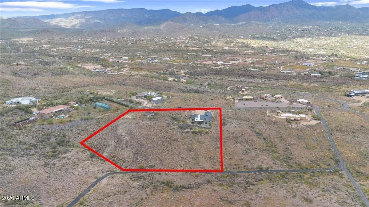 Five private acres in the foothills of Cave Creek offering exceptional space, privacy, and expansive desert views. This newly built 4 bed, 3.5 bath home is livable today with a Certificate of Occupancy in place, while offering meaningful opportunities for the next owner to bring their vision to life. A flexible layout features a split primary suite along with a separate basement unit for guests, extended family or office add an additional 526 sq. ft. of living space. The five-acre setting offers potential for horses or a custom desert retreat and provides a quiet, open environment with mountain and hillside views just minutes from town. A rare opportunity to step into a livable home while shaping the remaining elements and land to reflect your lifestyle and long-term vision Day-to-day, the setting is defined by stillness and open space, with minimal activity beyond natural desert sounds such as wind and birds. Neighboring homes are visible at a distance, with large parcels throughout the area creating privacy through space rather than fencing. Access to town is approximately ten minutes via a combination of paved and dirt roads, offering a quiet foothills environment while remaining conveniently close to the dining, shopping, and community of Cave Creek. The property is served by electric, a shared well, and a newly installed septic system. The land is primarily natural desert with a mix of gentle slopes and surrounding hillside. The immediate homesite and driveway area are relatively flat, and portions of the property may lend themselves to future outdoor living areas or site improvements, subject to buyer verification. There is no notable road noise, and vehicle traffic in the area is minimal, reinforcing the quiet, open character of the setting. The home is livable today with a Certificate of Occupancy in place and is being offered as-is. Certain aspects of the home and property remain ready for completion or refinement, providing flexibility for a buyer who values land, privacy, and the opportunity to shape remaining elements over time.