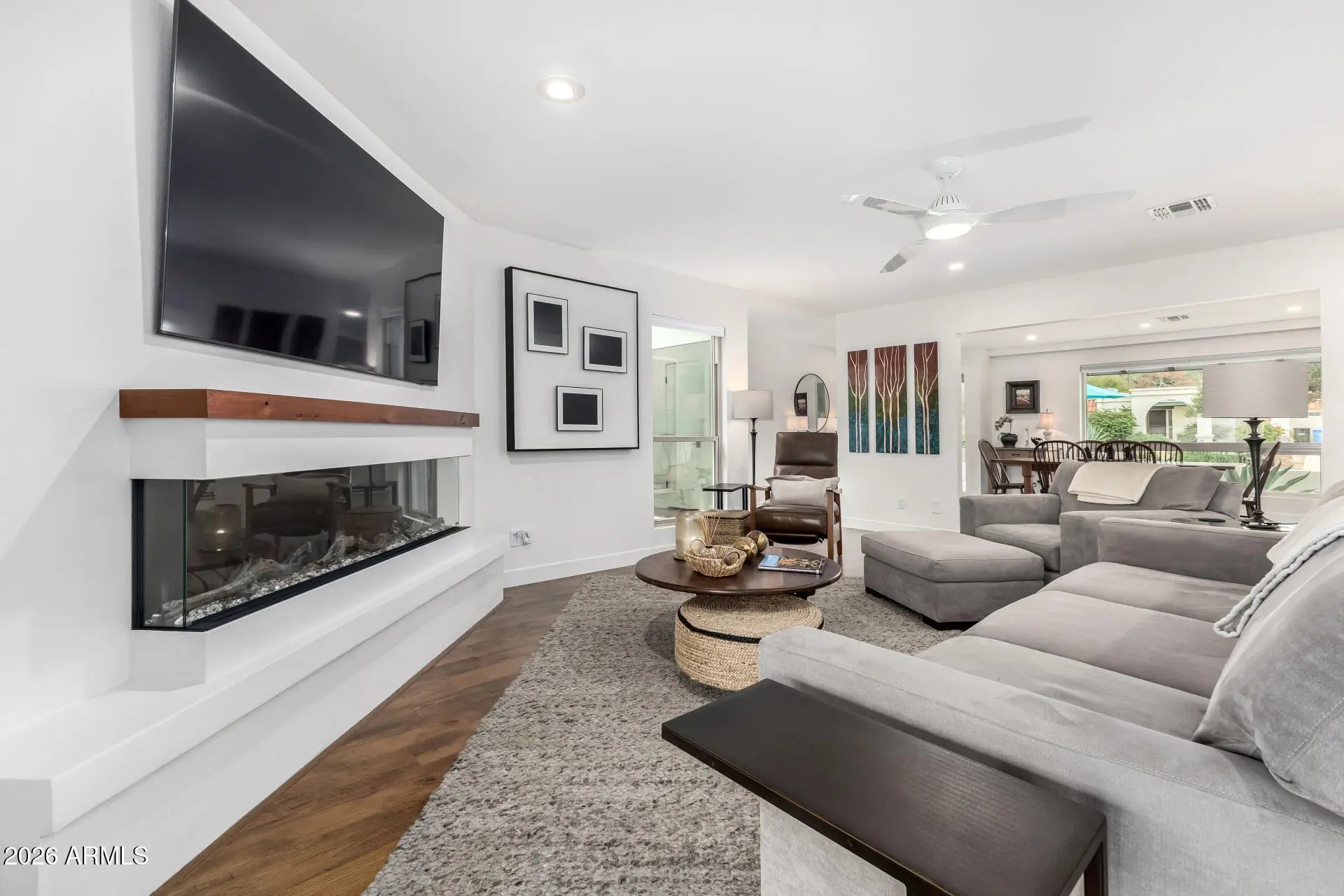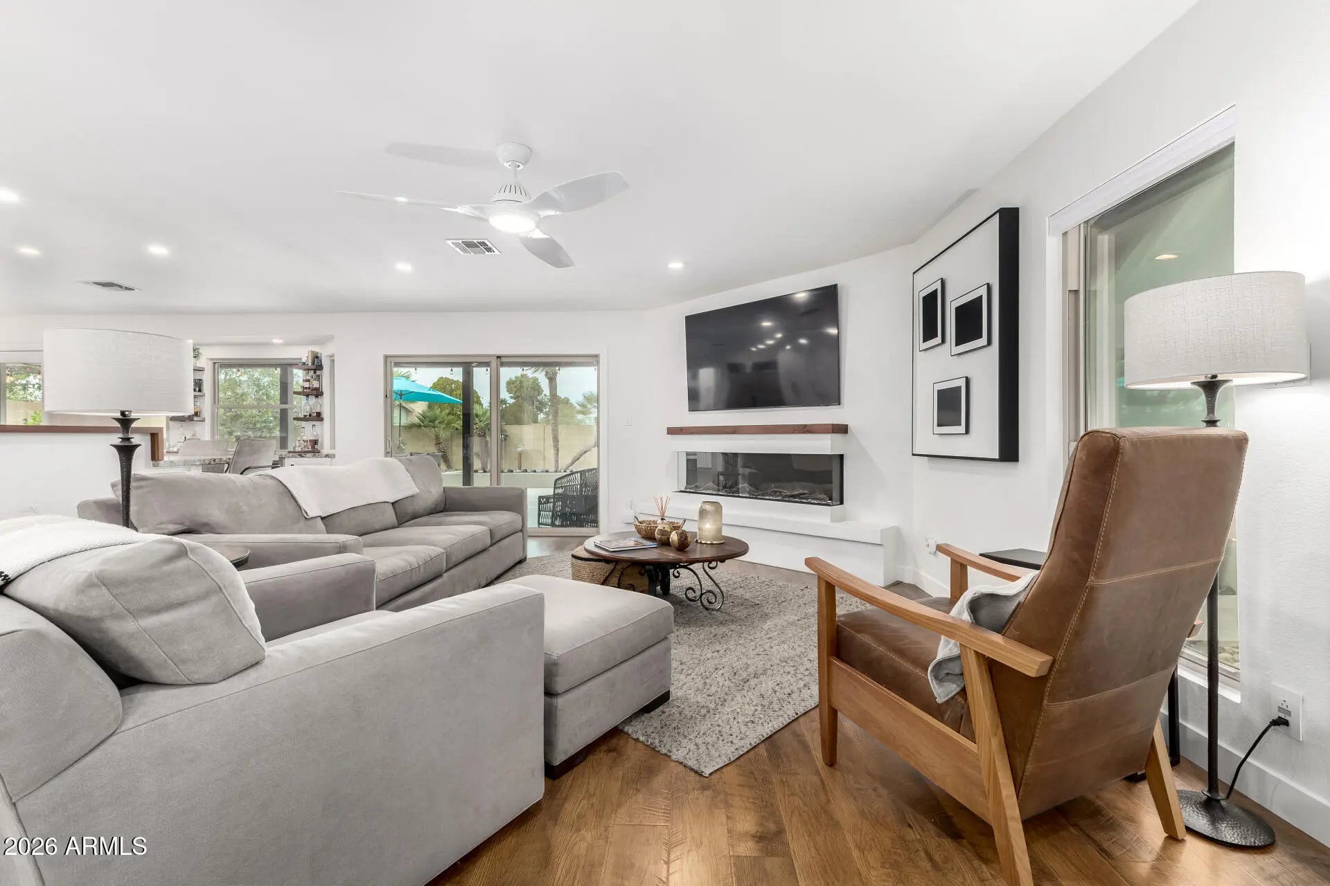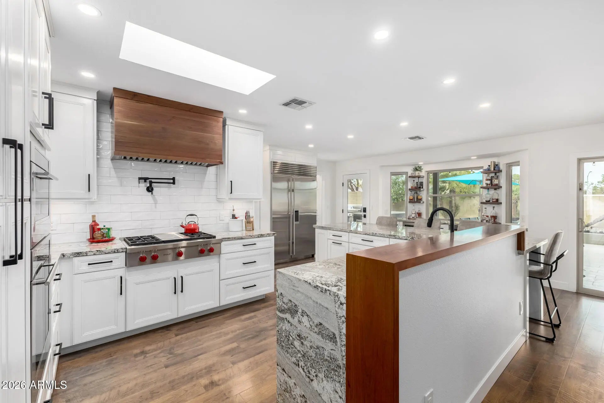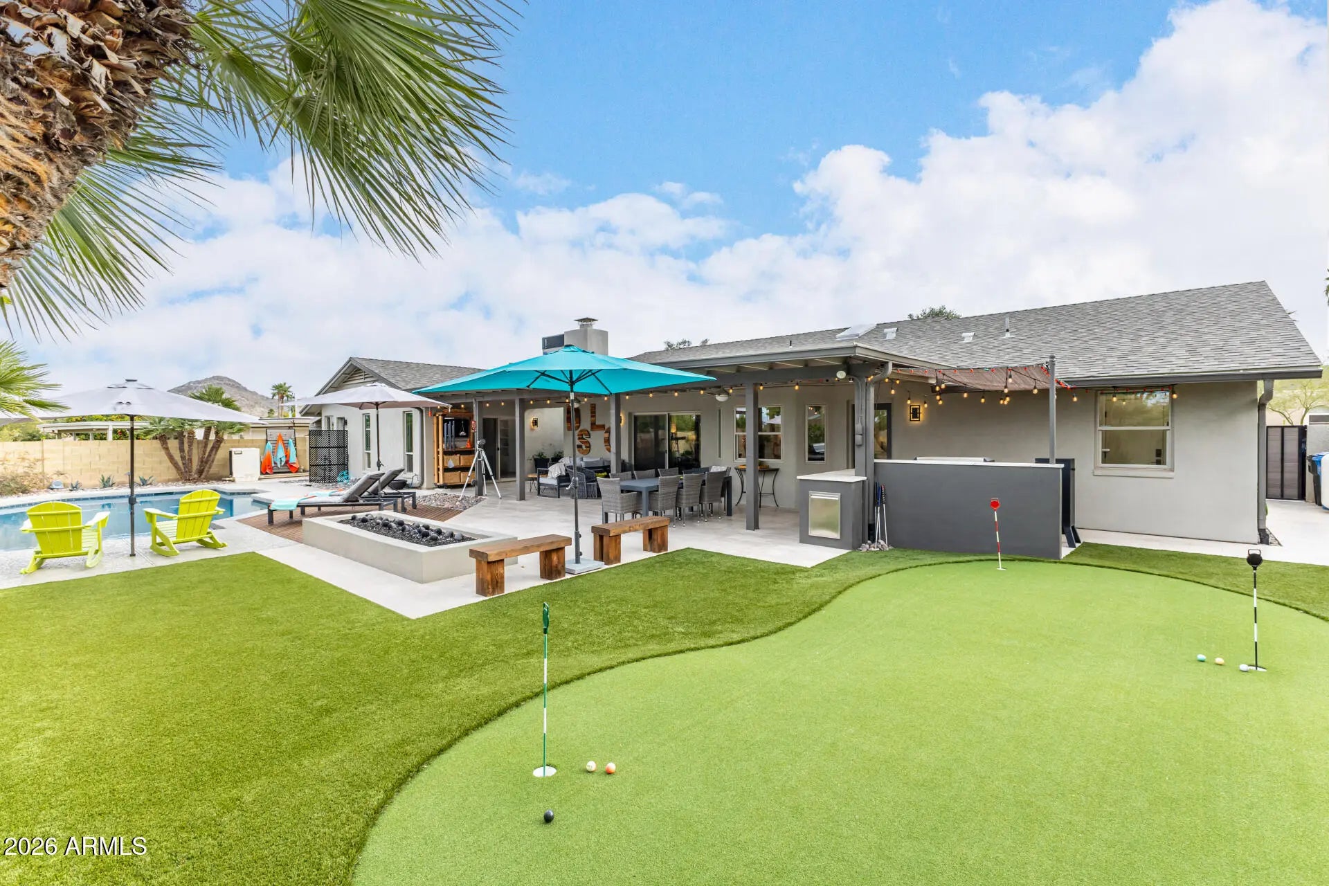 This 4-bedroom plus office, 2 bath home has been thoughtfully updated (completed in 2024). Observe the proximity and views of the Phoenix Mountain New paver driveway with an extra parking space starts your tour. The front courtyard allows for sunset views with neighbors and friends. Chef's kitchen with Wolf/Sub-Zero/Cove Appliances, beverage center and a large eat-at island. The Primary Bedroom has dual access to the covered patio and pool, updated bath and closet., built-in cabinetry includes a TV, fireplace and more storage. 3 generous bedrooms, each with sizable closets. The backyard features a completely renovated saltwater pool with heat pump heater (2021), expansive travertine covered patio, custom 12' x 4' custom fire pit, grill area & putting green.