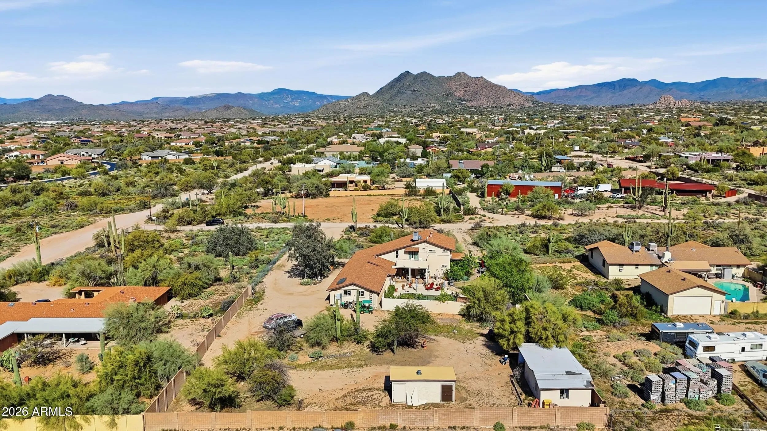 Located in the desirable Lone Mountain area of Cave Creek, this home offers the perfect blend of desert charm, privacy and functionality. Situated on over an acre, this 3 Bed, 2 Bath home with 2900 SF provides stunning mountain views, room to roam, an no HOA. This home features vaulted ceilings, an open living area, and an eat in kitchen with island breakfast bar. Step outside to your own private desert retreat featuring a sparkling pool, covered patio, and expansive backyard with natural desert landscaping and breathtaking mountain views. There is space for RV parking and abundant storage. Additional highlights include a circular driveway and a spacious 2 car garage with plenty of room for storage. Minutes from shopping, dining, and outdoor recreation, this property offers it all.