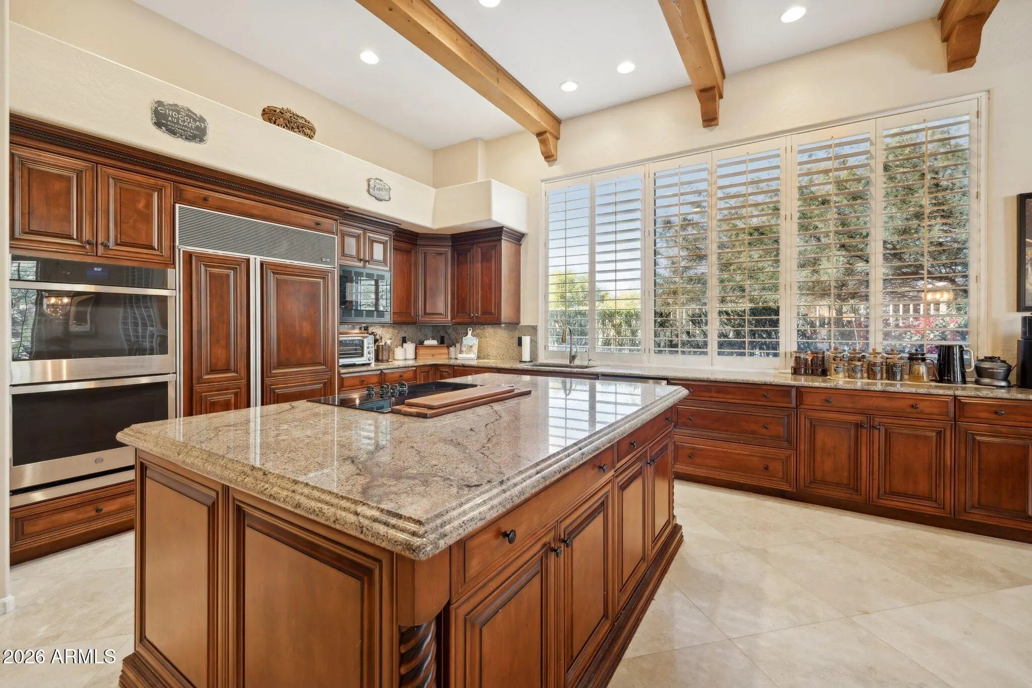AGGRESSIVELY PRICED FOR FAST SALE and to reflect a light cosmetic remodel (paint, fixtures & flooring) at a compelling price point! Designed for QUALITY FMLY LIVING & ENTERTAINING! Popular SPLIT FLOORPLAN. Extended family room has GAS FIRPL & wood beam ceilings. BEAUTIFUL! Stunning TRAVERTINE floors! WOODEN SHUTTERS! High quality GRANITE & beautiful ALDER WOOD CABINETS with cherry stain. BRIGHT KITCHEN has center island, WINE REFRIG, Double Oven, Sub-Zero & Pantry. Master Retreat with Jetted Tub! PREFERRED N facing bkyd with inviting PEBBLE-TECH POOL & SPA! Lush entertaining back yd has extended covered patio, cozy firepit & Mt views! CHECK THE COMPS! GREAT OPPORTUNITY for your client to customize finishes to their personal style without paying a high premium and BUILD INSTANT EQUITY! Enjoy Soft Water, Reverse Osmosis and Security System. High Demand Scottsdale Schools! Custom Front Security Screen Door to allow cool breeze in winter. This is the best priced home in the neighborhood!
