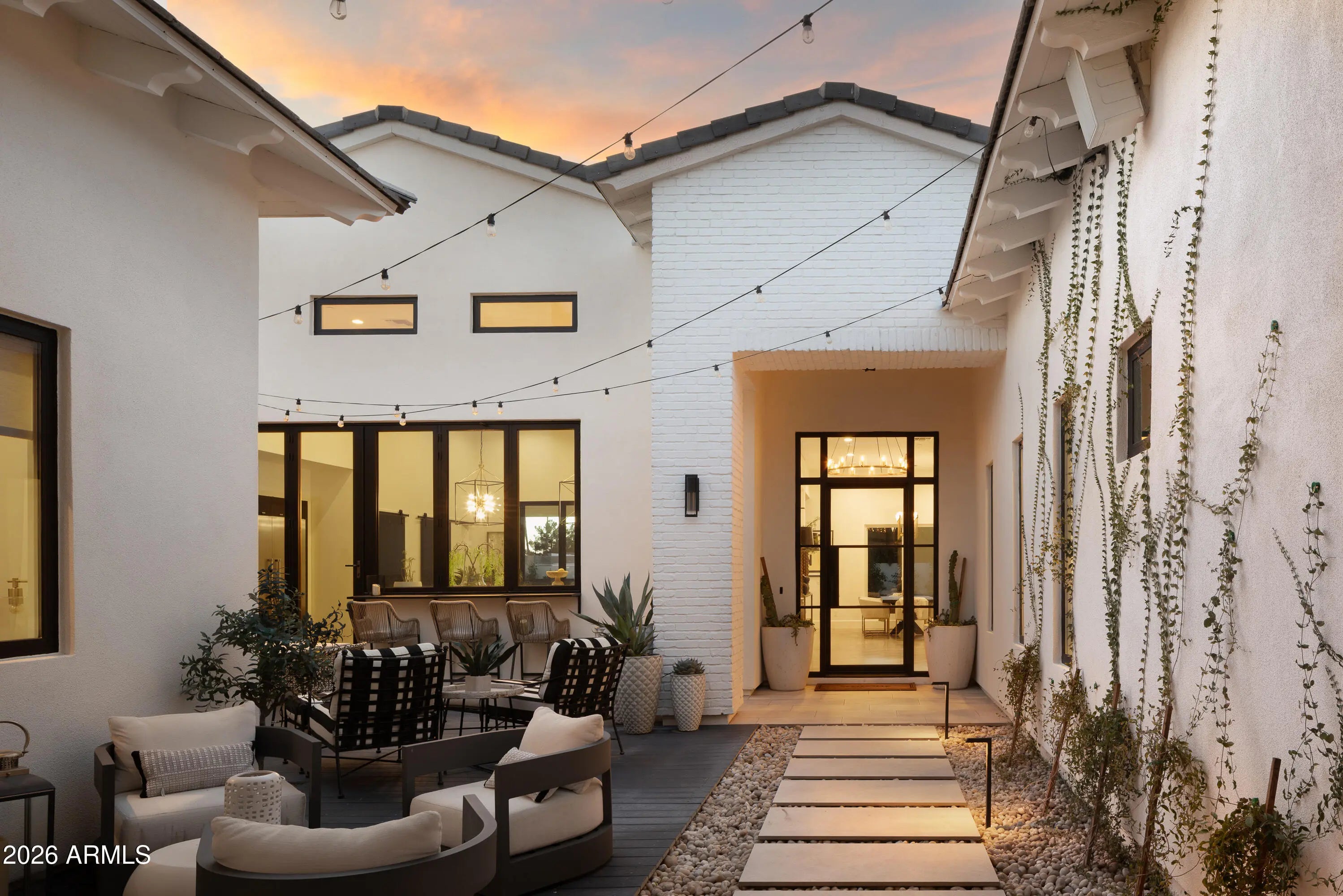 Mediterranean elegance meets resort style living in this exceptional residence. As you enter through a dramatic sliding metal door, you enter a private courtyard, enclosed by the detached 1b/1b casita and main home. The courtyard sets the tone for the refined indoor/outdoor flow you will find throughout the home. Inside, the home offers sophisticated flexibility of 4 bedrooms, an office/gym, a sitting room, wine storage and second living area off the bedroom wing. The spacious primary suite provides a peaceful retreat with generous proportions and privacy. The backyard is a true luxury escape, featuring a large pool, natural grass lawn, a chipping and putting green, and a world‑class padel court imported from Spain—an extraordinary amenity rarely found in residential proper Ample onsite parking ensures effortless entertaining and convenience for guests. A distinctive blend of Mediterranean character, privacy, and premier amenities creates a lifestyle that feels both elevated and effortless.
