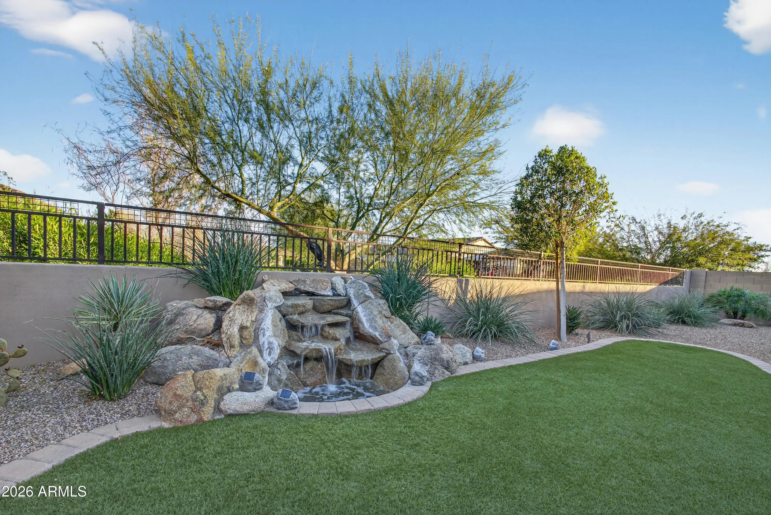 Borders Common Area, Sprinklers In Rear, Sprinklers In Front, Desert Back, Gravel/Stone Back, Synthetic Grass Frnt, Synthetic Grass Back, Auto Timer H2O Front, Auto Timer H2O Back