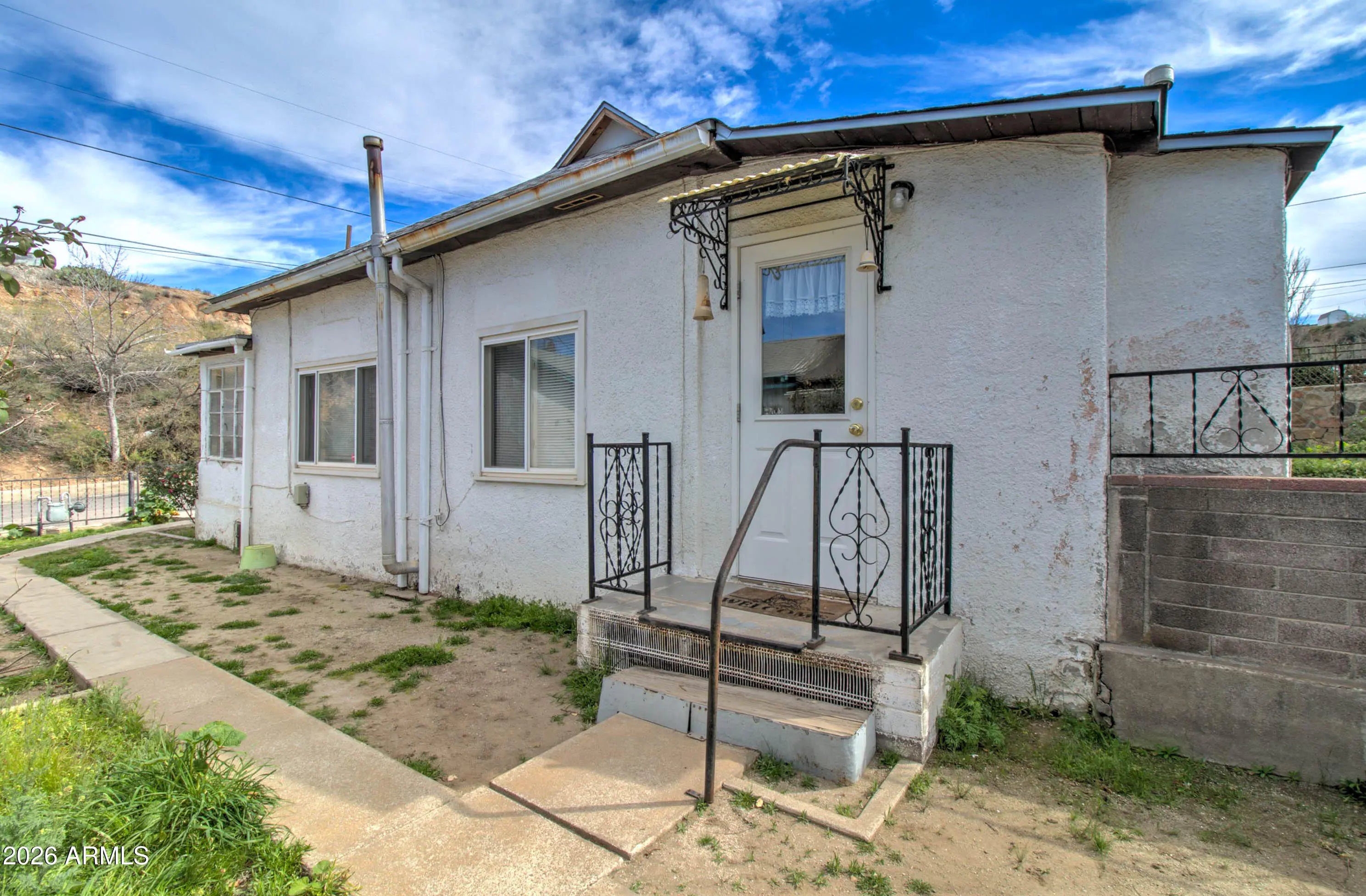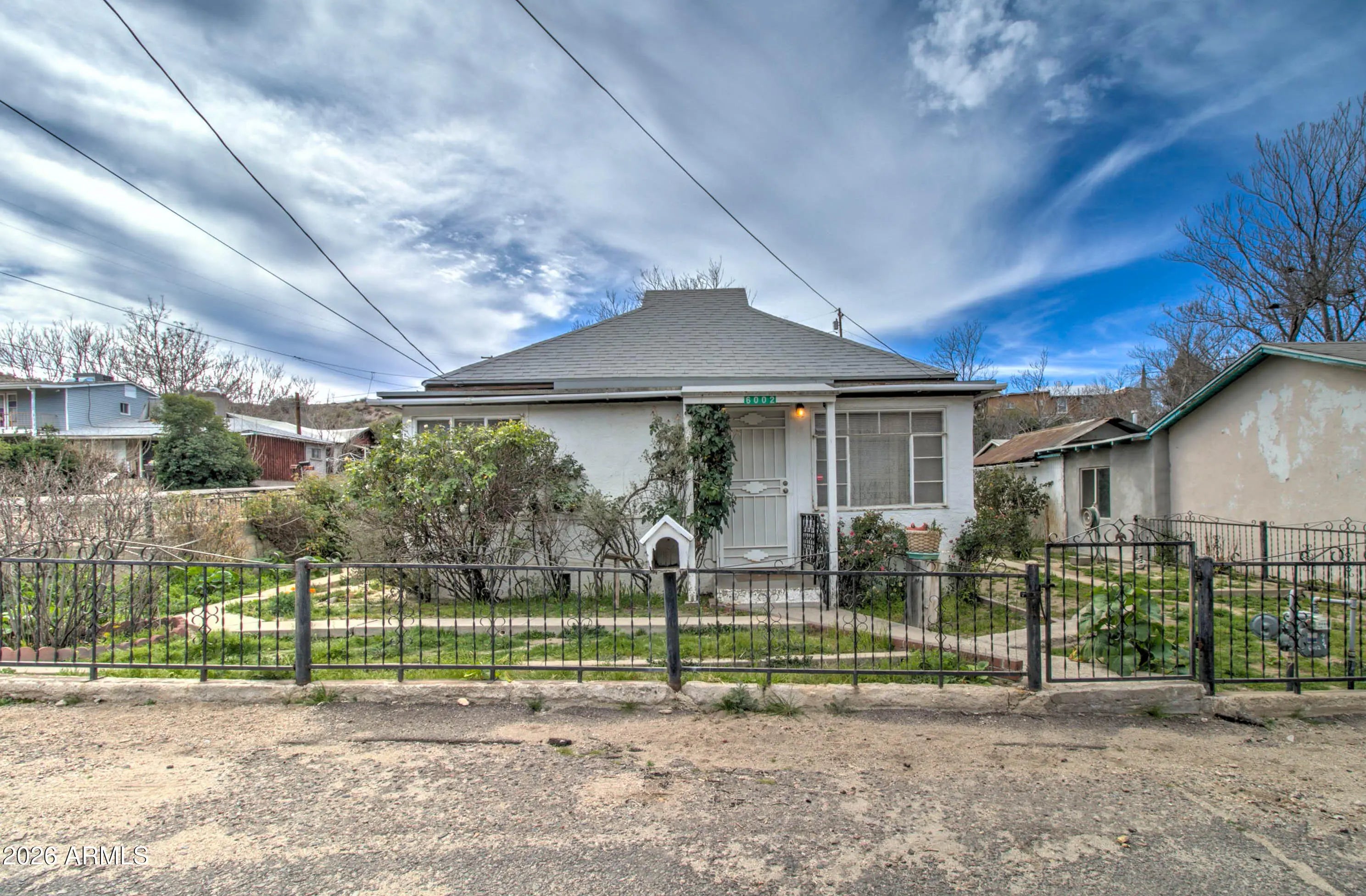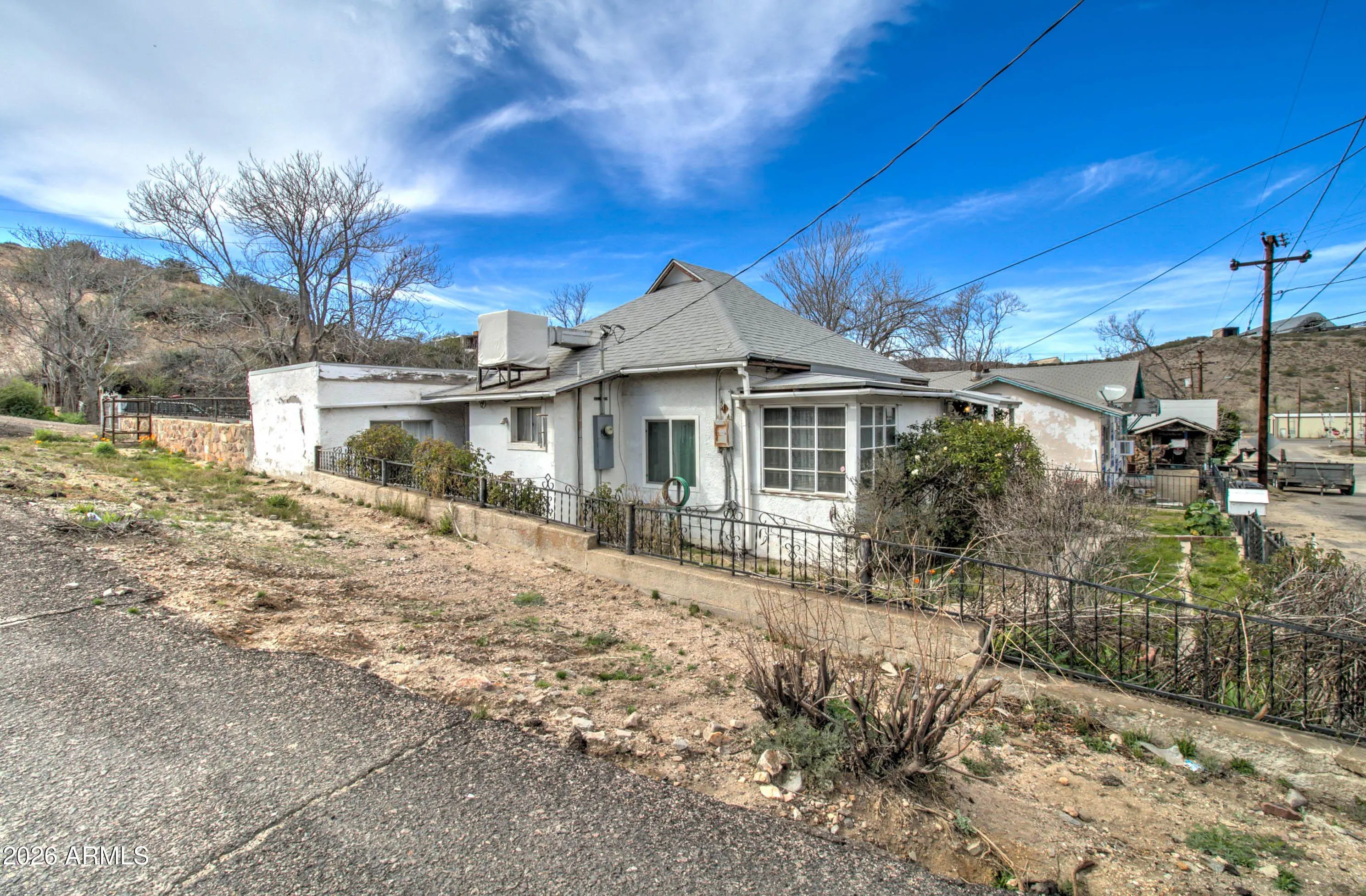 Welcome to this warm and inviting home in Miami, AZ! This well-maintained property is move-in ready for its new owners. The main home offers 2 bedrooms and 2 bathrooms, plus a detached bedroom with a half bath—ideal for guests, extended living, or flexible use. Features include an RV gate, block wall, wrought iron fencing with custom accents, covered patio with a customizable outdoor fireplace, manicured landscaping with rose bushes, covered carport, and a shop. All features convey with the sale.