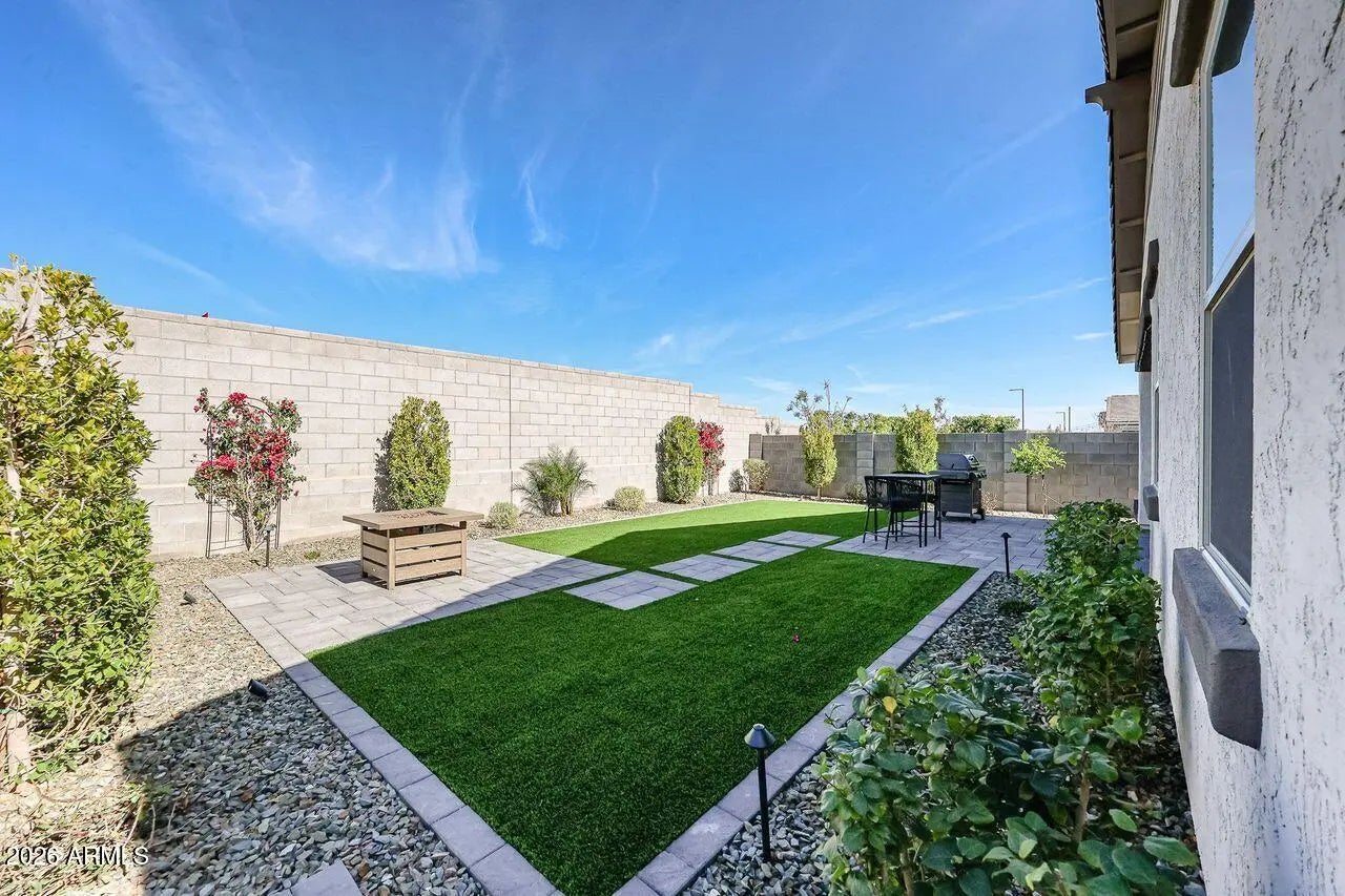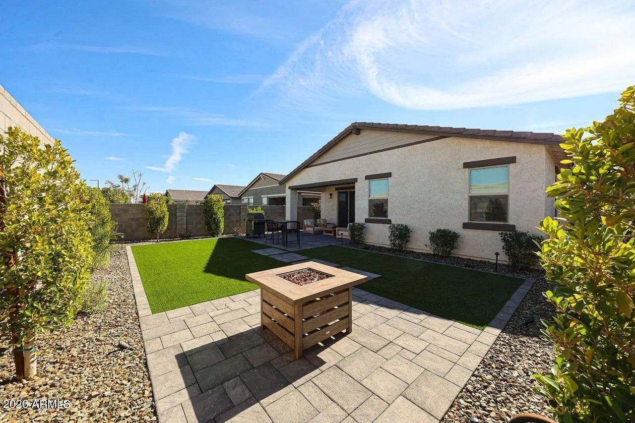 This amazing like-new home shows like a model home. 3 Bedrooms, 3 full baths, and 3 car tandem garage! Home features wood-like tile flooring throughout, with carpet in the bedrooms. Open concept kitchen with grey cabinets, quartz counter tops, stainless steel appliances. Beautifully landscaped back yard with synthetic grass area, large paver patio, and no homes directly behind. Primary suite with double sink vanity, large shower and large walk-in closet. Tandem 3 car garage with service door to back yard. Close proximity to shopping, dining, top-rated Peoria schools and easy freeway connections. This home has it all!