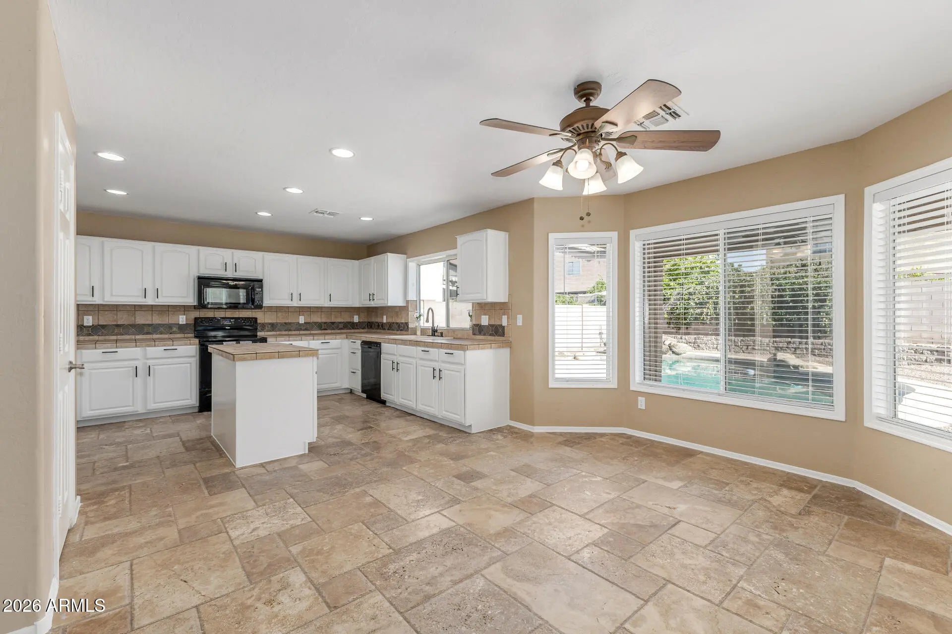 Turn-key three car garage home with an assumable VA Loan, new windows, pool pump, roof, AC, carpet, plumbing fixtures, and updated throughout. Inside you will find a generous living area filled with natural light, showcasing travertine flooring, soaring vaulted ceilings that add an airy feel, and an earthy palette. The impeccable kitchen comes equipped with plentiful storage cabinetry, an island and built-in appliances for a seamless cooking experience. Get a good night's sleep in the main suite, offering a practical walk-in closet and a bathroom with double sinks and a separate shower & tub. The backyard provides year-round entertainment, featuring a covered patio, ample seating space with an easy-care landscape, and a sparkling pool to enjoy sunny days! This home is a must-see!