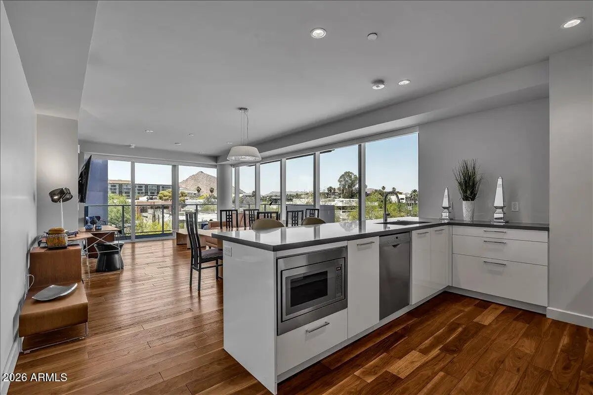 Stunning 3rd floor CORNER unit at the highly sought after ENVY Residences!! This is the epitome of luxurious, modern living in the HEART of Old Town Scottsdale with countless restaurants and shops right at your front door. This beautiful 2bed / 2bath unit has floor to ceiling windows overlooking the city and mountains, automatic shades throughout, an expansive 224 sq. ft. private patio with a gas hook up for outdoor BBQ, gorgeous finishes, split floor plan, and 2 large underground parking spots. ENVY boasts state of the art amenities to include a 4000 sq ft Fitness Facility, Pool Area w/ Heated Infinity Pool/Spa and 200'' TV, glamorous Black Label Lounge, 24 hr concierge/security and so much more. This is a MUST SEE, and wont last long!!