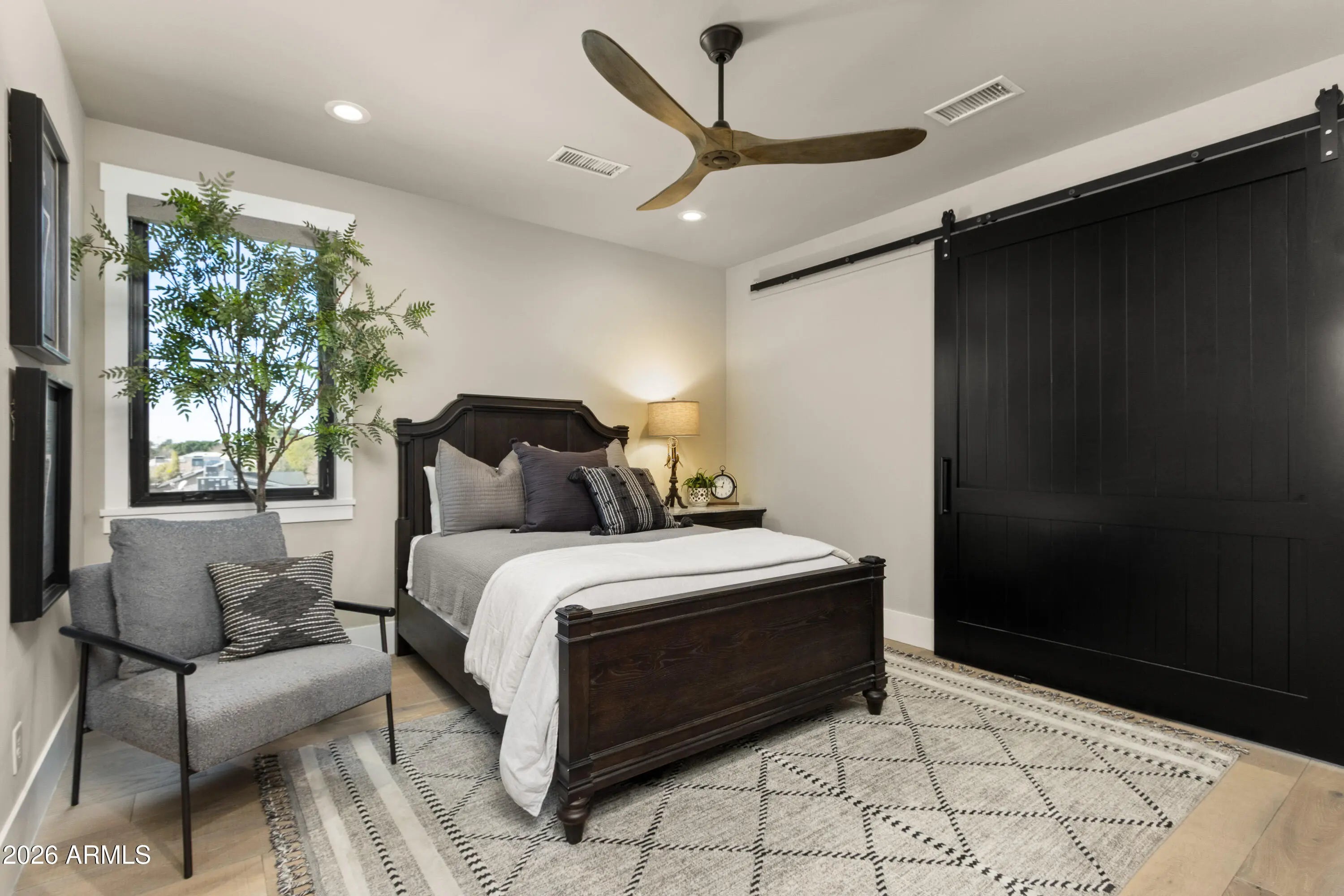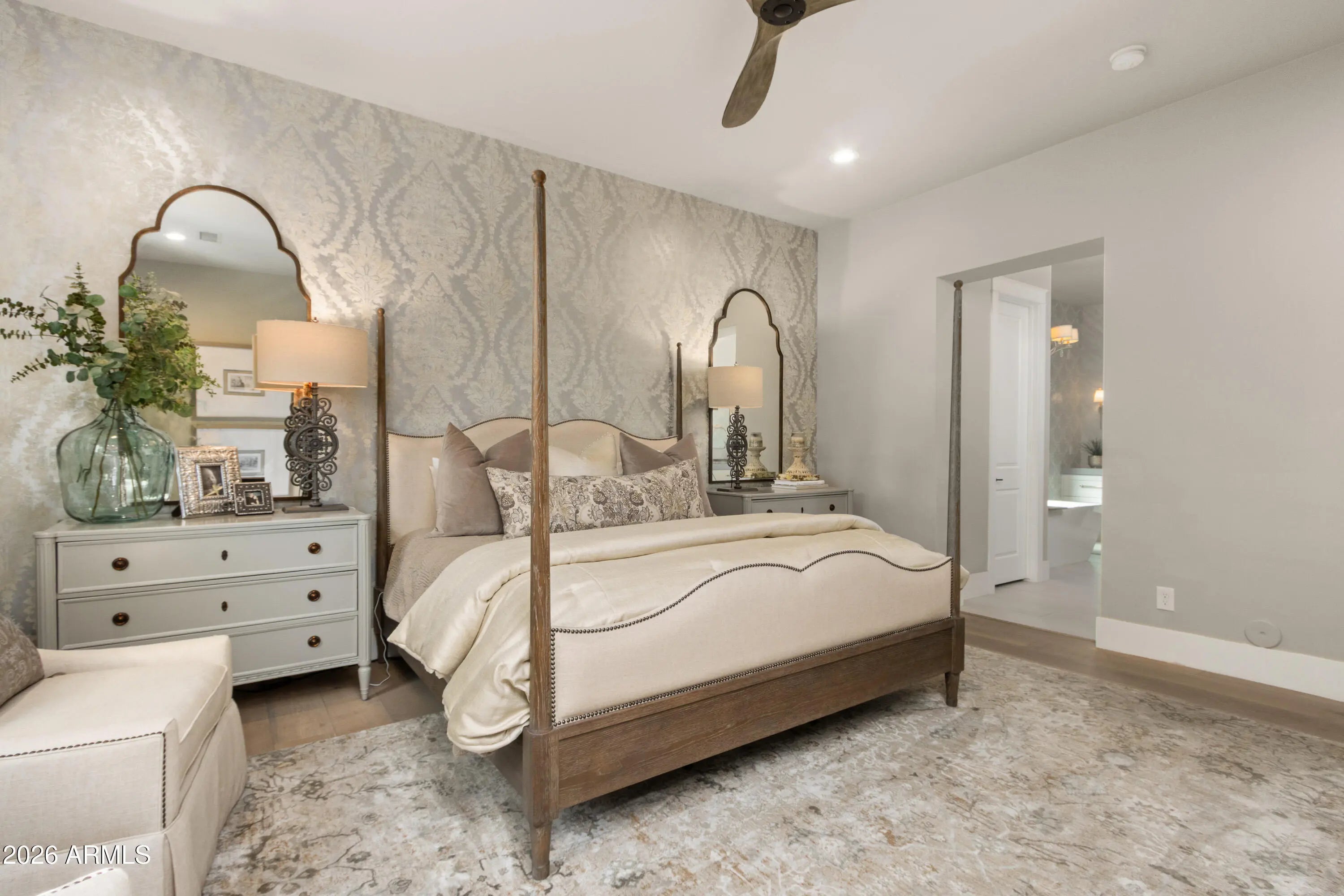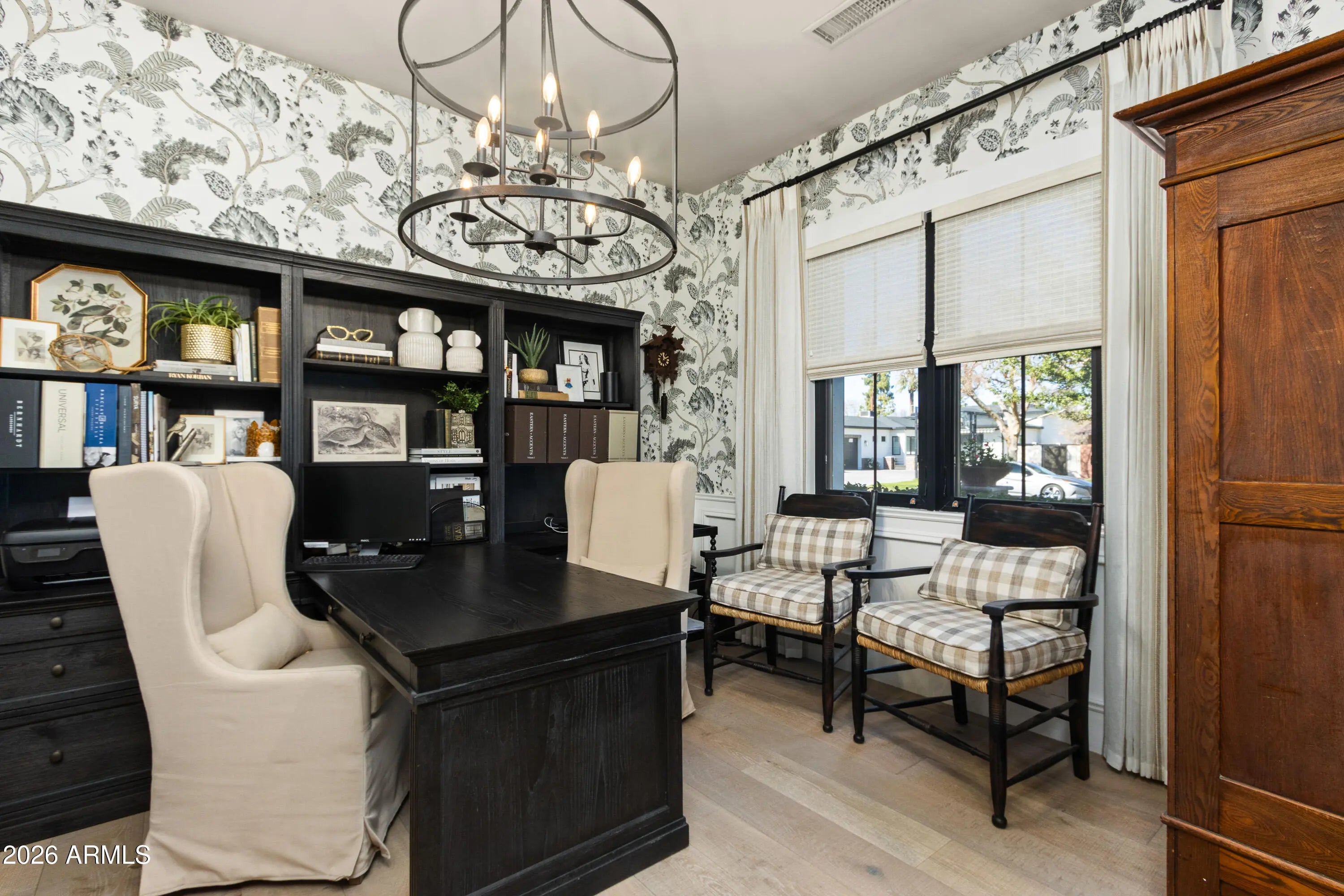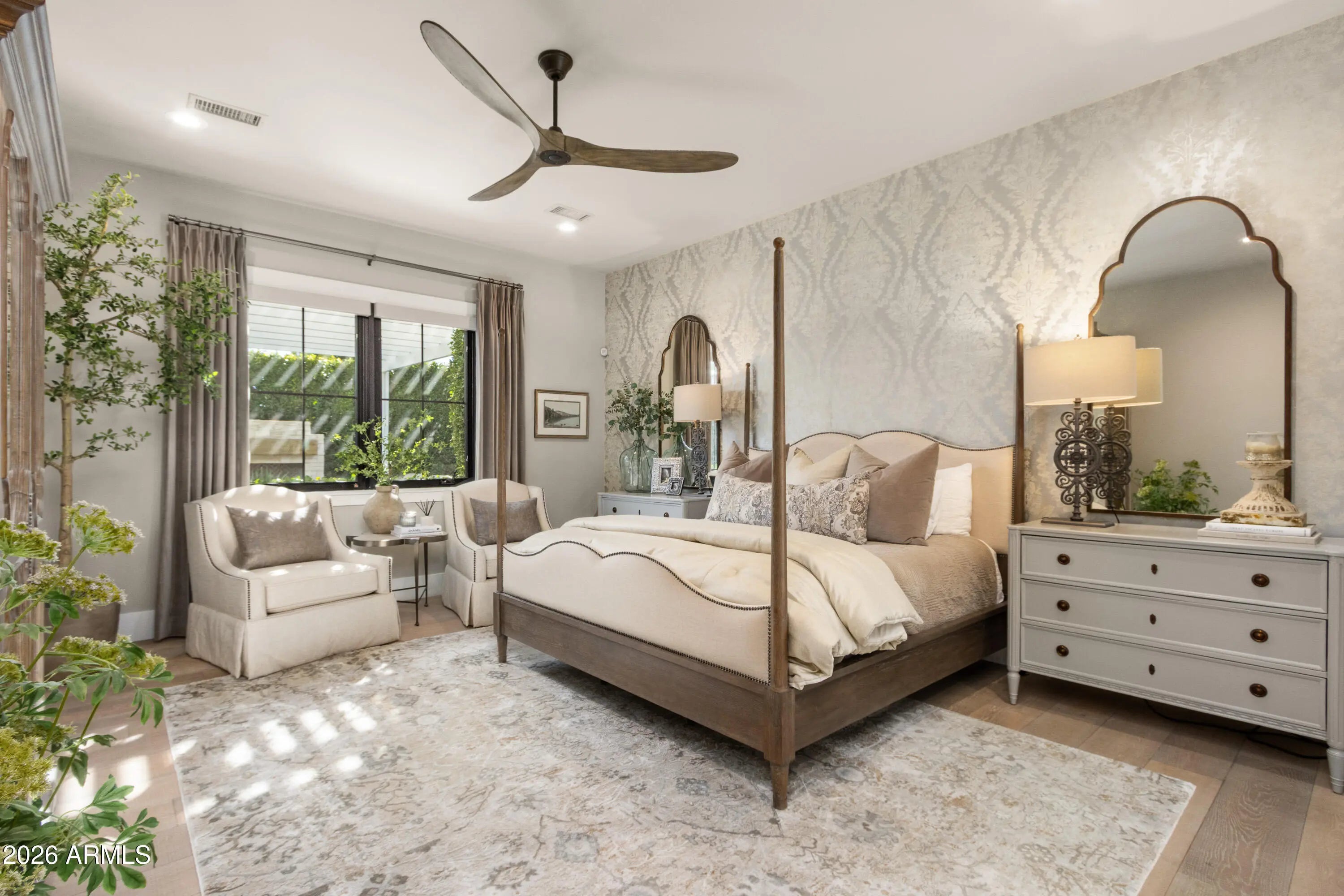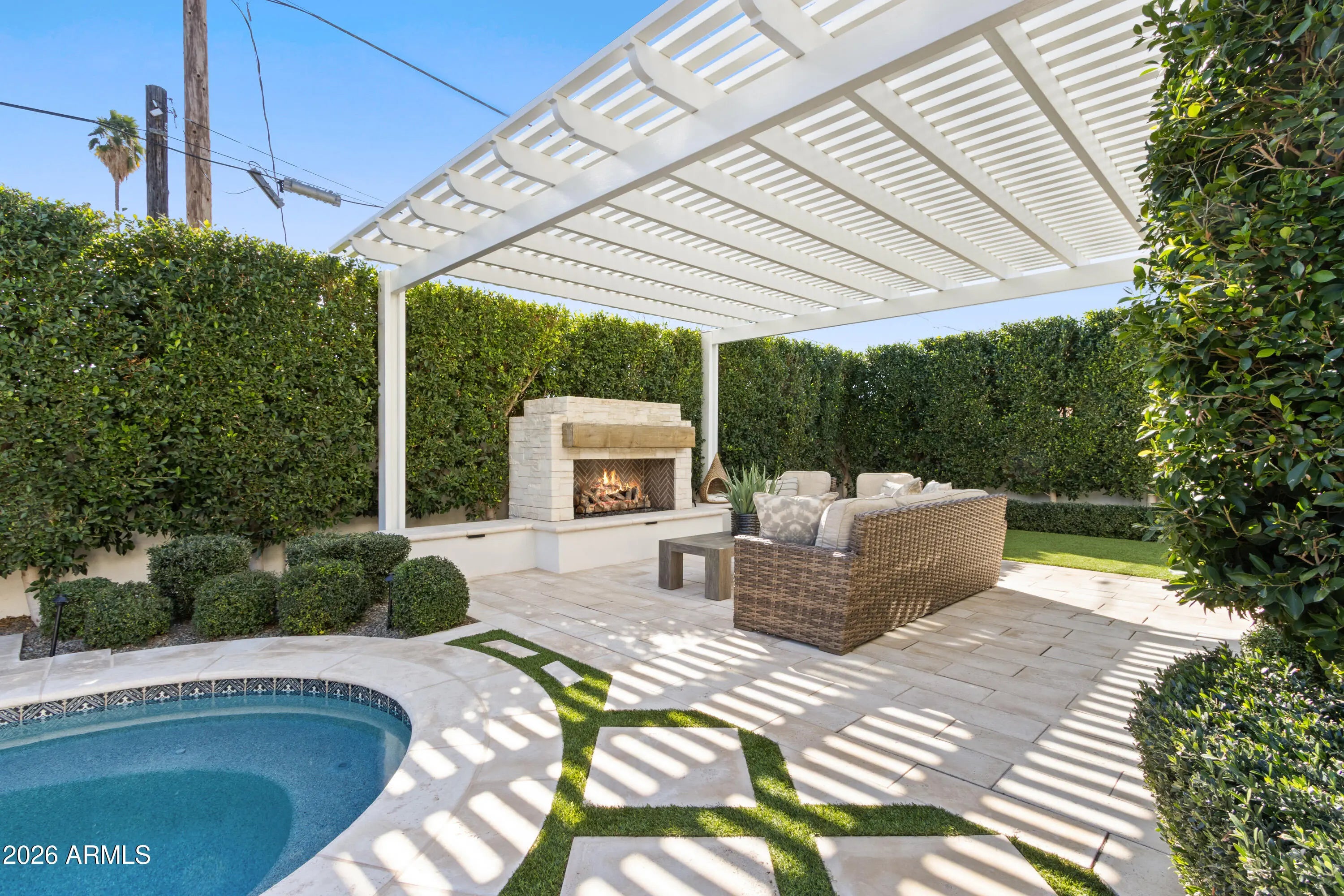 Welcome to this thoughtfully designed home nestled in one of Central Phoenix's most desirable neighborhoods. Blending timeless style with modern comfort, this gorgeous residence has been curated with a designer's eye where every detail feels intentional, elevated, and inviting. The home offers 4255 square feet of living space with five ensuite bedrooms, all with walk-in closets, including a primary bedroom conveniently located downstairs. The interior showcases warm textures, custom details, and carefully selected high end finishes that create a sense of luxury throughout. From wainscoting and upgraded lighting to wallcoverings, custom window treatments, electronic blinds, elegant stone & tile, wood floors, along with Andersen doors and windows. These are just a few of the details not to overlook. The upgraded kitchen features quartz counters, Sub-Zero refrigerator, Asko dishwasher, Wolf double ovens, and a gas range. Additional highlights include a pot filler, walk in pantry, and a beverage center. The primary suite and bathroom are nothing short of spectacular, boasting spa inspired finishes, elegant stone surfaces, a spacious walk in shower, a soaking tub, and the convenience of a private washer and dryer. Upstairs, you will find a generous bonus or game room conveniently located near four additional bedrooms and a dedicated laundry room. Step outside to a private backyard designed for resort style living. A covered patio, built-in BBQ, ramada, gas fireplace, and beautifully designed pool set the stage for entertaining or relaxing in tranquility. Travertine pavers with synthetic grass inlay add subtle elegance and visual interest. Additional upgrades include 8 outdoor security cameras, an indoor security system, soft water, RO system, three fireplaces, Sonos sound system, epoxy garage floors, garage cabinets, EV charger, oversized shed, and an RV gate.