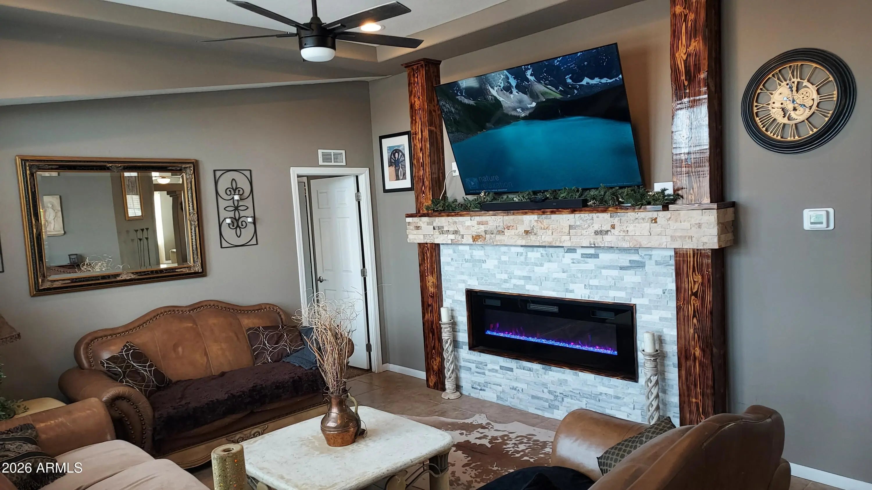 Not only updated but upgraded! Beautifully remodeled 3 bed, 2 bath, den/office, 2.31 AC. completely fenced and cross fenced, Lots of new stuff in the last year, New front patio cover with 120'' tv screen and fire table, New 12x36 covered back deck, Hot tub, New fireplace in back yard, pool, New fireplace w/75'' TV wall in Family room, new low maintenance landscaping, New interior and exterior paint, new fireplace w/43'' tv wall in the master bedroom, Well plumbing redone, Roof replaced in 2020, HVAC replaced in 2021, Water heater replaced in 2024, Tile/ carpet/ laminate flooring, Both bathrooms remodeled, New appliances in 2025, Chicken coop, Fire pit in front, Garden area, Comes with a 30' RV Man cave w/ new fridge, On demand hot water,2 AC's, heater, Lots of room for your 4 legged friend Build a shop, garage, Etc. 2 minutes from miles of open land to trail ride or take out the atv/utv. About 15 minutes out of town away from all the noise, traffic. 12x20 Shed included, Beautiful mountain views and fresh air! Owner Agent