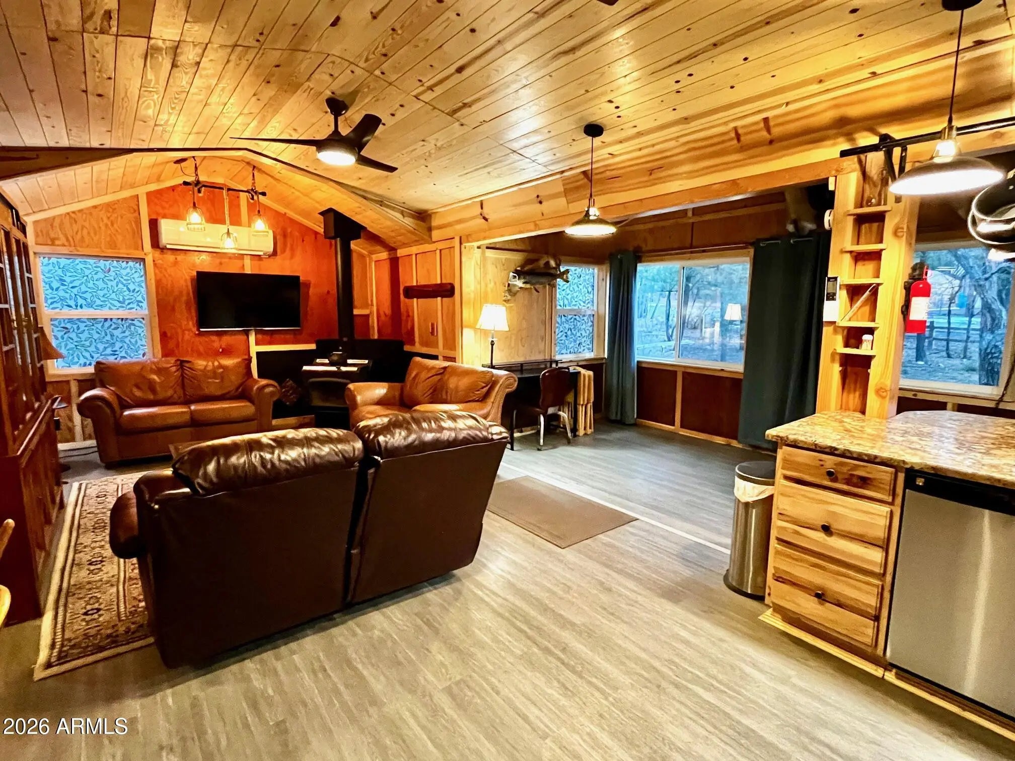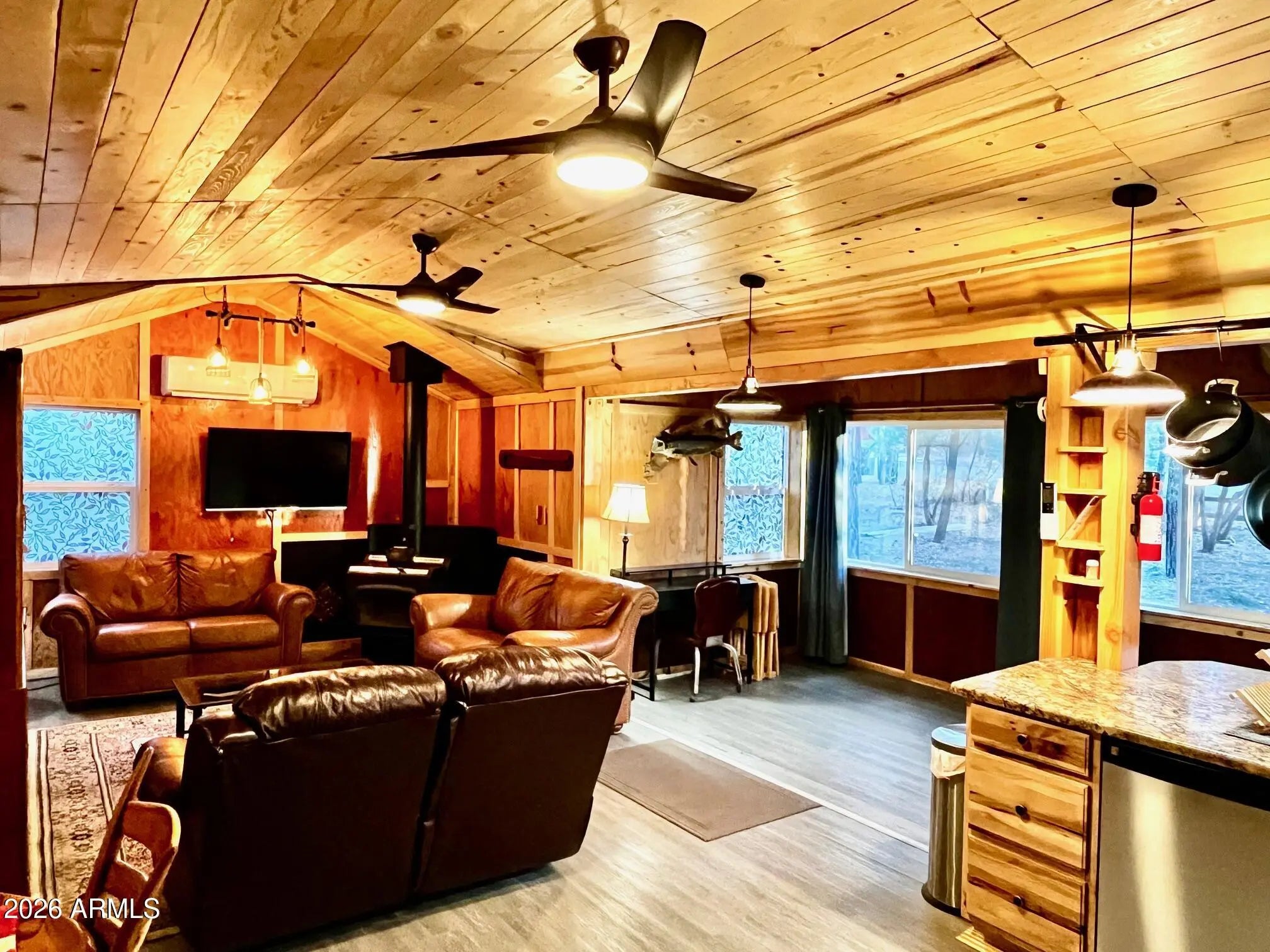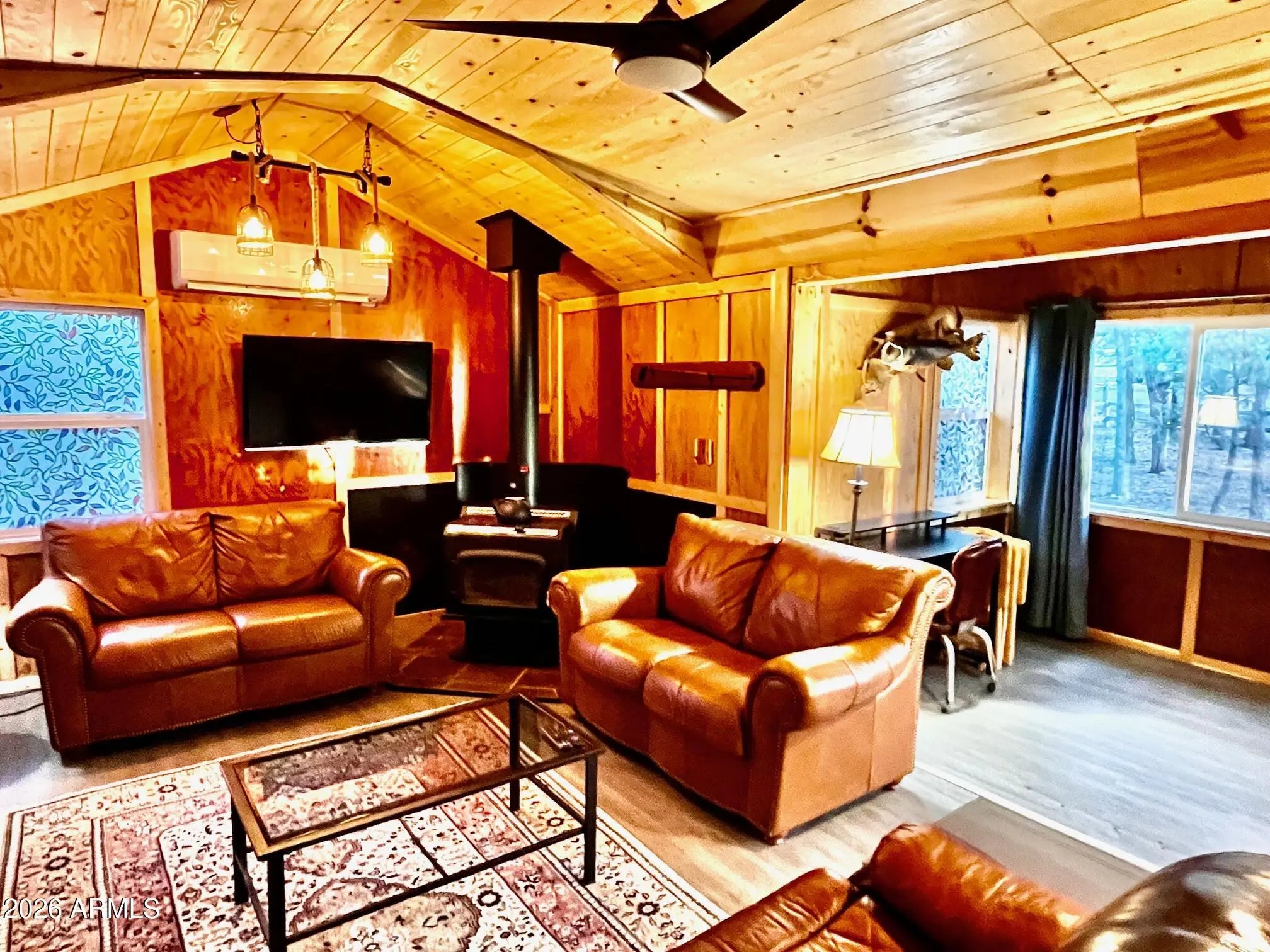 VIEWS VIEWS VIEWS! This stunning home is located on 2 lots at the end of the subdivision on a hill overlooking a valley below. 5-minute walk to Woodland Lake. You'll love the feeling of space, outside living areas and the well-maintained feel of this cozy, cabin-like home! The rear deck area is the perfect location to enjoy those beautiful sunsets or dinner with friends. Multiple storage sheds are located on the property for all of your hobbies and extra gear. The sheds and furnishings convey with the home. The woodburning stove and the forced air/AC systems make this the perfect, year-round retreat. It's perfect for your personal escape or as a short-term rental. You do not want to miss this home!