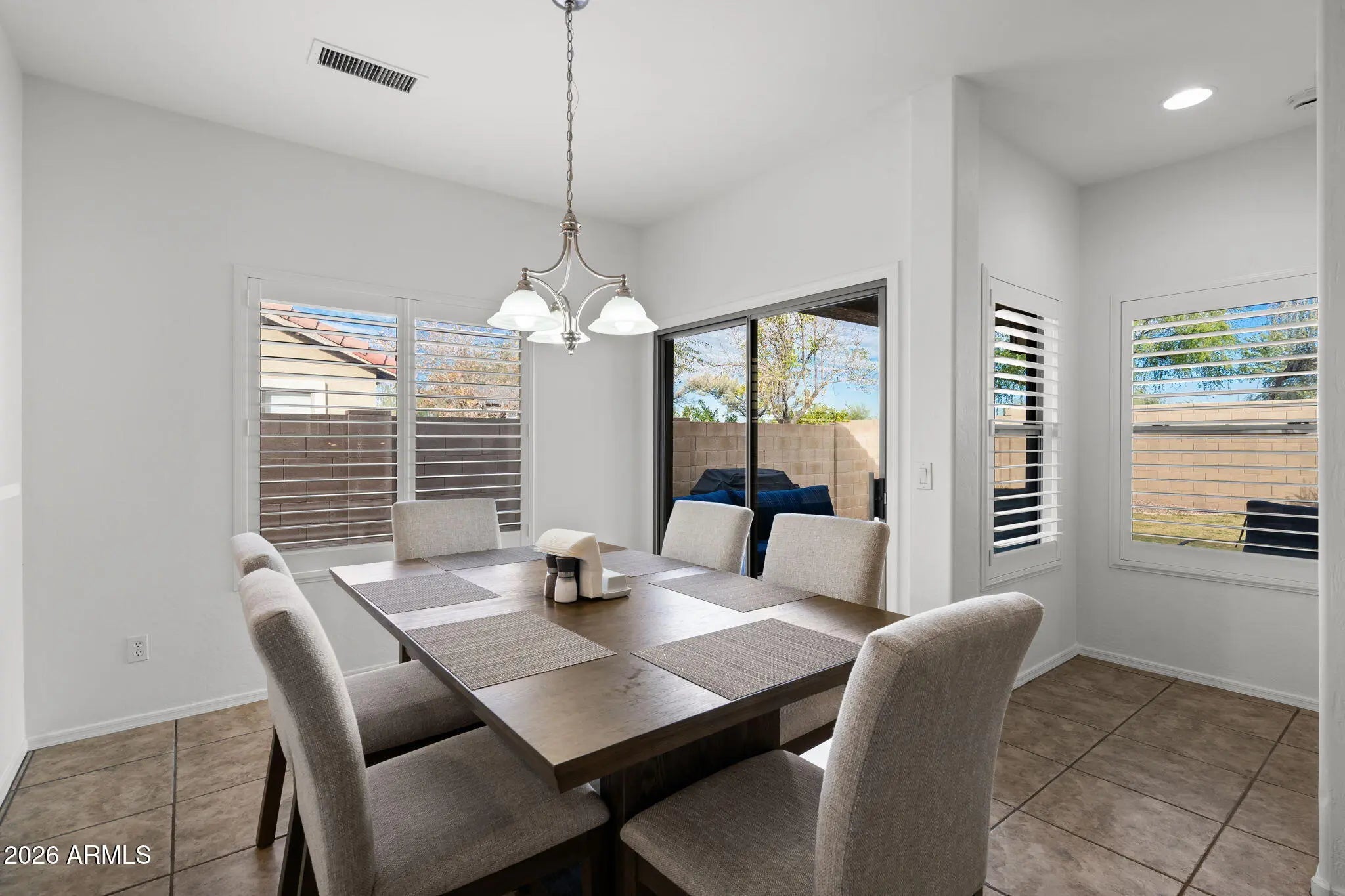This is the Mesa home you've been waiting for! Freshly updated, move-in ready, and priced to sell, this property delivers space, style, and value in the Villages of Eastridge. This 3-bedroom plus den (easy 4th bedroom), 2-bath home features an open great room with 9-foot ceilings, new recessed lighting and upgraded tile throughout. The kitchen offers new stainless steel appliances, updated quartz countertops, a breakfast bar, and effortless flow into the living space perfect for entertaining or everyday life. The primary suite impresses with a walk-in closet, fully renovated walk in shower, new vanity and beautiful lighting. Enjoy wood shutters, a low maintenance backyard, a huge nearby community park, and quick access to the US-60, shopping, and dining.