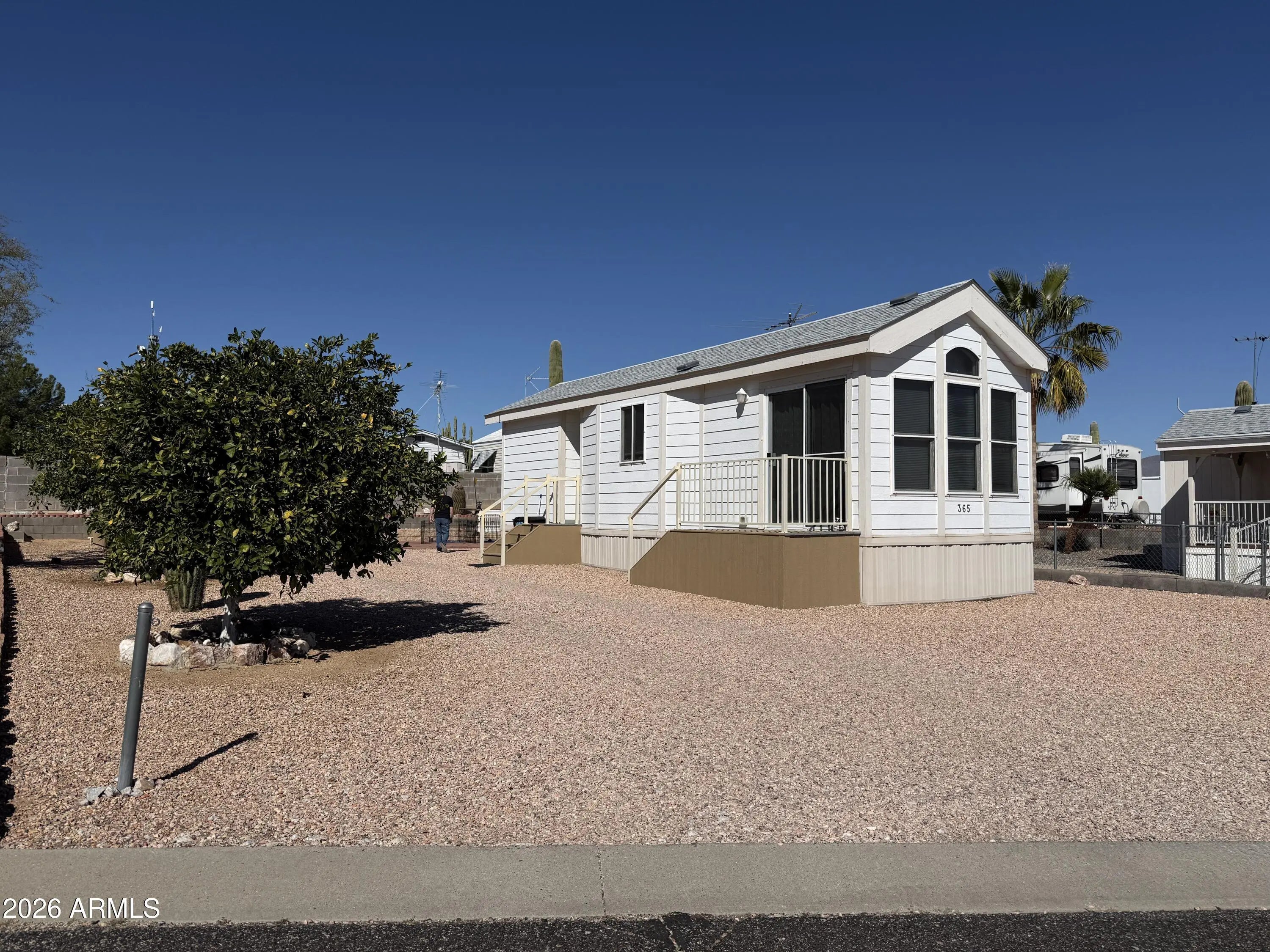 Perfection and Care are words to Describe this Beauty! Prime updating with New Flooring, New Range, Refrigerator, Microwave, HVAC Heat Pump, New outside Paint and Porches/Deck, New screens all around, 2 New Hot Water Heaters, one is in Newly heavily Insulated Shed. Shed has a Washer/Dryer, Big sink for your dog and is plumbed for a toilet. Groomed yard has large paver patio, 2 irrigated Orange trees and block privacy wall at back. You will find North Ranch to be an Exceptional place to find your new home or Winter playground. Activities abound at the Community Center, a Gate at back of Park leads to hours of enjoyment in the BLM Desert. * Must be Escapee Member to purchase, $50.00 annual. * $100 Buyer transfer fee. * No age limit restrictions. *Small lots may have EITHER an RV Site OR a Park Model, but NOT Both. KITCHEN IS PLUMBED FOR A GAS RANGE, UPGRADED ELEC IN SHED.