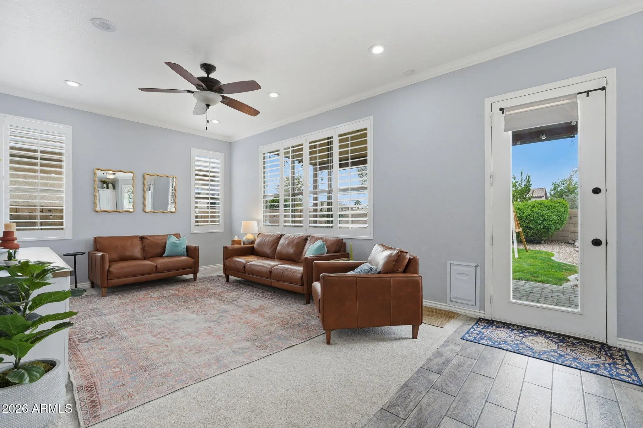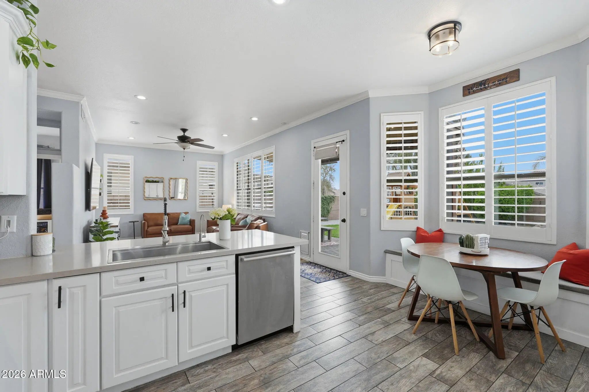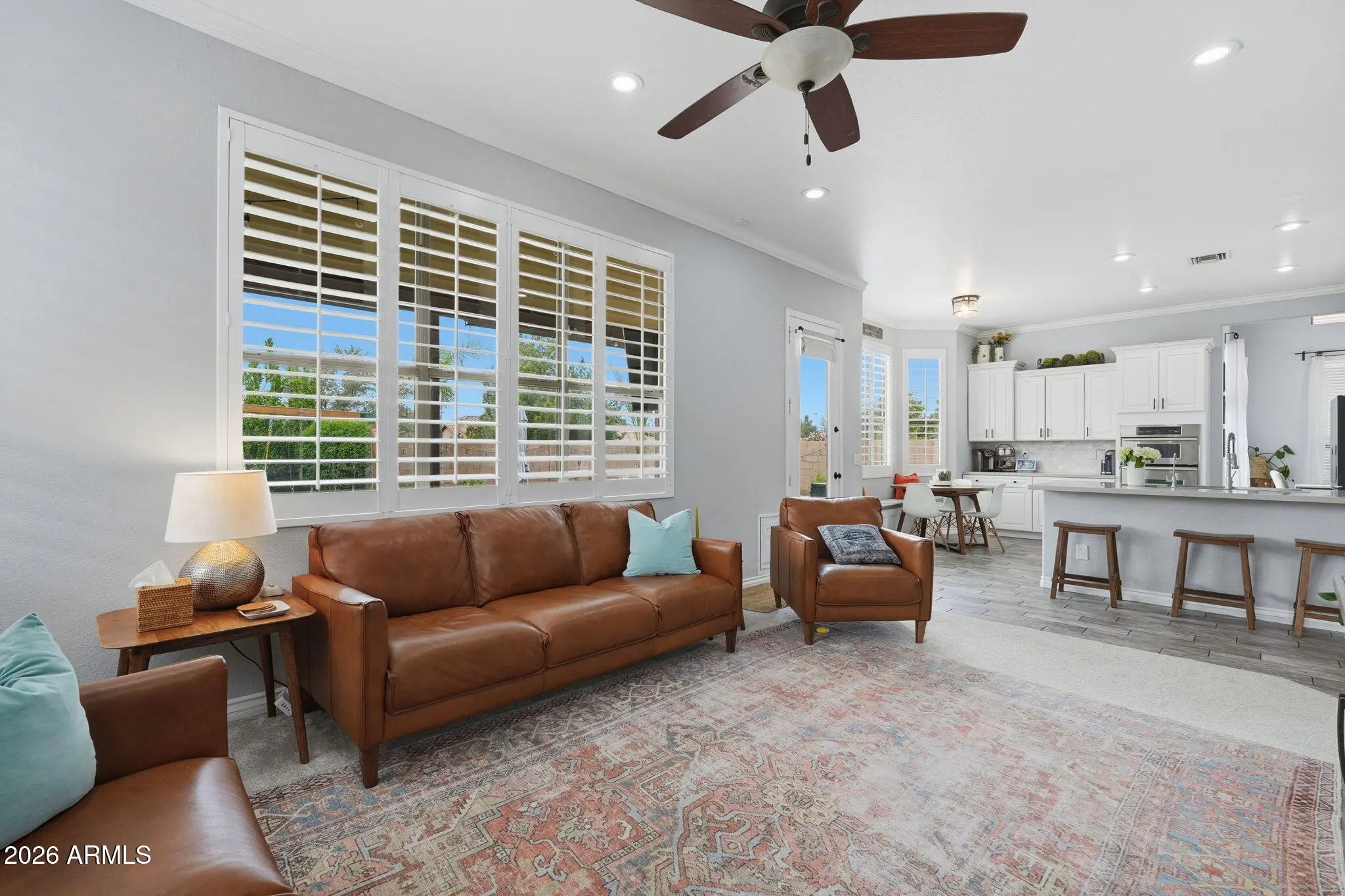 You are NOT going to want to miss this stunning Gilbert gem! Located in the highly desirable Carol Rae Ranch, this beautifully upgraded home truly checks every box. With 4 bedrooms plus a den, 3 full bathrooms, vaulted ceilings, and an open floor plan, the home feels even larger than its square footage suggests. Step outside to a lush backyard oasis featuring a private, sparkling pool--perfect for Arizona living and effortless entertaining. Inside, the oversized kitchen is a true showstopper with stainless steel appliances, a gas range, granite countertops, and abundant workspace ideal for hosting. Retreat to your spacious primary suite, complete with a luxurious en-suite bathroom offering dual vanities, a soaking tub, and a separate walk-in shower. Each additional bedroom provides generous living space and ample closet storage, ensuring comfort for everyone. Even better, you're walking distance to Carol Rae Elementary. Major upgrades include a new roof, new AC, wood shutters, epoxy garage flooring, and so much more.