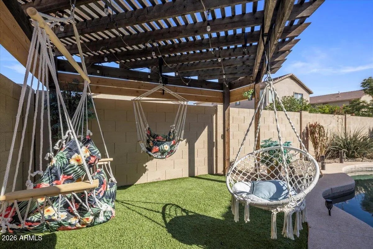 Welcome to your desert oasis—where ''low-maintenance'' actually means low-maintenance. This 3-bed, 2-bath gem in San Tan Heights is move-in ready and eager to impress. Sunlight pours through an open floor plan with neutral tones. The kitchen rocks a shiny new oven—because burnt dinners should be your fault, not the appliance's. But wait, there's more! Slide through the new glass door to your backyard paradise: a sparkling pool, custom pergola, and desert landscaping that won't judge you for forgetting to water it. Perfect for cannonballs, stargazing, or pretending you're on vacation. Arizona living, minus the drama.