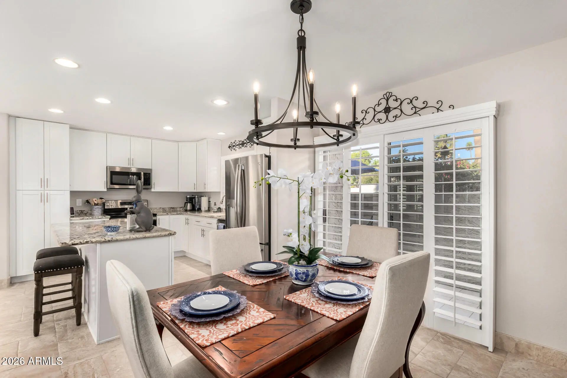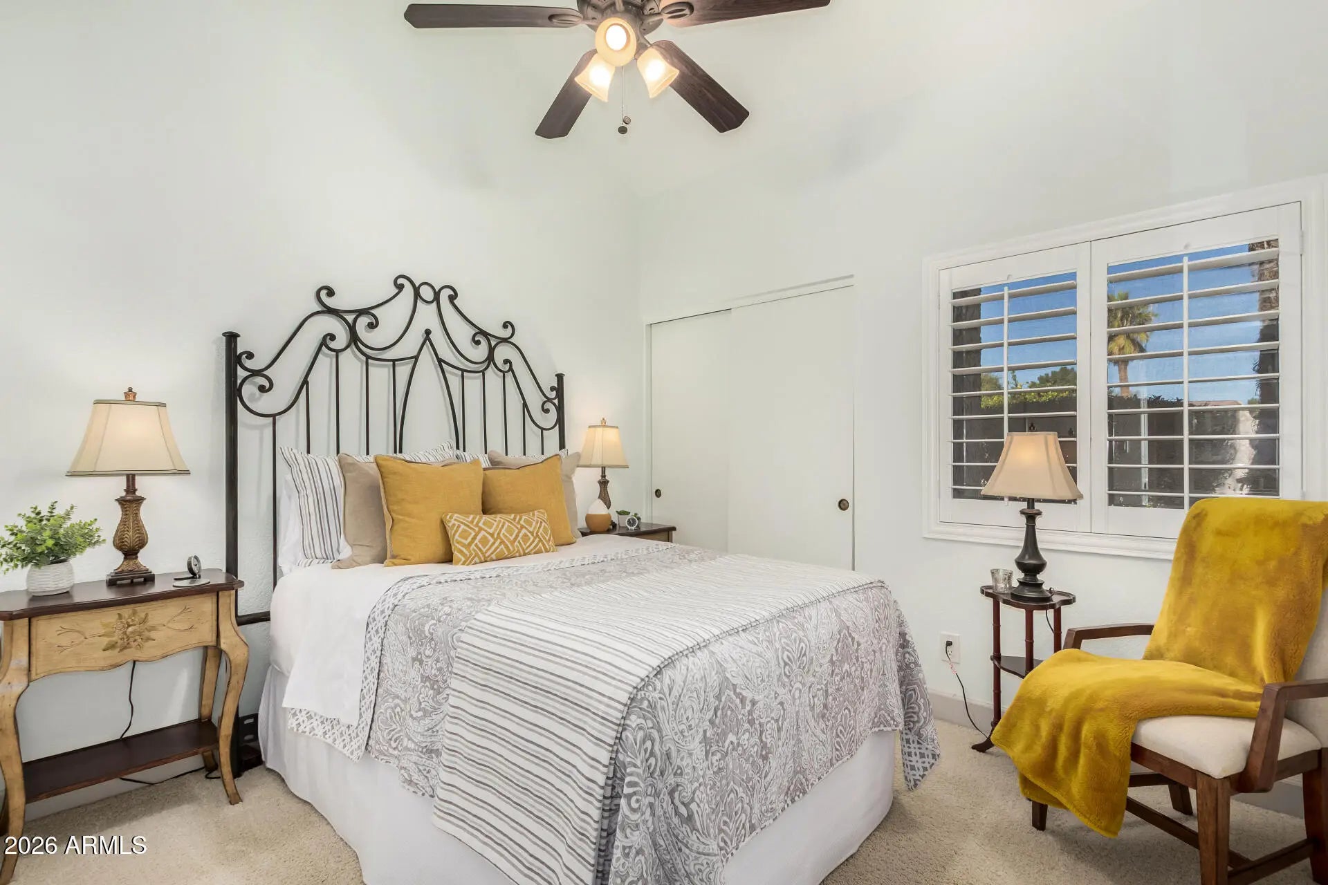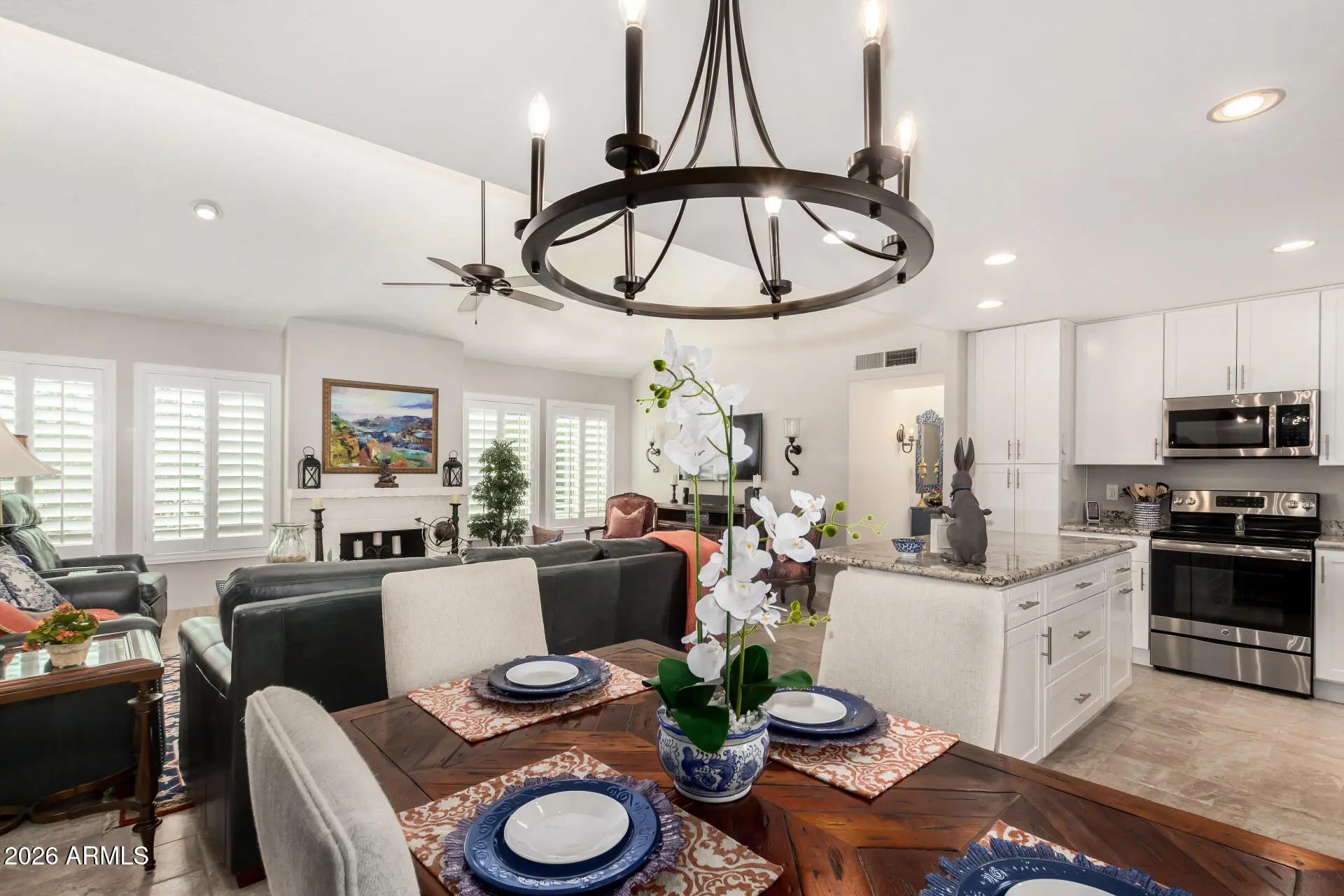 Check out this lovely, single level gem in the heart of McCormick Ranch. This beautiful home features vaulted ceilings, designer updates and is move-in ready. New flooring (2022), fresh paint (2020), plantation shutters (2020),Trane AC (2025) and many more high-end features. Kitchen features SS appliances, granite counters, a center island with breakfast bar. Sizable primary suite offers plush carpet, a walk-in closet and private bathroom. 2 car garage. Camello Vista is a wonderful community with 2 heated pools and spas, an awesome clubhouse w/ exercise room, putting green and more. Seller will consider selling furnished. Please contact listing agent for details. Seller will consider all offers. A deal like this won't last long!