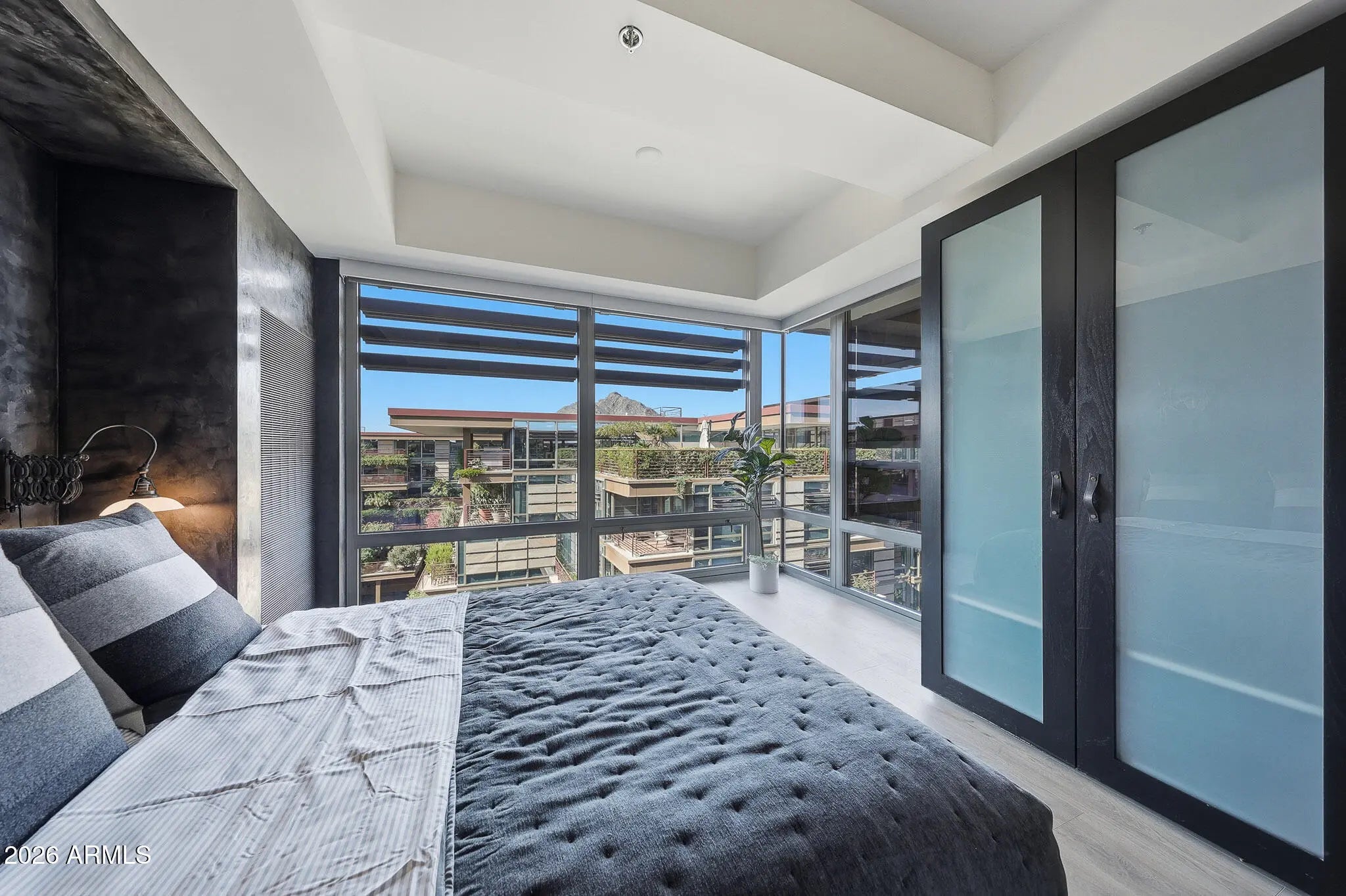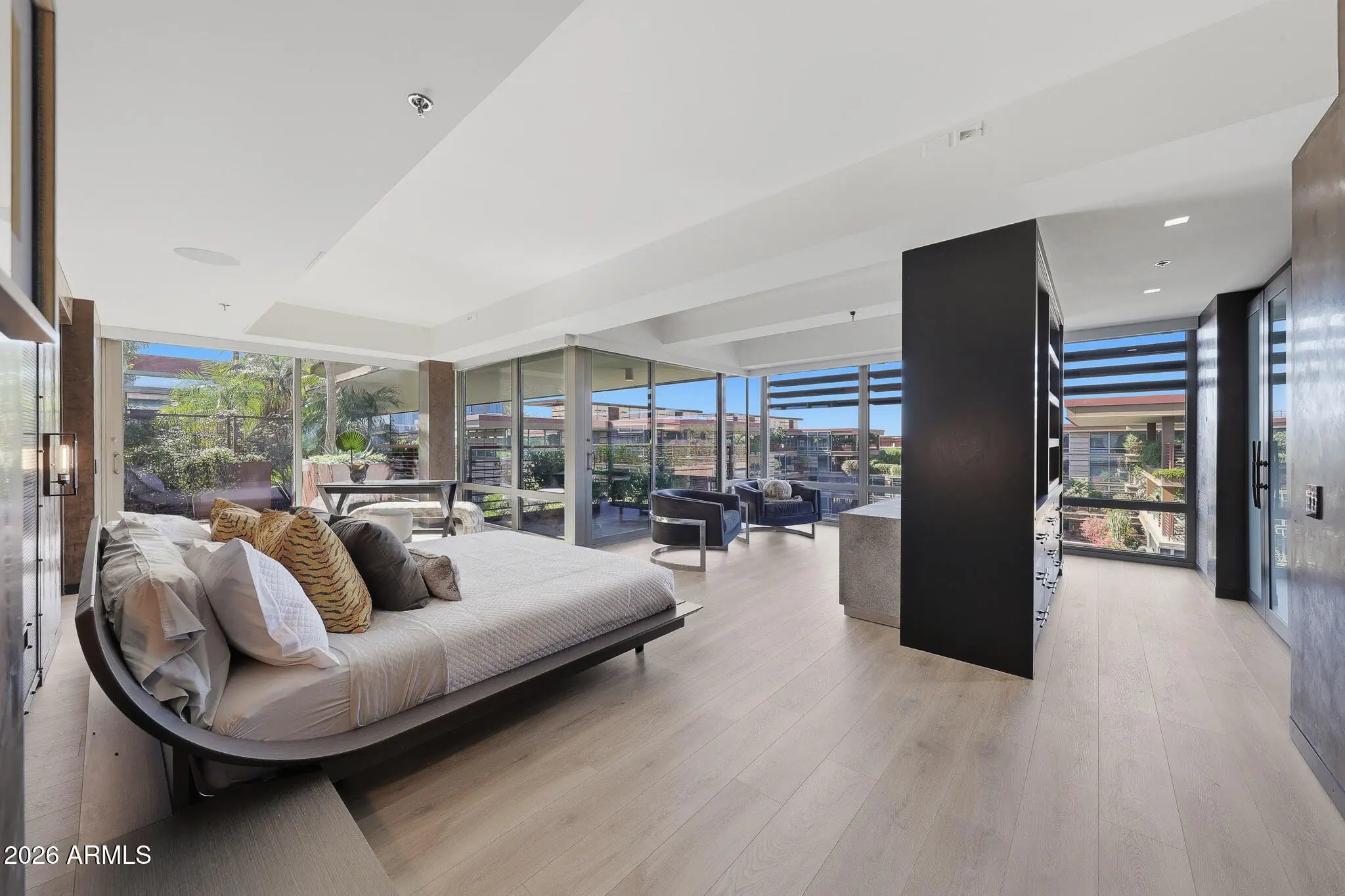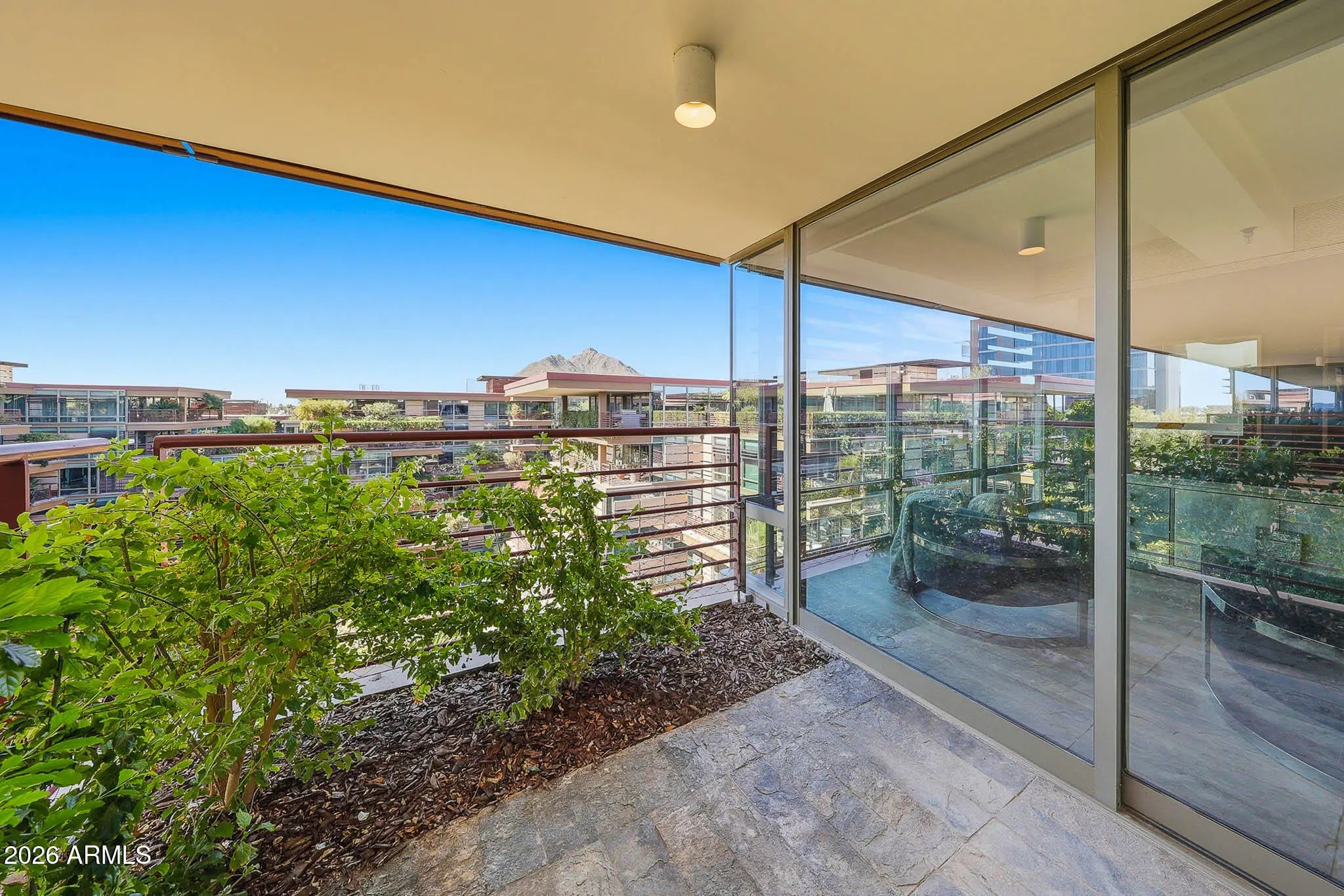 SPECTACULAR TOP-FLOOR OPTIMA CAMELVIEW PENTHOUSE—COMPLETELY REIMAGINED. This one-of-a-kind residence showcases an extensive, designer-level remodel with Italian Venetian plaster walls and breathtaking Camelback Mountain views from nearly every living space. The expansive great room opens to a massive north-facing patio, perfect for indoor-outdoor entertaining, and features a drop-down TV projector for a true cinematic experience. The chef's kitchen is outfitted with dual Sub-Zero refrigerator/freezer, custom cabinetry, and refined finishes—ideal for hosting at scale. A whole-home Sonos surround sound system flows seamlessly through the interior and outdoor living spaces, including a hidden pop-up TV on the main patio. The primary suite offers a serene retreat with a sitting area and access to two private patios, while the spa-inspired bath stuns with a concealed TV behind a mirrored Maser glass wall. A thoughtfully designed office/den features Camelback views, a movable wall, and glass sliding doors that can close off the guest suite and den for enhanced privacy. Smart-home technology, three rare private patios, and impeccable attention to detail throughout complete this truly unparalleled penthousea rare opportunity to own one of the most refined residences in Optima Camelview. All found within the luxurious Optima Camelview Village, with it's unbeatable location & state of the art architecture/amenities. Amenities include: Two Outdoor Zen Pools, Spas & Bbqs One on each side of the community (heated year round). 24,000 sq. ft. Fitness Center (Recently Remodeled). Mens & Womens Locker Rooms w/ Steam Rooms, Showers and Private Lockers. Indoor Lap Pool & 2 Spas (Heated year round), On-site concierge, Putting green, Hybrid Basketball / Pickle-ball Court, Racquet ball court, On-site restaurant (metropolis), conference room, 24/7 Security, Reservable party room and multi-purpose fitness/yoga room.