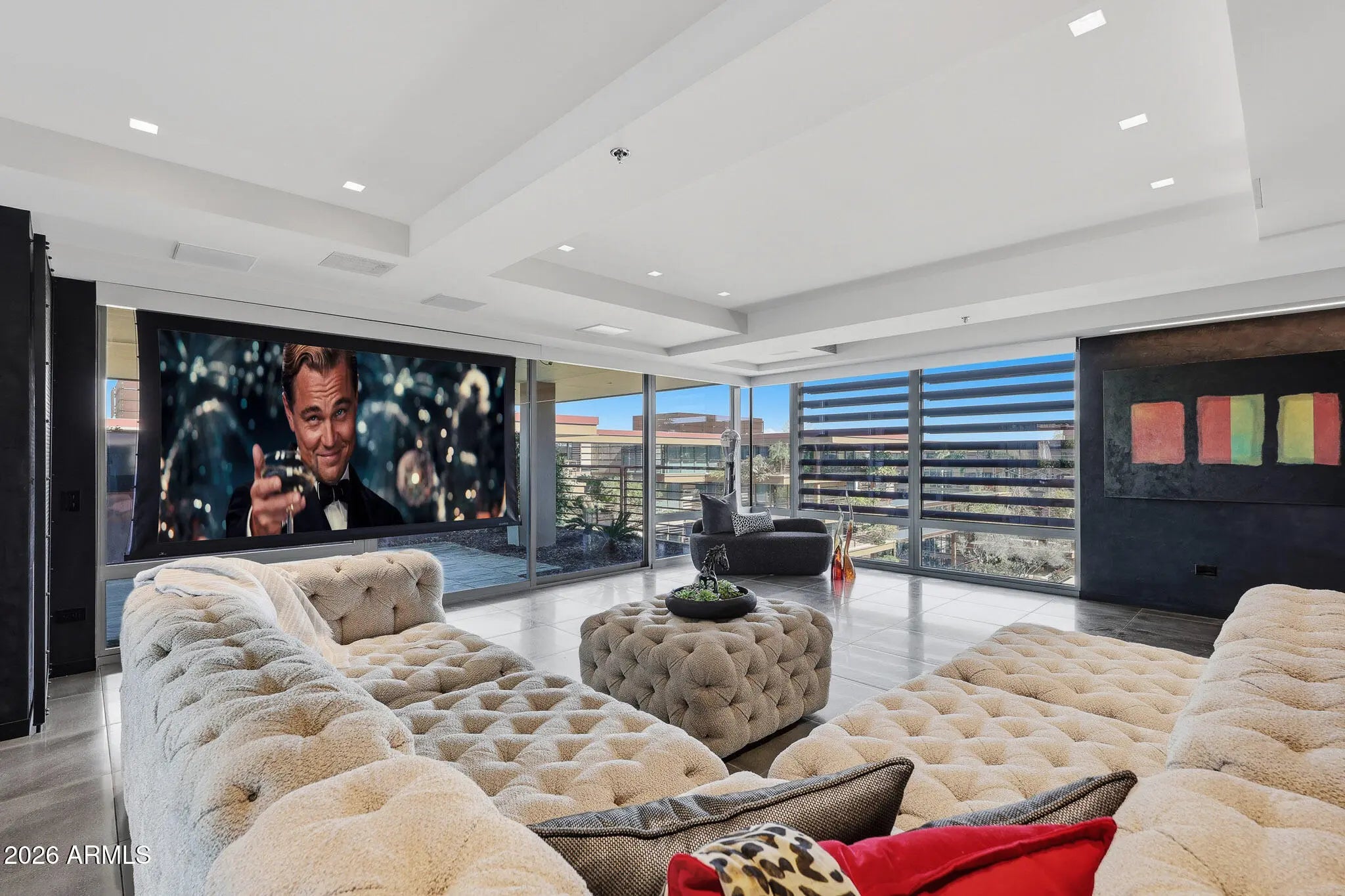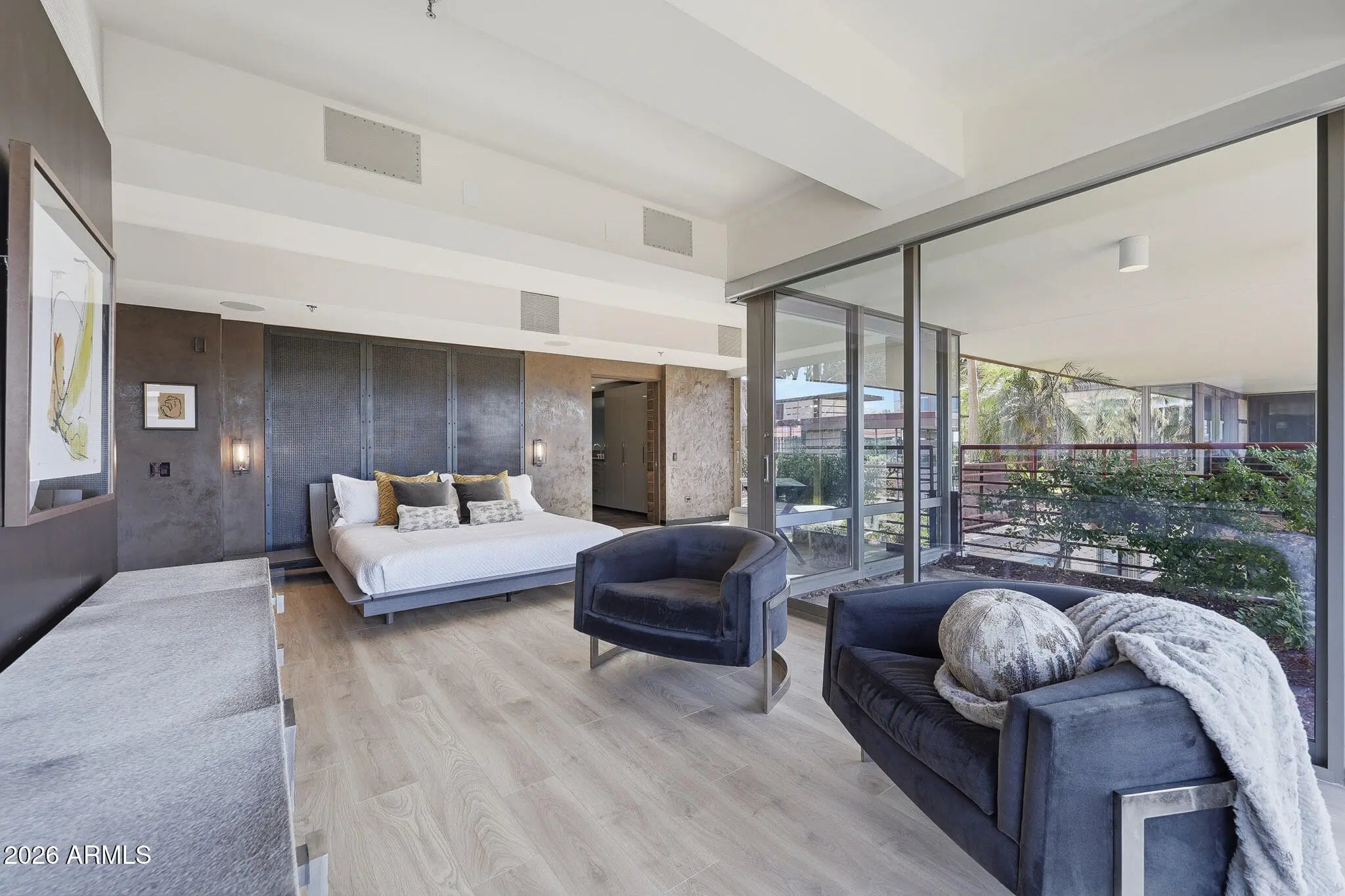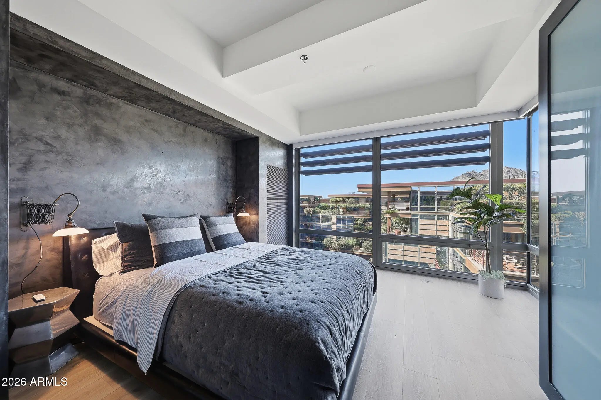 SPECTACULAR TOP-FLOOR OPTIMA CAMELVIEW PENTHOUSE—COMPLETELY REIMAGINED. This one-of-a-kind residence showcases an extensive, designer-level remodel with Italian Venetian plaster walls and breathtaking Camelback Mountain views from nearly every living space. The expansive great room opens to a massive north-facing patio, perfect for indoor-outdoor entertaining, and features a drop-down TV projector for a true cinematic experience. The chef's kitchen is outfitted with dual Sub-Zero refrigerator/freezer, custom cabinetry, and refined finishes—ideal for hosting at scale. A whole-home Sonos surround sound system flows seamlessly through the interior and outdoor living spaces, including a hidden pop-up TV on the main patio. The primary suite offers a serene retreat with a sitting area and access to two private patios, while the spa-inspired bath stuns with a concealed TV behind a mirrored Maser glass wall. A thoughtfully designed office/den features Camelback views, a movable wall, and glass sliding doors that can close off the guest suite and den for enhanced privacy. Smart-home technology, three rare private patios, and impeccable attention to detail throughout complete this truly unparalleled penthousea rare opportunity to own one of the most refined residences in Optima Camelview. All found within the luxurious Optima Camelview Village, with it's unbeatable location & state of the art architecture/amenities. Amenities include: Two Outdoor Zen Pools, Spas & Bbqs One on each side of the community (heated year round). 24,000 sq. ft. Fitness Center (Recently Remodeled). Mens & Womens Locker Rooms w/ Steam Rooms, Showers and Private Lockers. Indoor Lap Pool & 2 Spas (Heated year round), On-site concierge, Putting green, Hybrid Basketball / Pickle-ball Court, Racquet ball court, On-site restaurant (metropolis), conference room, 24/7 Security, Reservable party room and multi-purpose fitness/yoga room.