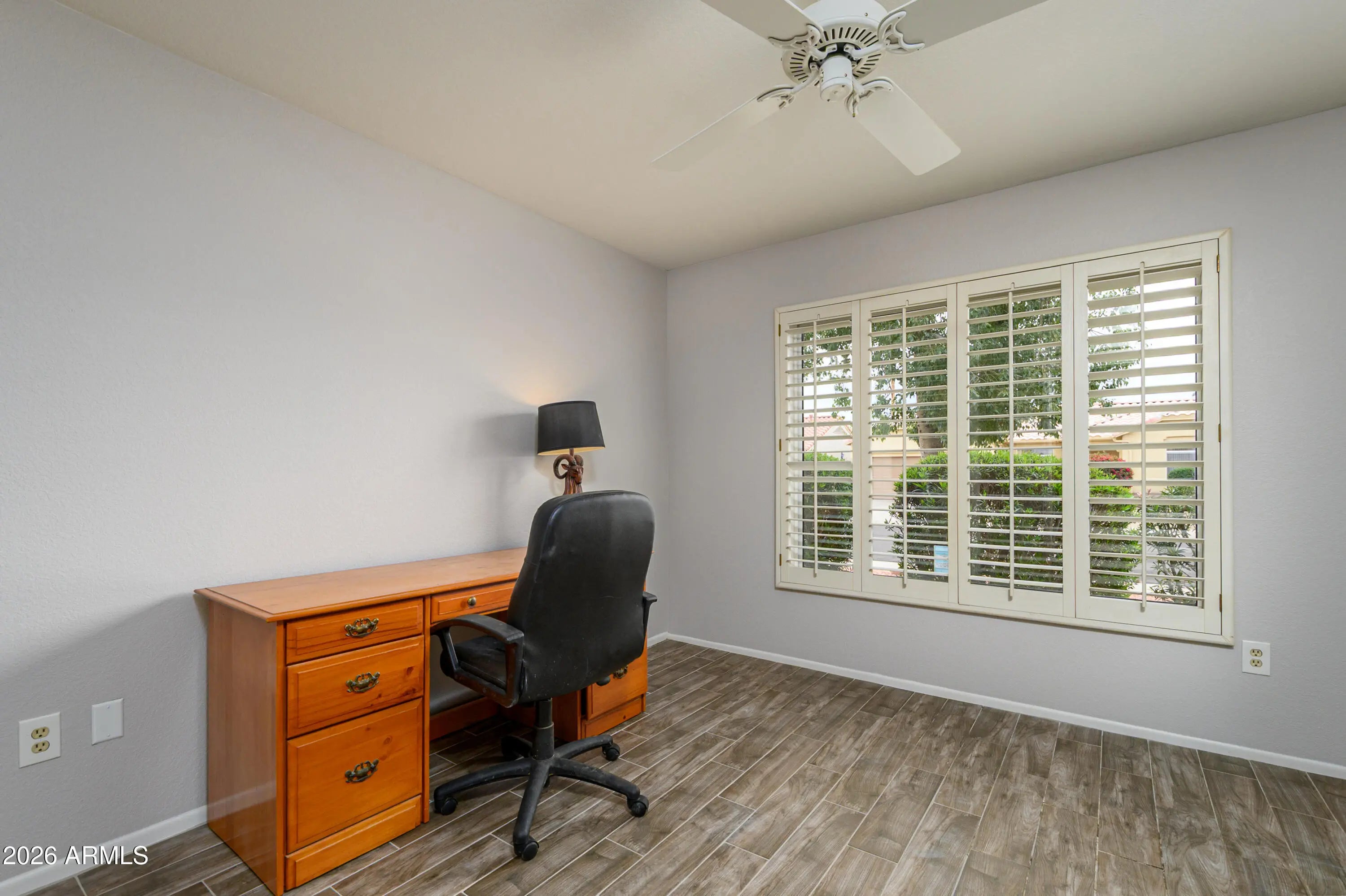 Welcome To This Delightful 2‑Bed, 2‑Bath Home In The Highly Sought‑After 55+ Community of Sun City West! This Move‑in‑Ready Residence Features New Tile Flooring Throughout And Plantation Shutters In Every Room, Offering A Clean, Modern, And Cohesive Look.Enjoy An Open Floor Plan That Seamlessly Connects The Kitchen To The Great Room—Perfect For Entertaining. The Kitchen Features A Desired Gas Stove, And All Appliances Convey, Including The Refrigerator, Washer, And Dryer. The Interior Was Freshly Painted In February 2026. Major Mechanical Updates Include a 2025 Water Heater And a 2016 Roof For Peace of Mind.Step Outside To A Beautifully Extended Covered Patio That Provides Total Privacy. Extended 2 Car Garage With Built-in Cabinets.Come Experience All That Sun