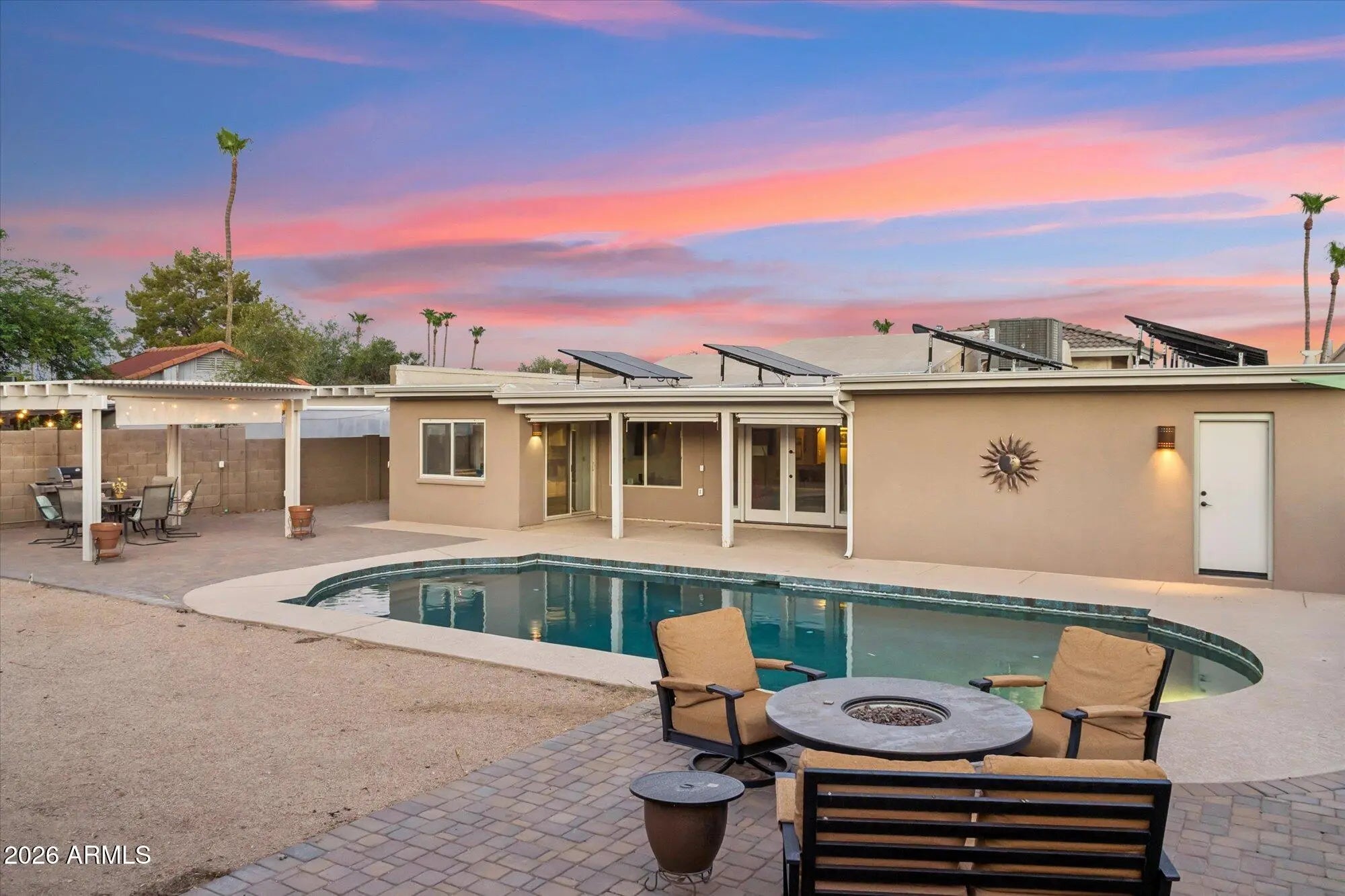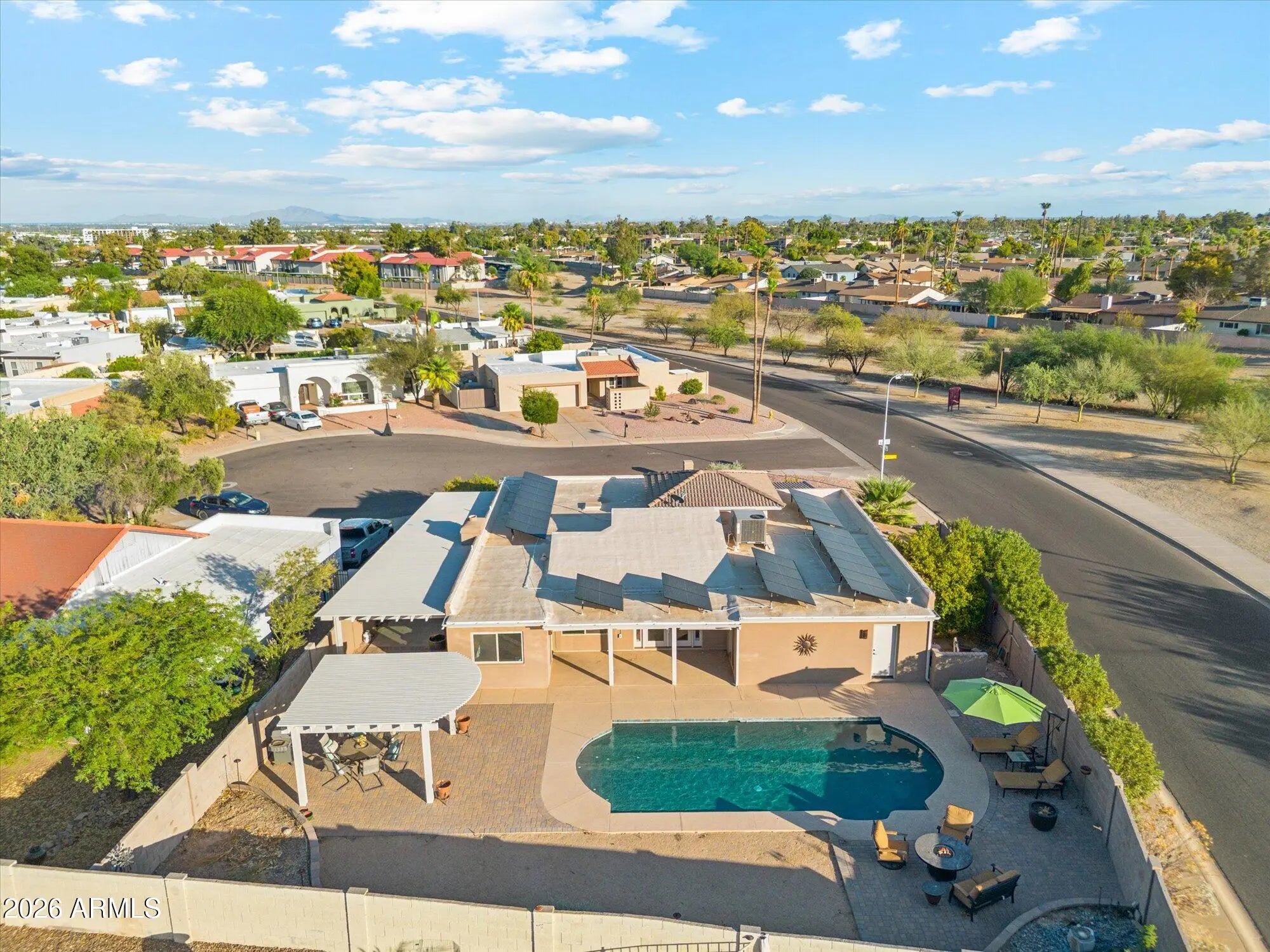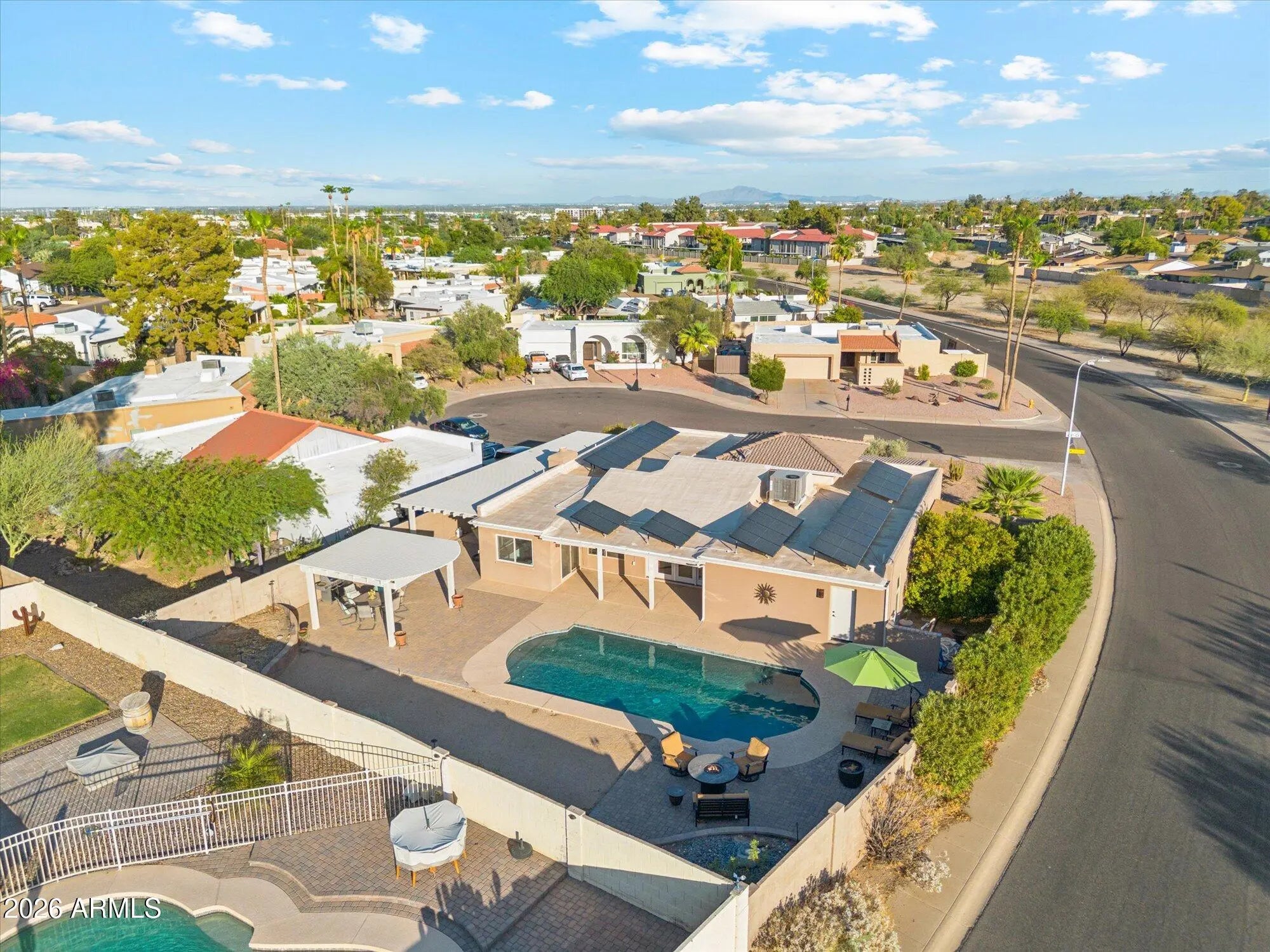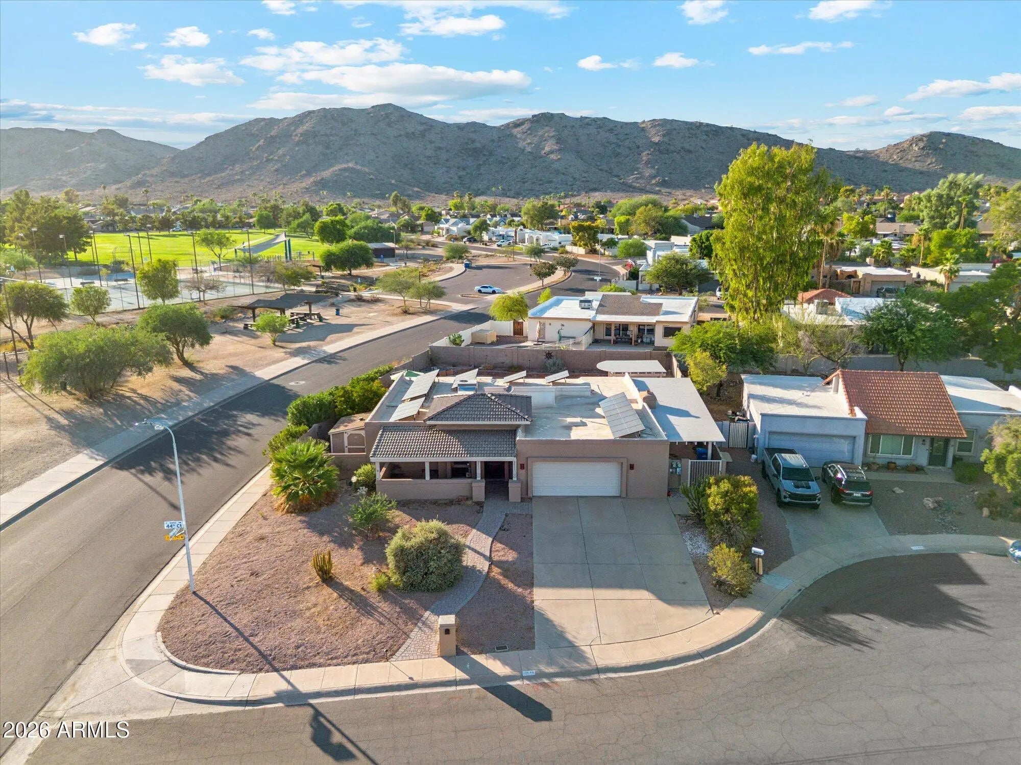 Welcome to this stunning 3-bedroom, 2-bath home in one of Ahwatukee's most sought-after neighborhoods, where luxury upgrades and kitchen remodel, energy efficiency, and Arizona outdoor living come together beautifully. From the curb, you'll love the low-maintenance color-infused stucco exterior—designed to never need repainting—and a custom-painted Tuff Shed that blends seamlessly with the home. Inside, bright, inviting spaces make everyday living feel both comfortable and refined. Step into your private backyard oasis. The Pebble Tec salt-water pool and new pool decking (just 3 years old) create a true resort vibe, perfect for entertaining, unwinding after a long day or simply taking in beautiful mountain views. The Alumiwood side patio and gazebo provide shade and style with the look of wood but the durability of aluminumnever rotting and backed by a lifetime warranty. This home is also incredibly efficient. Paid-off solar installed in 2022 means dramatically lower energy bills, and at the same time the roof was upgraded with a premium silicone additive and comes with a 20-year warrantygiving you long-term peace of mind. This home offers the perfect balance of luxury, durability, and energy efficiency, a rare opportunity to own a truly turnkey desert retreat in one of Phoenix's most desirable communities with mountain views, parks and hikes close by.