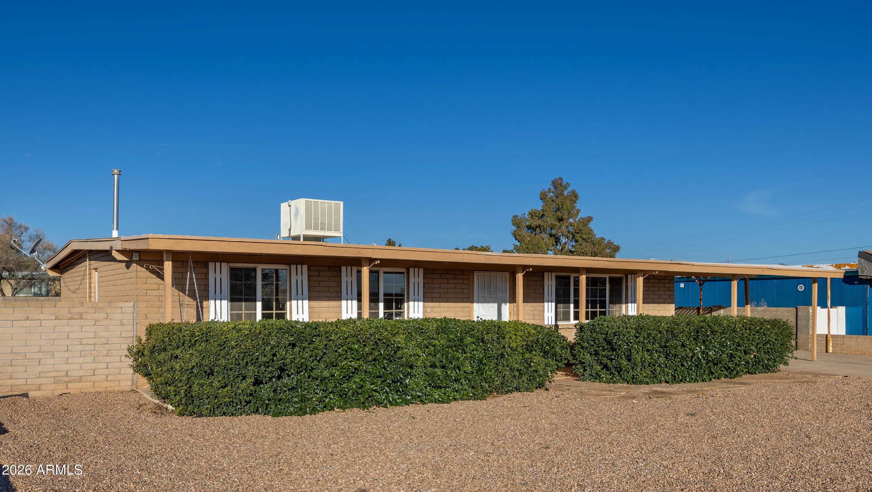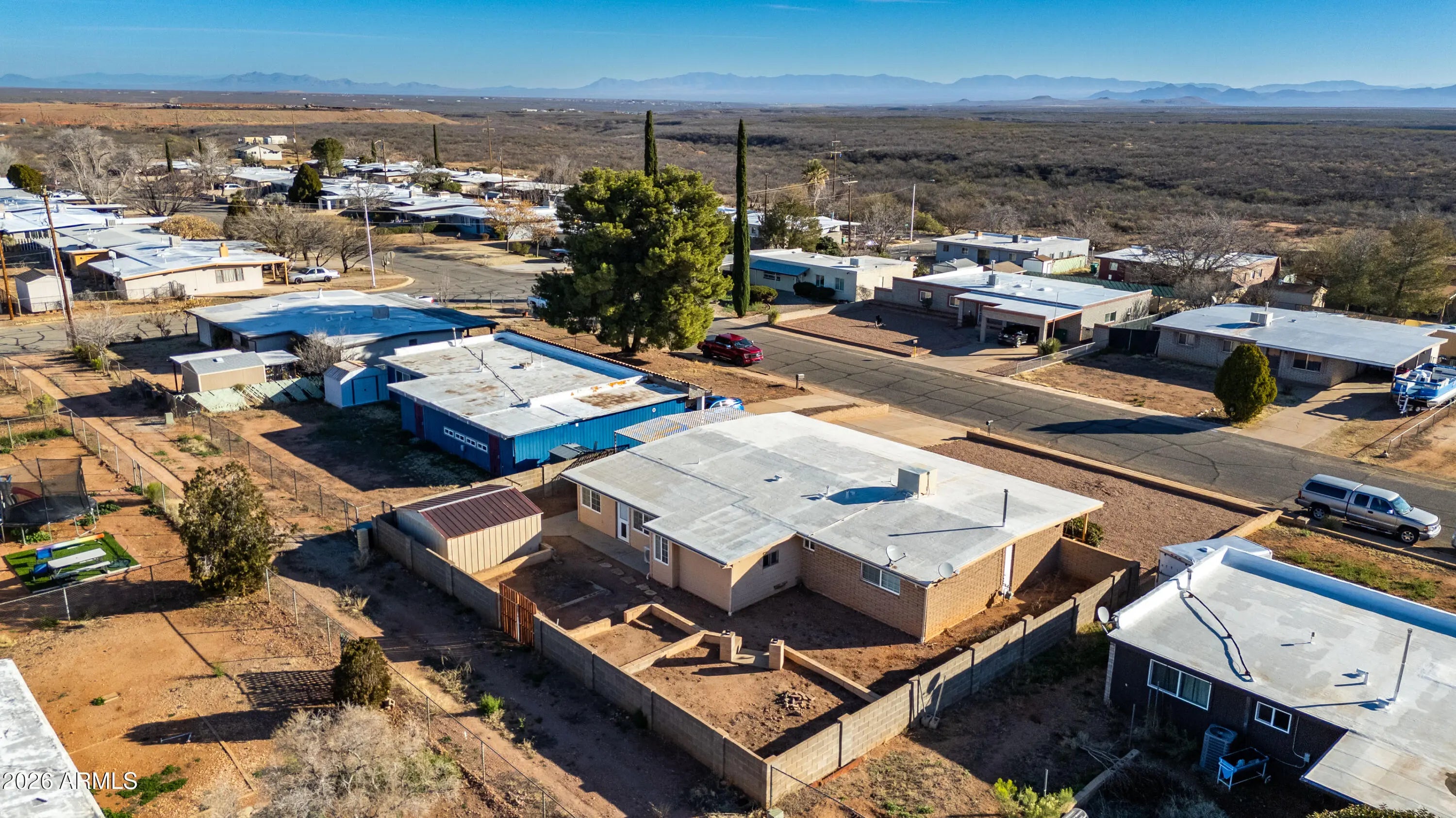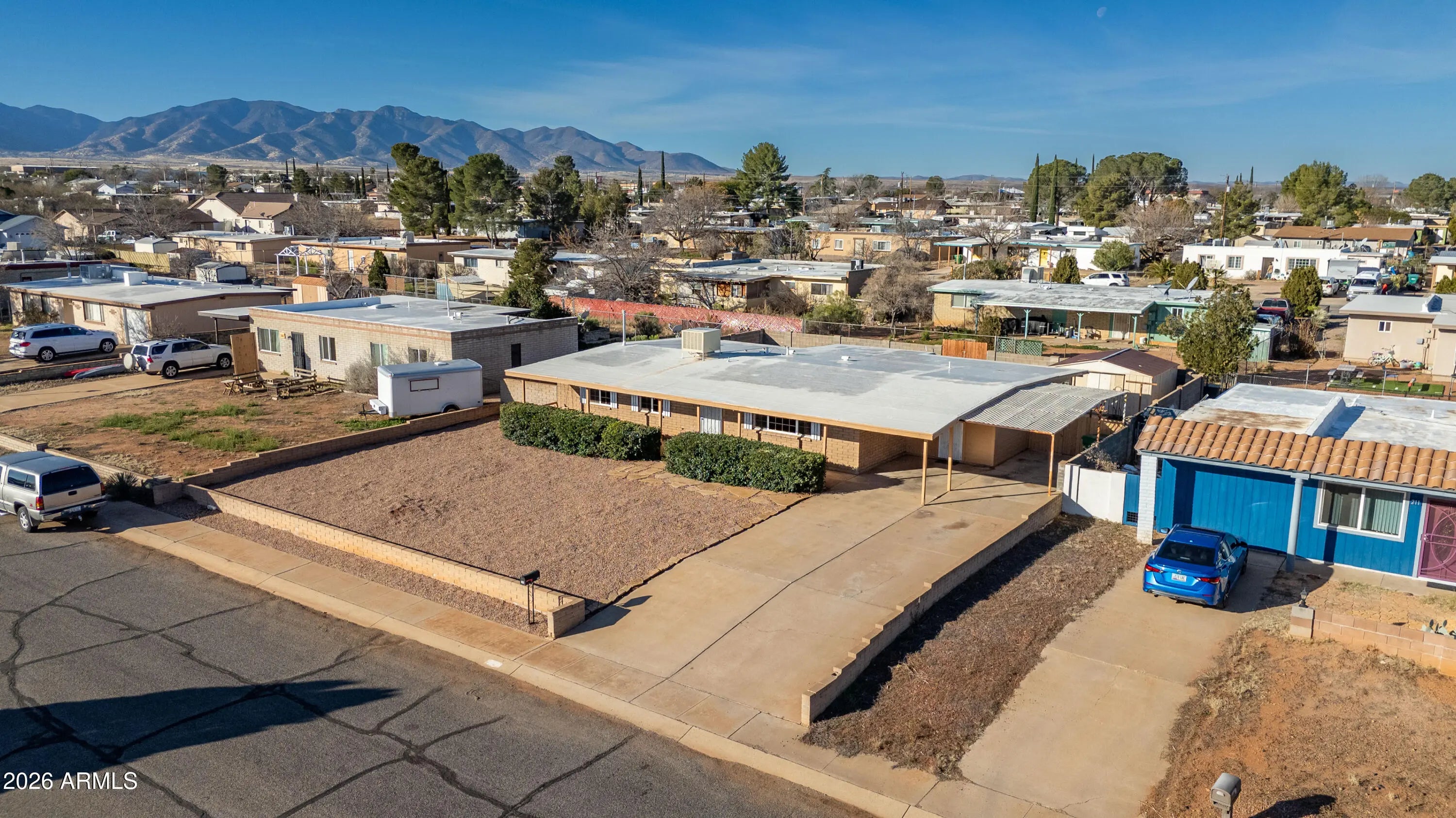 Great location ,one street from east range. porch swing to take in views. All tile floors except new carpet in sun room that is all windows, next to 4th bedroom that is better used as nice office space. Kitchen opens to carport for easy unloading of grocries. Lots of cabinets for storage. gas stove and up scale refidgerator. Primary bedroom is large . Square footage is closer to 2000 as minisplits are added to sunroom and 4th bed/office room. All in the desireable Tombstone School destrict. Block wall around back and lower one in front. Mastercool is cooling system.