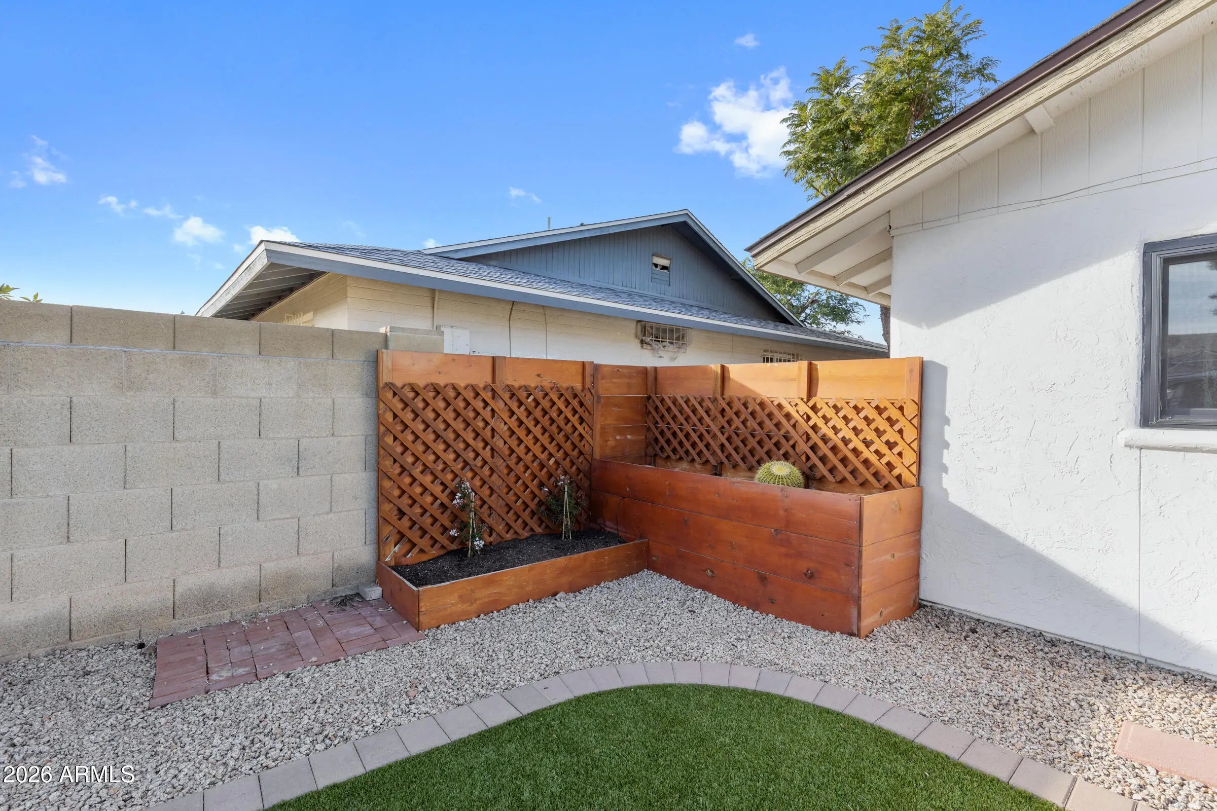 North/South Exposure, Gravel/Stone Front, Synthetic Grass Back