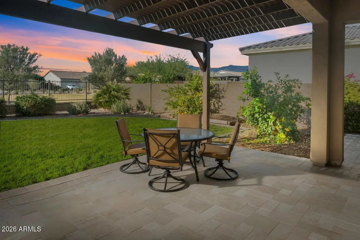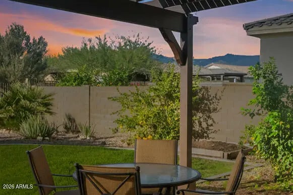 Wow! Fantastic 7 yr new DAVID WEEKLY HOME, 2253sf, 3br, 2.5bath home with Den, Bonus Room, 3 car Garage and FANTASTIC SUPERSTITION MOUNTAIN VIEW! ***You'll LOVE the OPEN CONCEPT LIVING with HUGE GOURMET KITCHEN, built-in oven & GAS COOKTOP, 6x26 plank hardwood ceramic flooring, large front den, FLEXIBLE BONUS ROOM between guest rooms, 16' sliding glass door opens your Great Room up to multiple IMPRESSIVE TRAVERTINE PATIOS & generous PERGOLA, large landscaped lot, view fence to NO HOMES BEHIND to ENJOY STUNNING SUNSETS & Mountain Views & More! ***You'll also appreciate the TASTEFUL LIGHT COLORS & finishes, ZERO CARPET, Large Kitchen Pantry, Garage Cabinets & Epoxy Garage Floors +++ MUST SEE! *** Make this Your Dream Home in Peralta Canyon, offering exciting amenities, such as .. ... horse shoes, bean bag toss, outdoor fire pit, pickleball courts and bocce ball, children's playground and plenty of green space to relax, take a walk and enjoy! This community invites families and winter visitors of every type to explore the natural beauty in nearby Perala Trails Regional Park, great for walking and hiking. Welcome home and take your lifestyle to a whole new level!