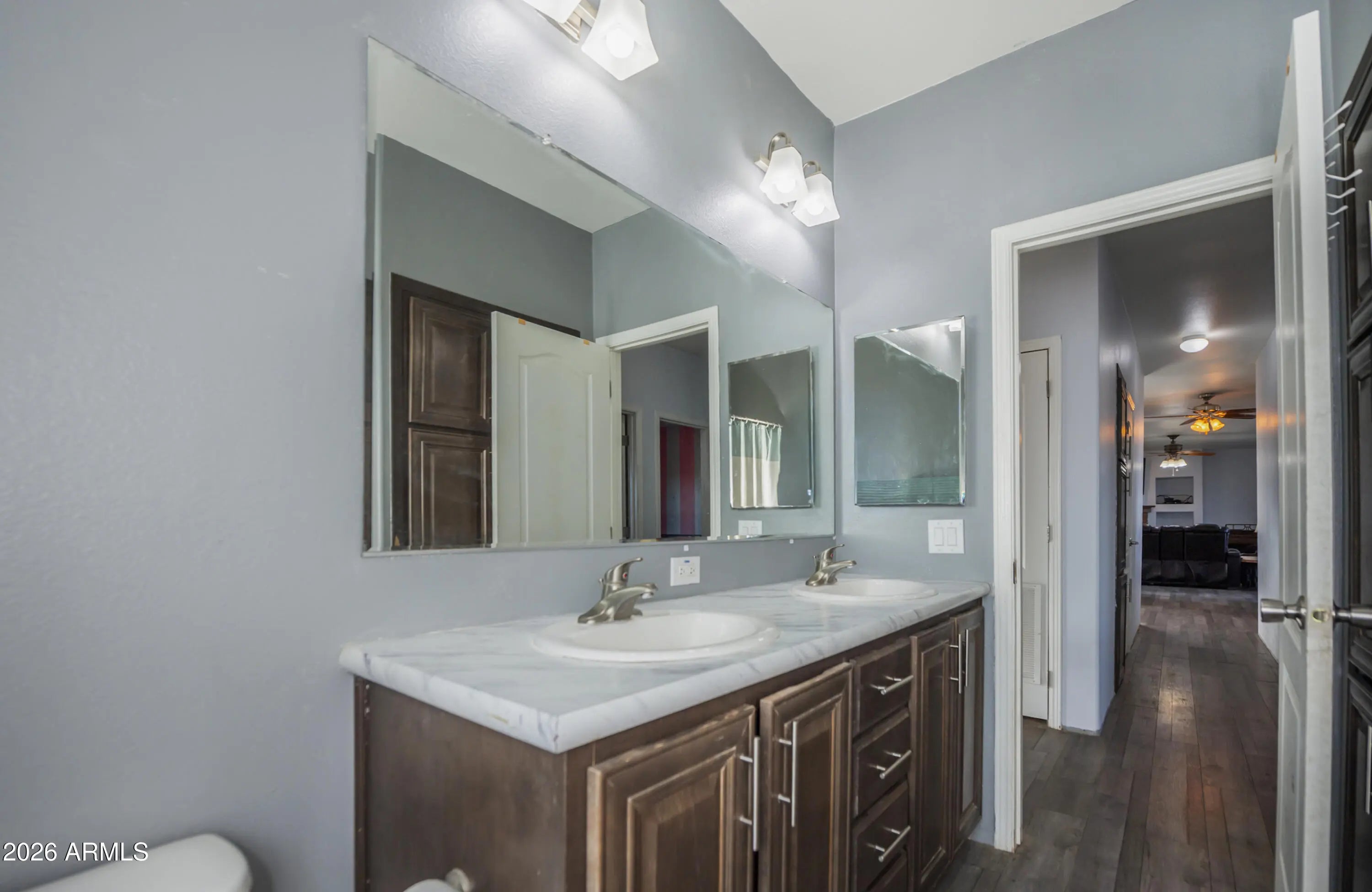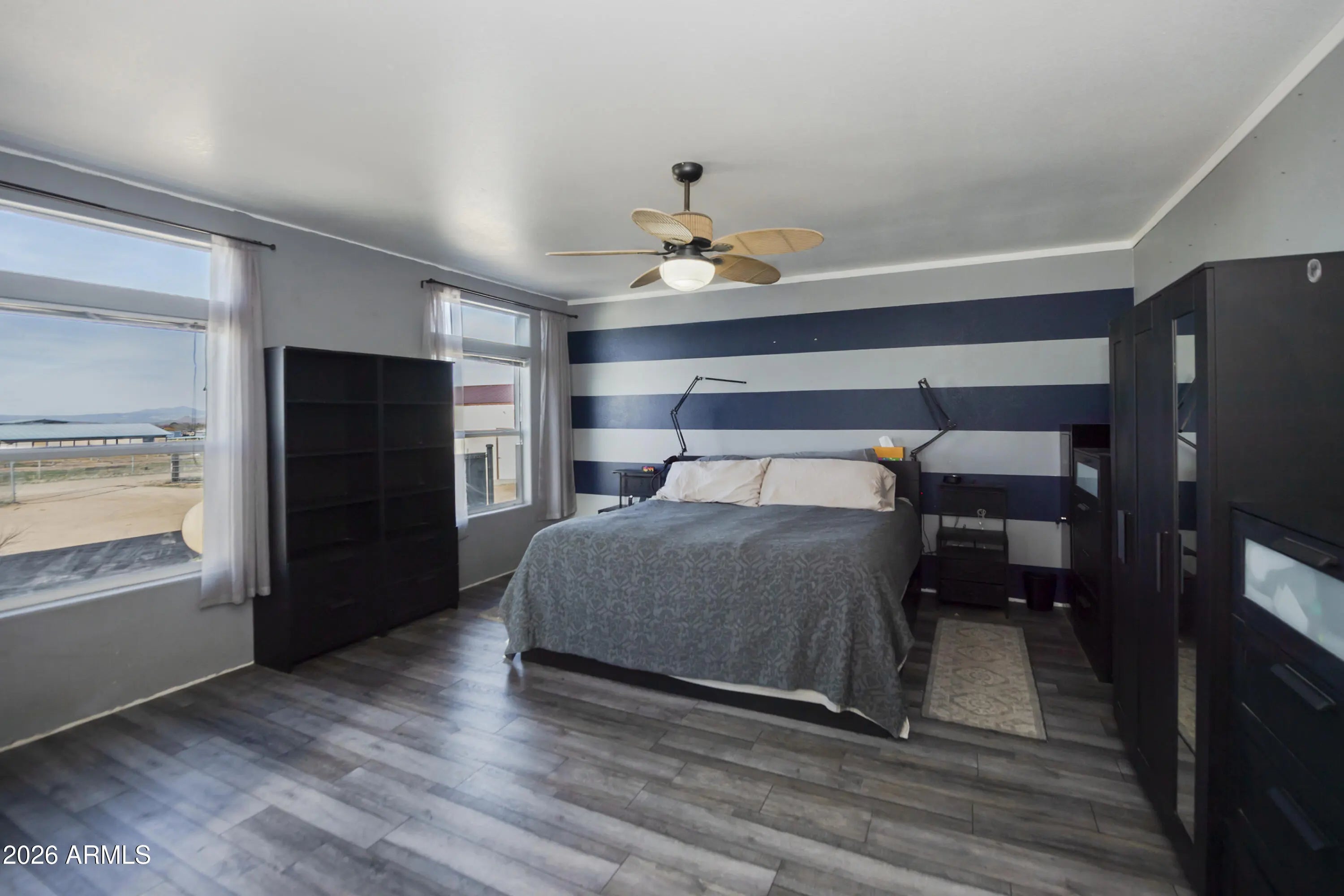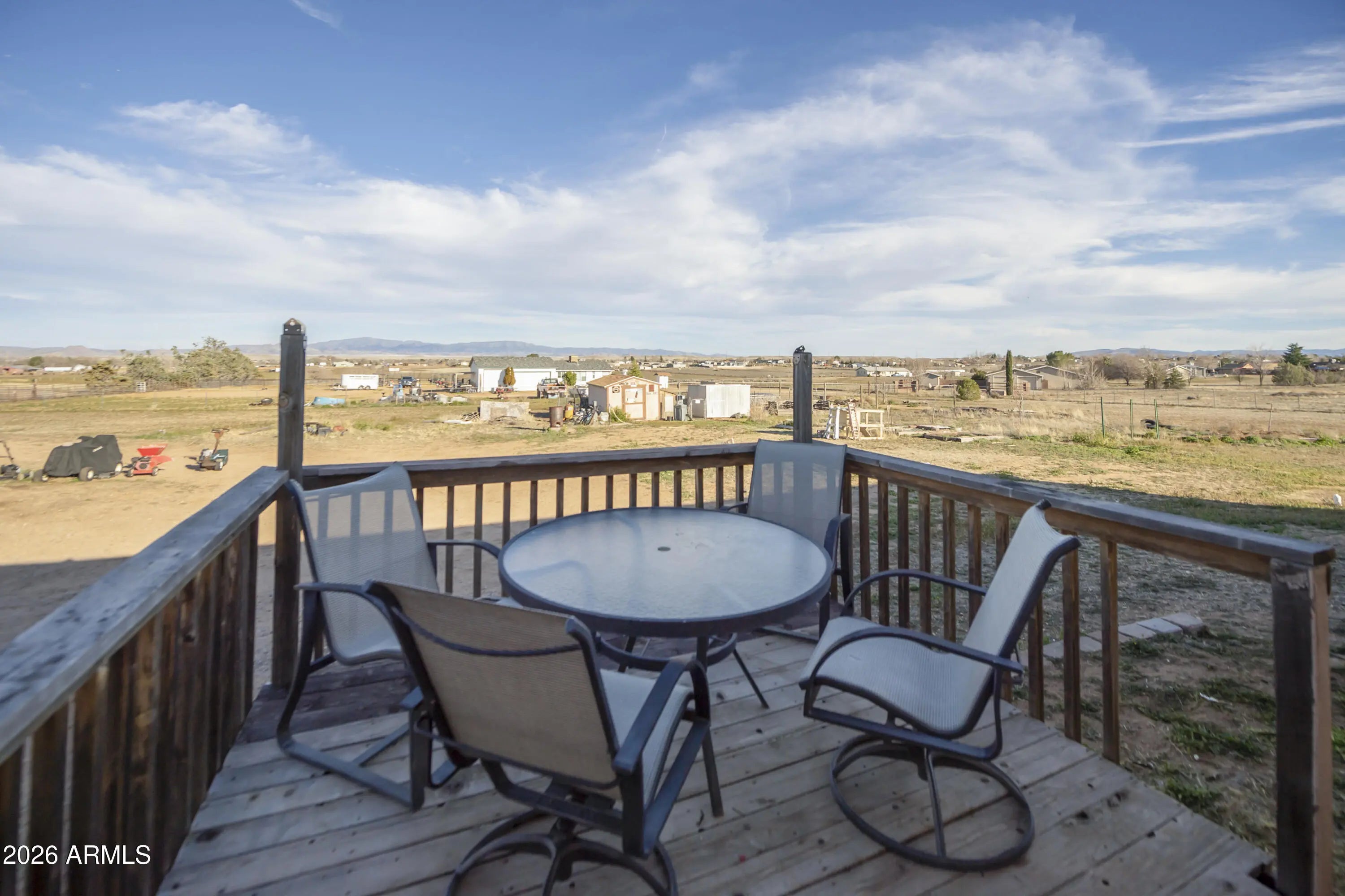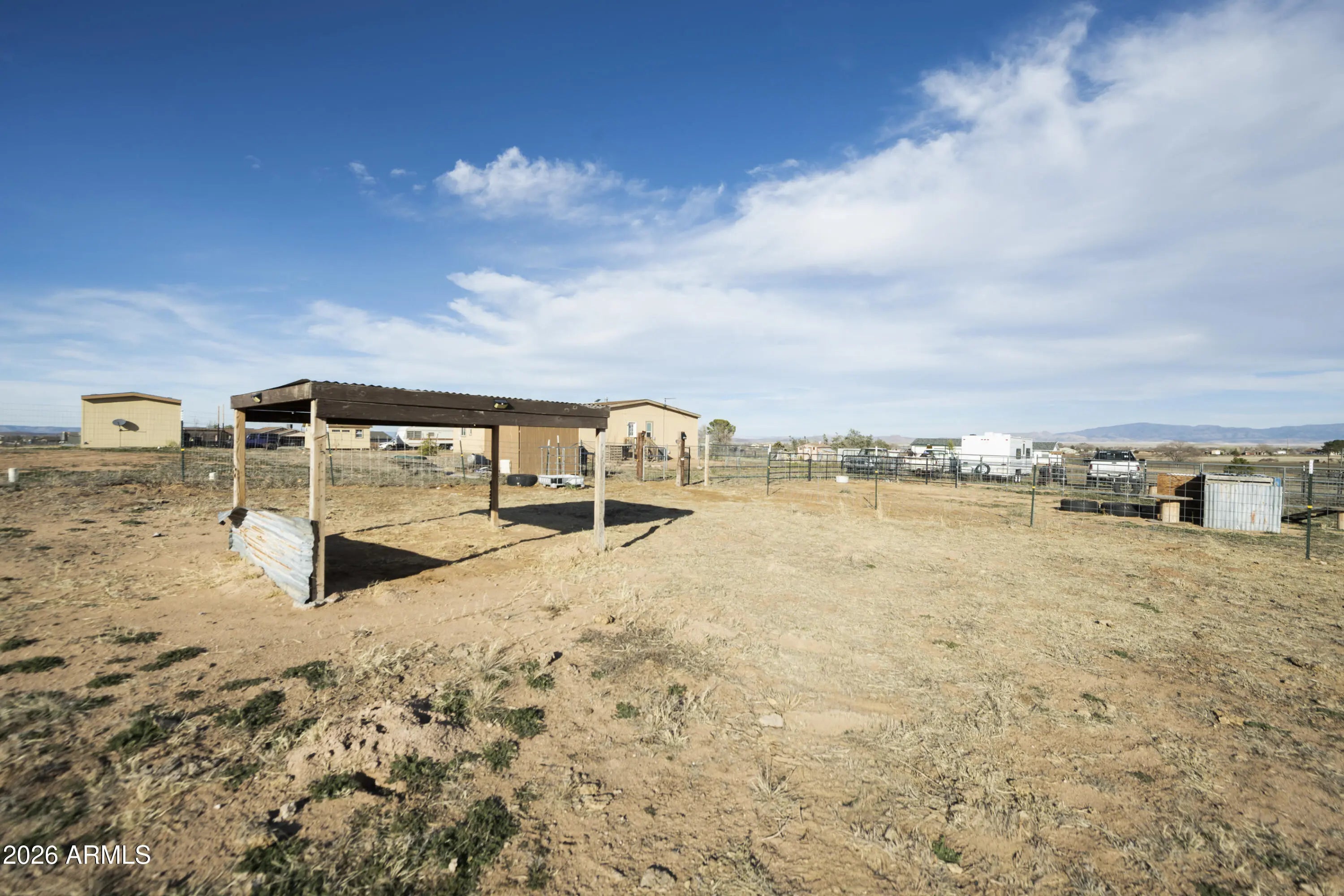 Welcome to this exceptional Chino Valley property offering space, flexibility, and self-sufficiency on 2.56 fully fenced acres. The main home, installed in 2018, features an expansive 2,976 square feet with 4 bedrooms, 3 bathrooms, 2 family living areas (Living room and Family Room) and a bonus room, while the separate guest home--installed in 2020--adds an additional 832 square feet, ideal for multi-generational living or rental income. The property is thoughtfully equipped with a private well, two septic systems, two propane tanks, and RV hookups--perfect for guests, travel enthusiasts, or additional flexibility. A 24x24 two-car metal garage provides ample room for vehicles, storage, or a workshop. Property is well laid out for farm animals, has a separately fenced backyard for dogs, and multiple enclosures for large animals. One enclosure includes shaded overhead cover. With open land and multiple living options, this property presents a rare opportunity for a mother-in-law setup, income-producing rental, or peaceful rural living, all while enjoying the charm and convenience of Chino Valley.