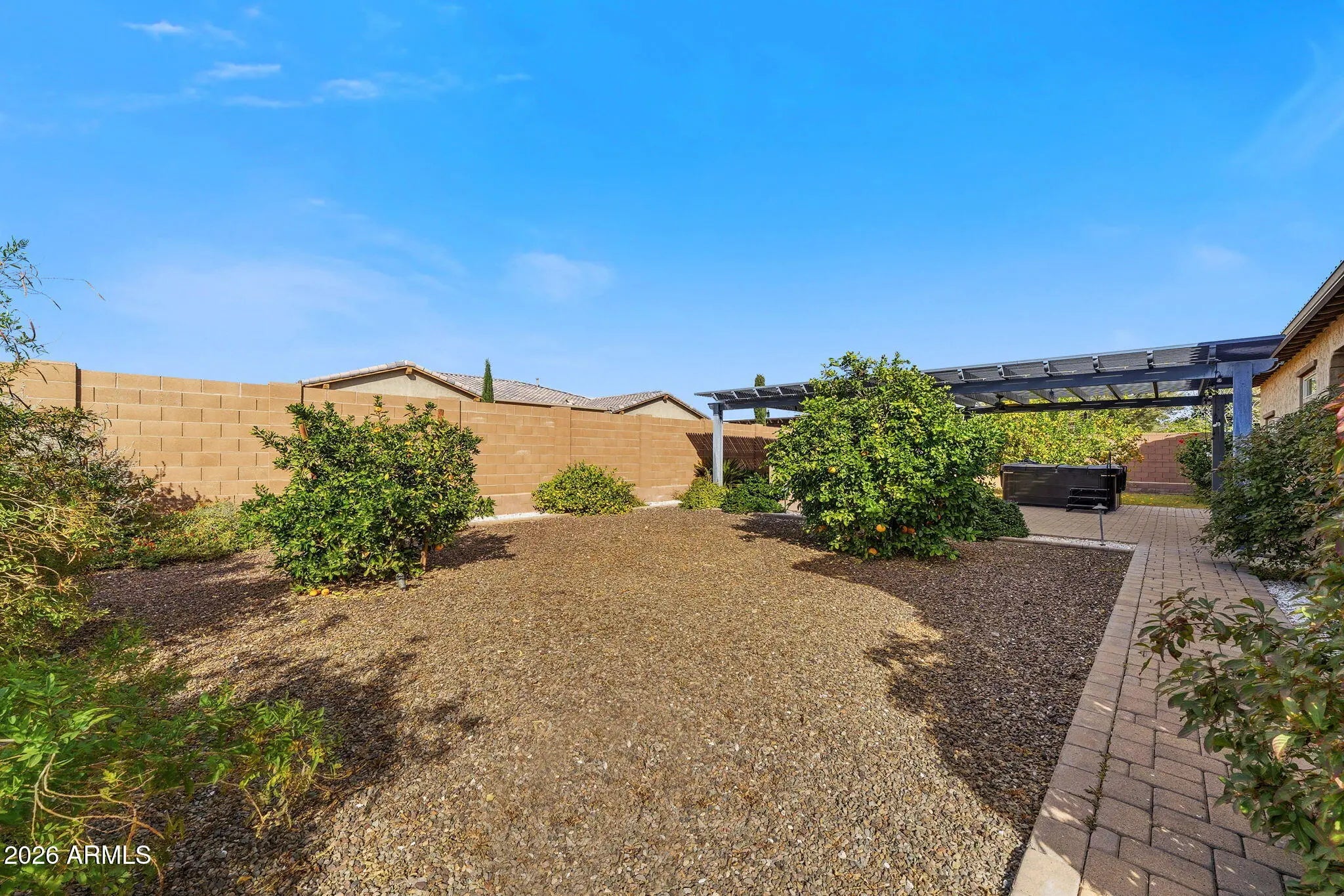 Come home to Trovita Norte at 3856 E Fairfield in Mesa! This stunning home is highly upgraded with builder enhancements and offers the perfect blend of luxury and function. The split floor plan features a spacious primary suite with two large walk‑in closets, a tranquil soaking tub, and a walk‑in shower. Two additional bedrooms each include an en‑suite bathroom and walk‑in closet, making this ideal for family or guests. RV gate and a generous four‑car garage, plus a chef's kitchen with Monogram appliances, a walk‑in pantry, and a convenient wet bar. The formal dining room and den open to a serene courtyard through sliding glass doors, creating a bright, airy feel throughout. This meticulously cared‑for home also boasts a charming courtyard and a f The backyard features a built-in gas barbecue, spa, pergola with ceiling fan, and misting system, raised irrigated garden bed, grass and citrus trees.